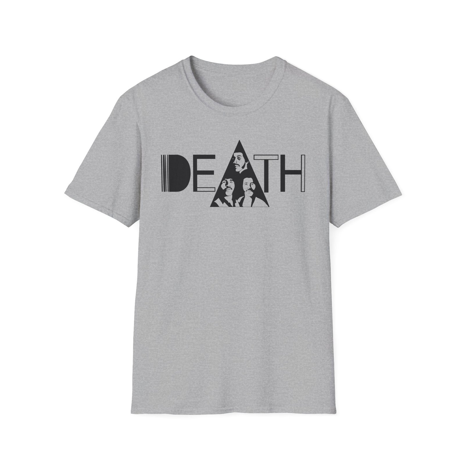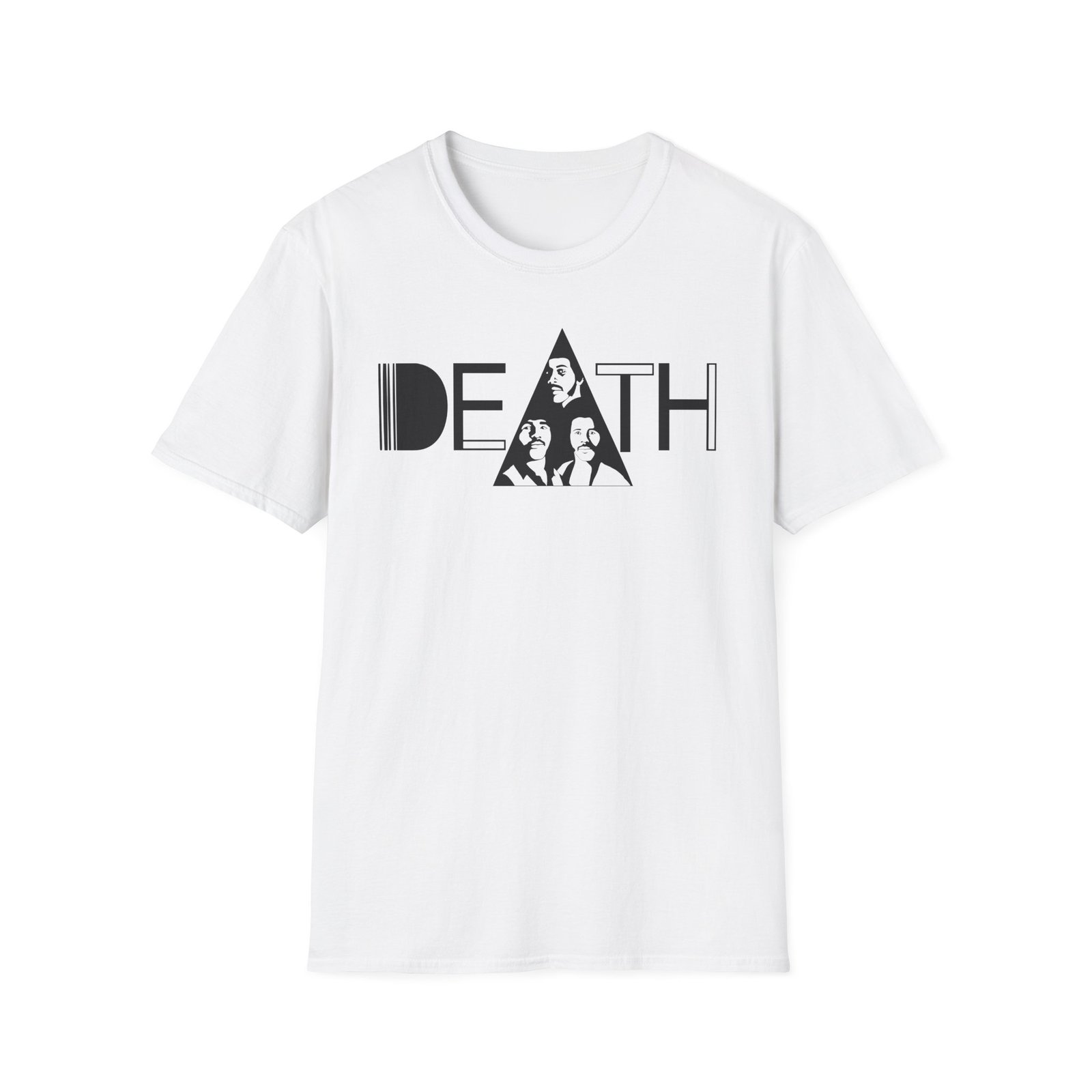 The A Band Called Death unisex soft-style t-shirt puts a new spin on casual comfort. Made from very soft materials, this tee is 100% cotton for solid colors. Heather colors and sports grey include polyester. The shoulders have twill tape for improved durability. There are no side seams. The collar is made with ribbed knitting to prevent curling damage.