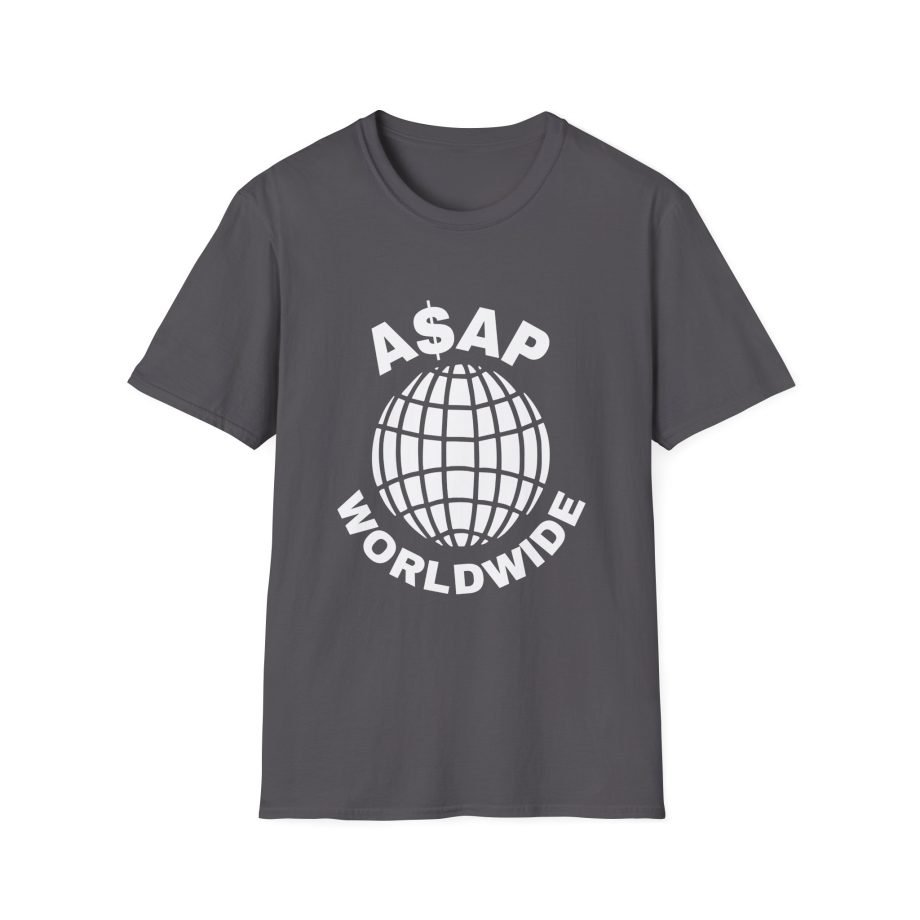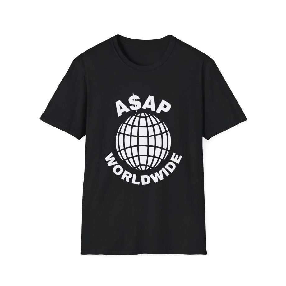 The A$ap Rocky Asap Worldwide Starter Basketball Unisex Softstyle T-Shirt puts a new spin on casual comfort. Made from very soft materials, this tee is 100% cotton for solid colors. Heather colors and sports grey include polyester. The shoulders have twill tape for improved durability. There are no side seams. The collar is made with ribbed knitting to prevent curling damage.