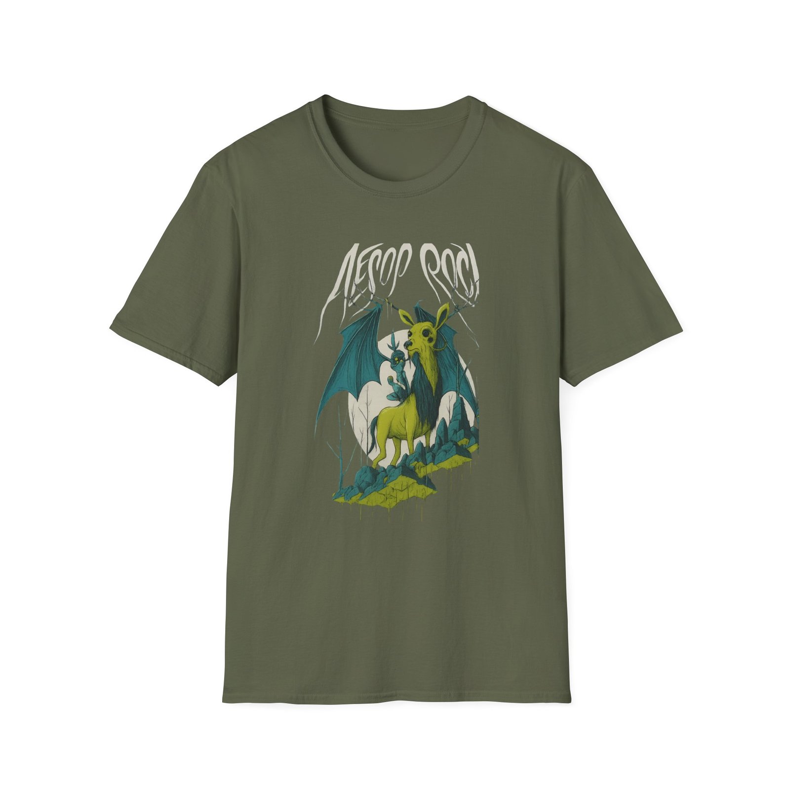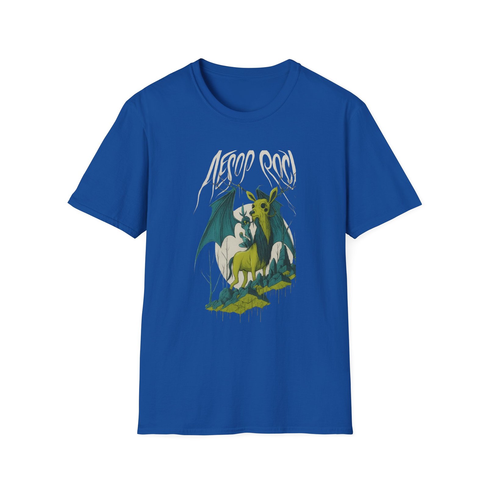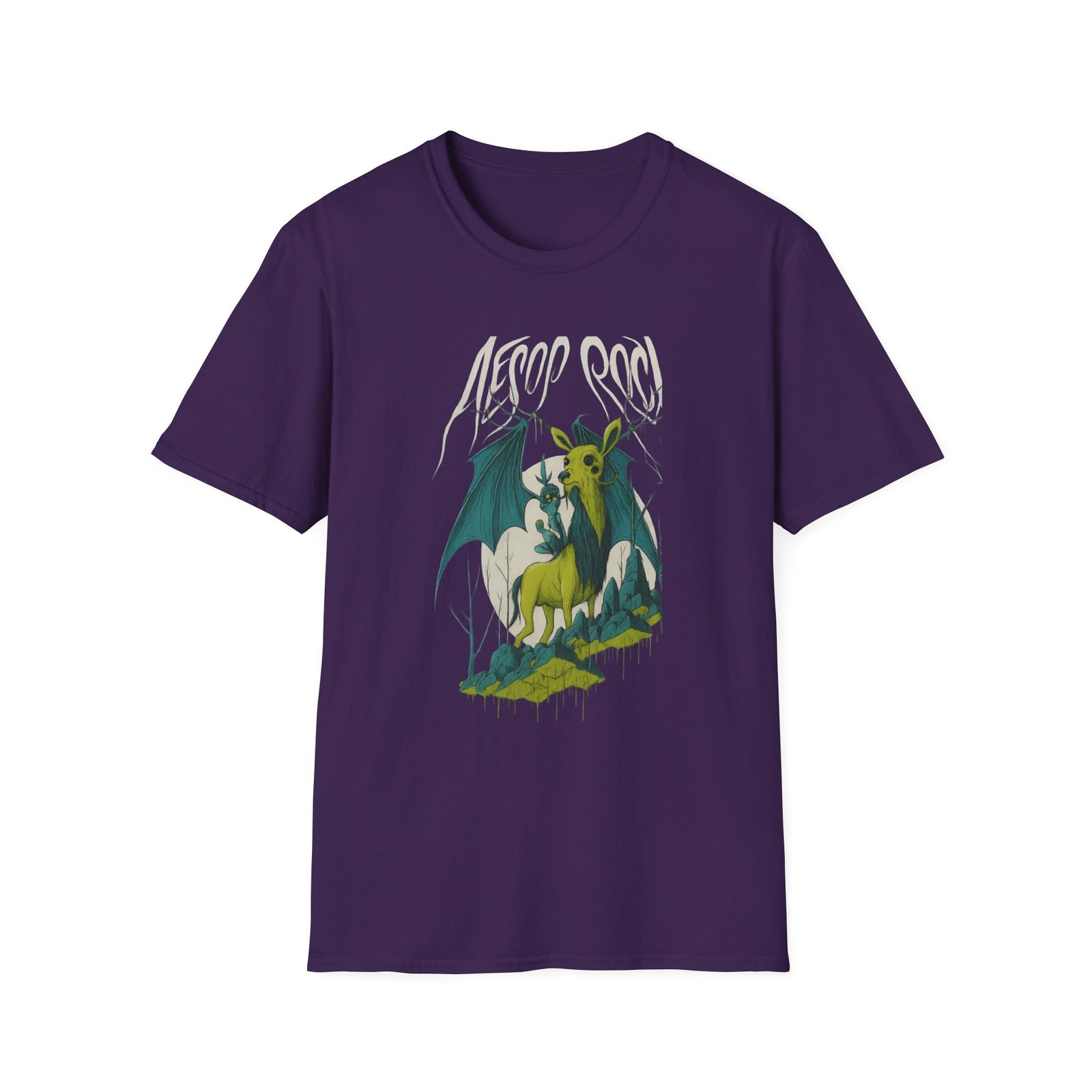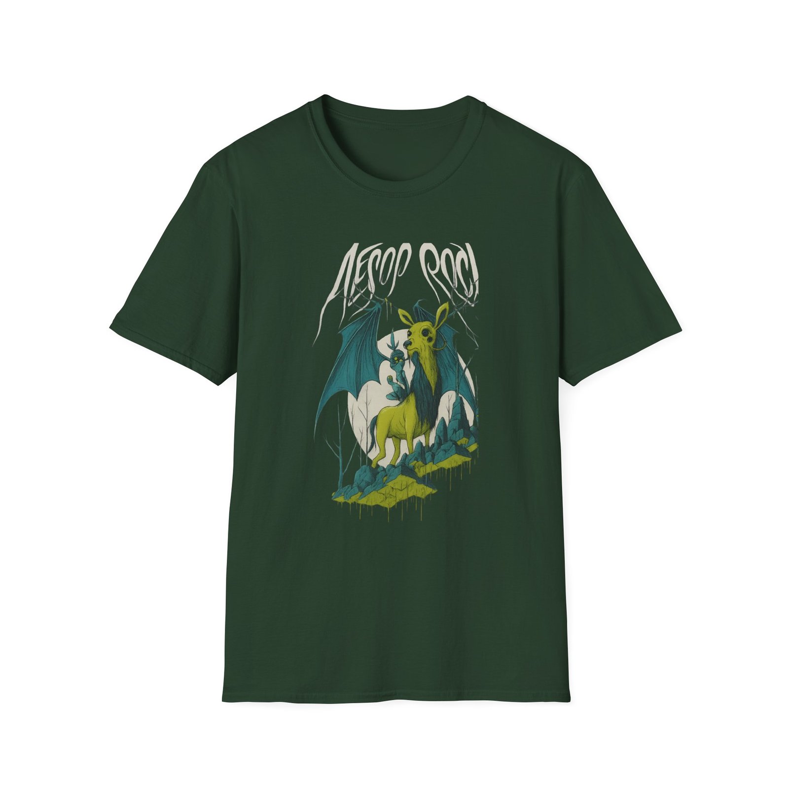 The Aesop Rock Deer Unisex Softstyle T-Shirt puts a new spin on casual comfort. Made from very soft materials, this tee is 100% cotton for solid colors. Heather colors and sports grey include polyester. The shoulders have twill tape for improved durability. There are no side seams. The collar is made with ribbed knitting to prevent curling damage.