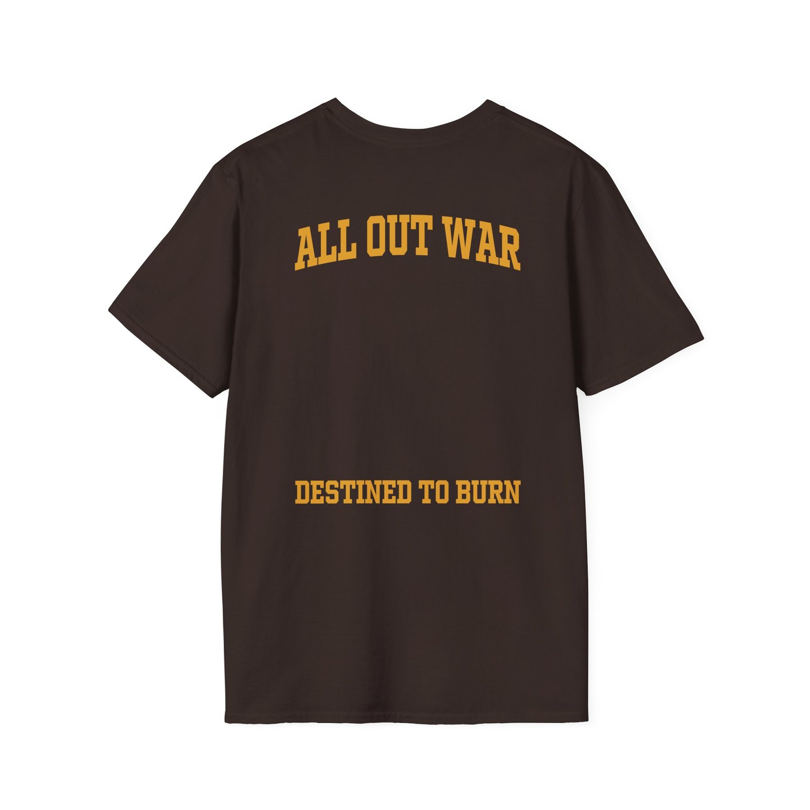 The All Out War Destined unisex soft-style t-shirt puts a new spin on casual comfort. Made from very soft materials, this tee is 100% cotton for solid colors. Heather colors and sports grey include polyester. The shoulders have twill tape for improved durability. There are no side seams. The collar is made with ribbed knitting to prevent curling damage.