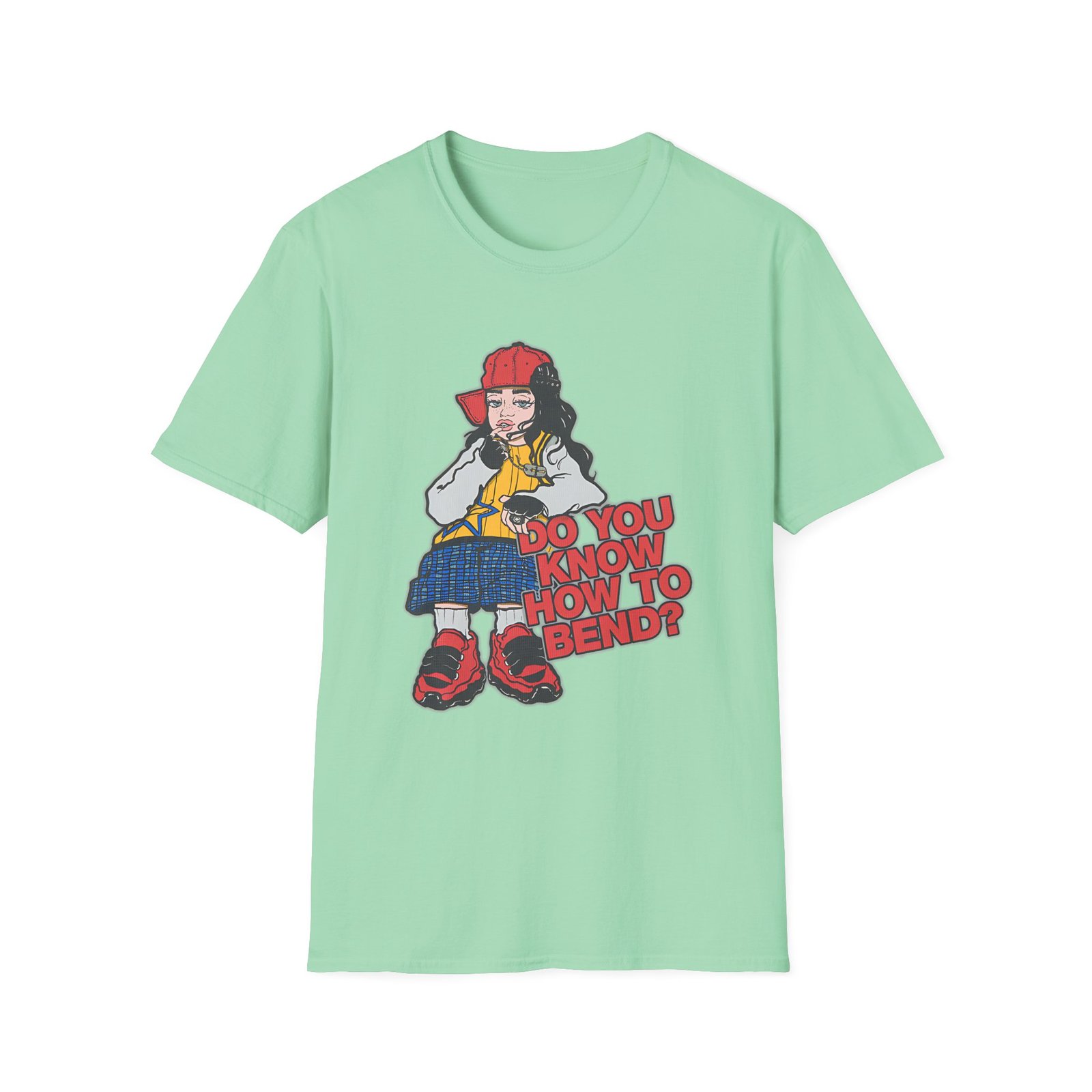 The BE Do You Know How to Bend? unisex soft-style t-shirt puts a new spin on casual comfort. Made from very soft materials, this tee is 100% cotton for solid colors. Heather colors and sports grey include polyester. The shoulders have twill tape for improved durability. There are no side seams. The collar is made with ribbed knitting to prevent curling damage.