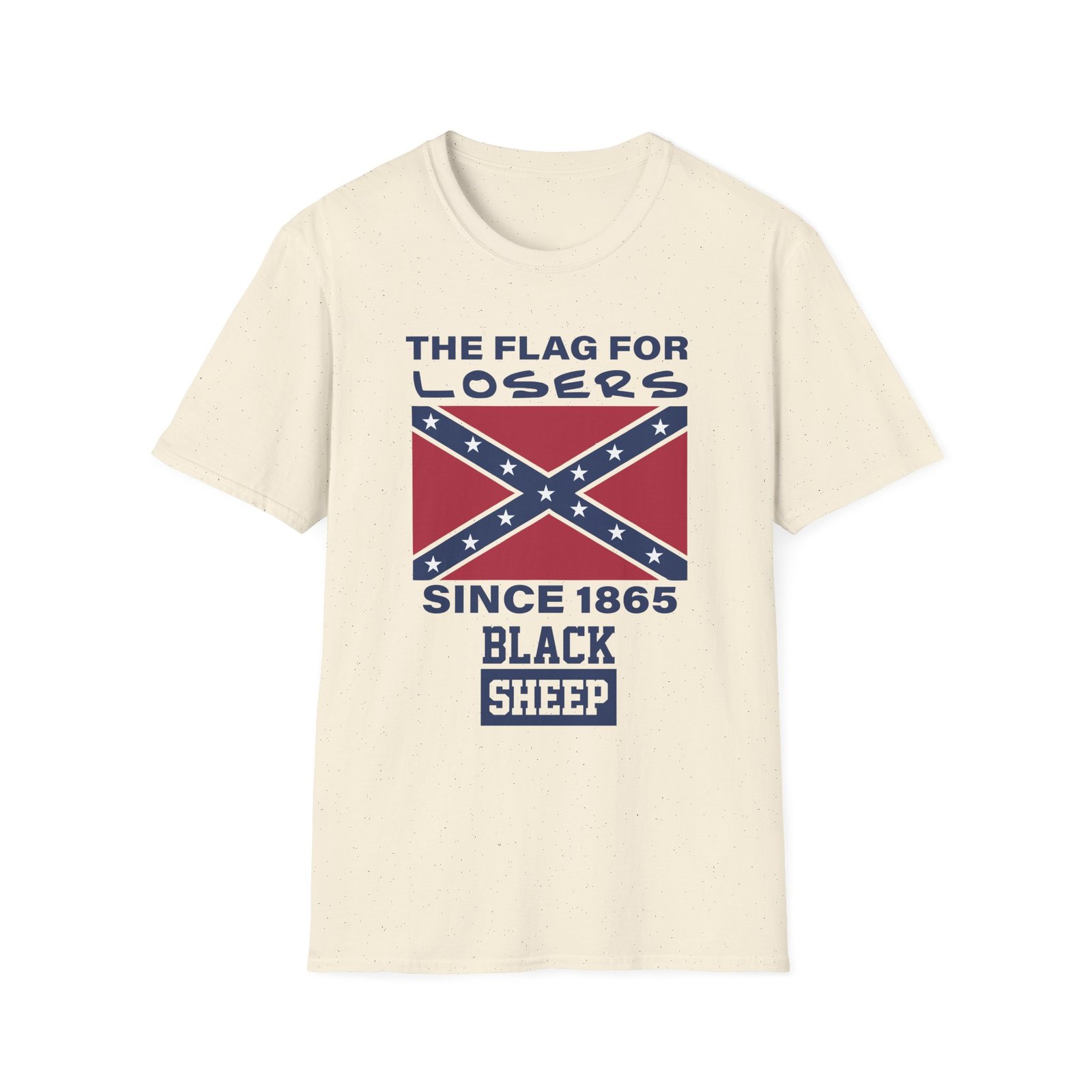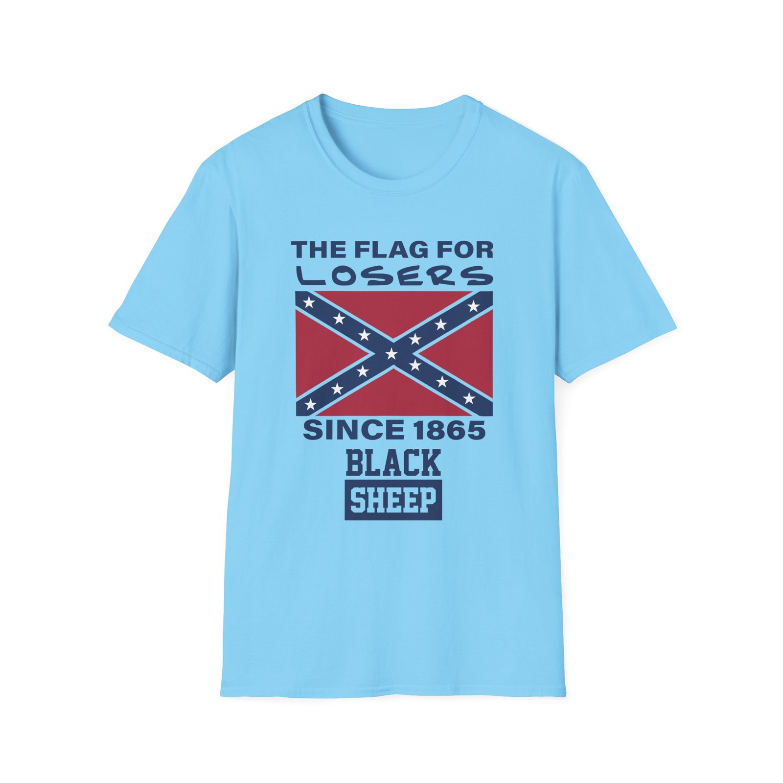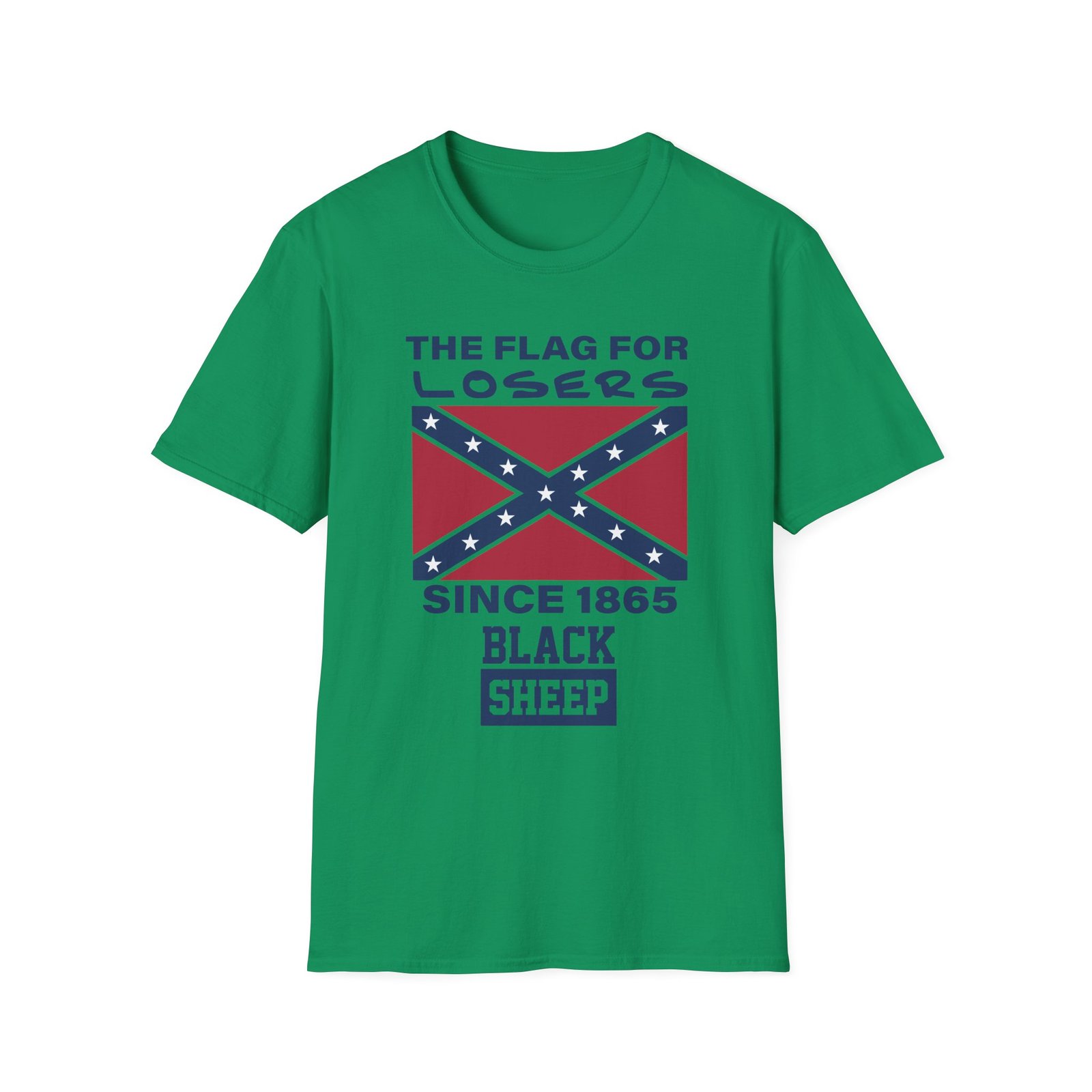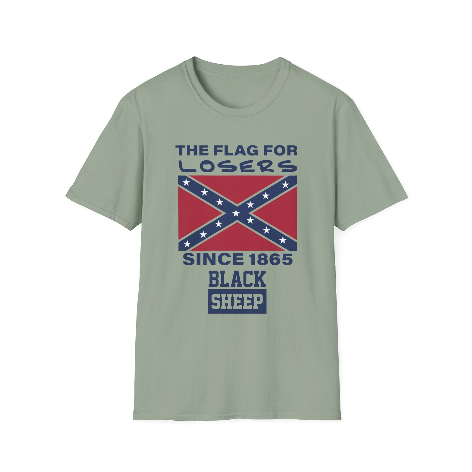 The Black Sheep the Flag for Looser Unisex Softstyle T-Shirt puts a new spin on casual comfort. Made from very soft materials, this tee is 100% cotton for solid colors. Heather colors and sports grey include polyester. The shoulders have twill tape for improved durability. There are no side seams. The collar is made with ribbed knitting to prevent curling damage.