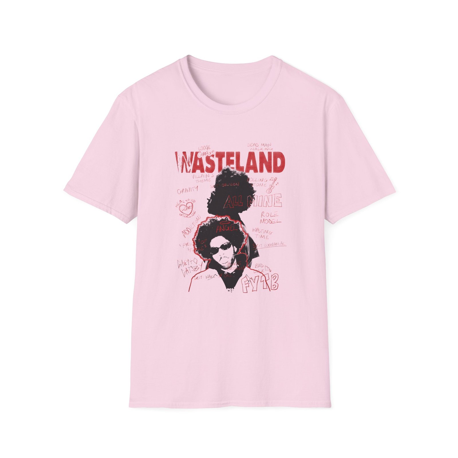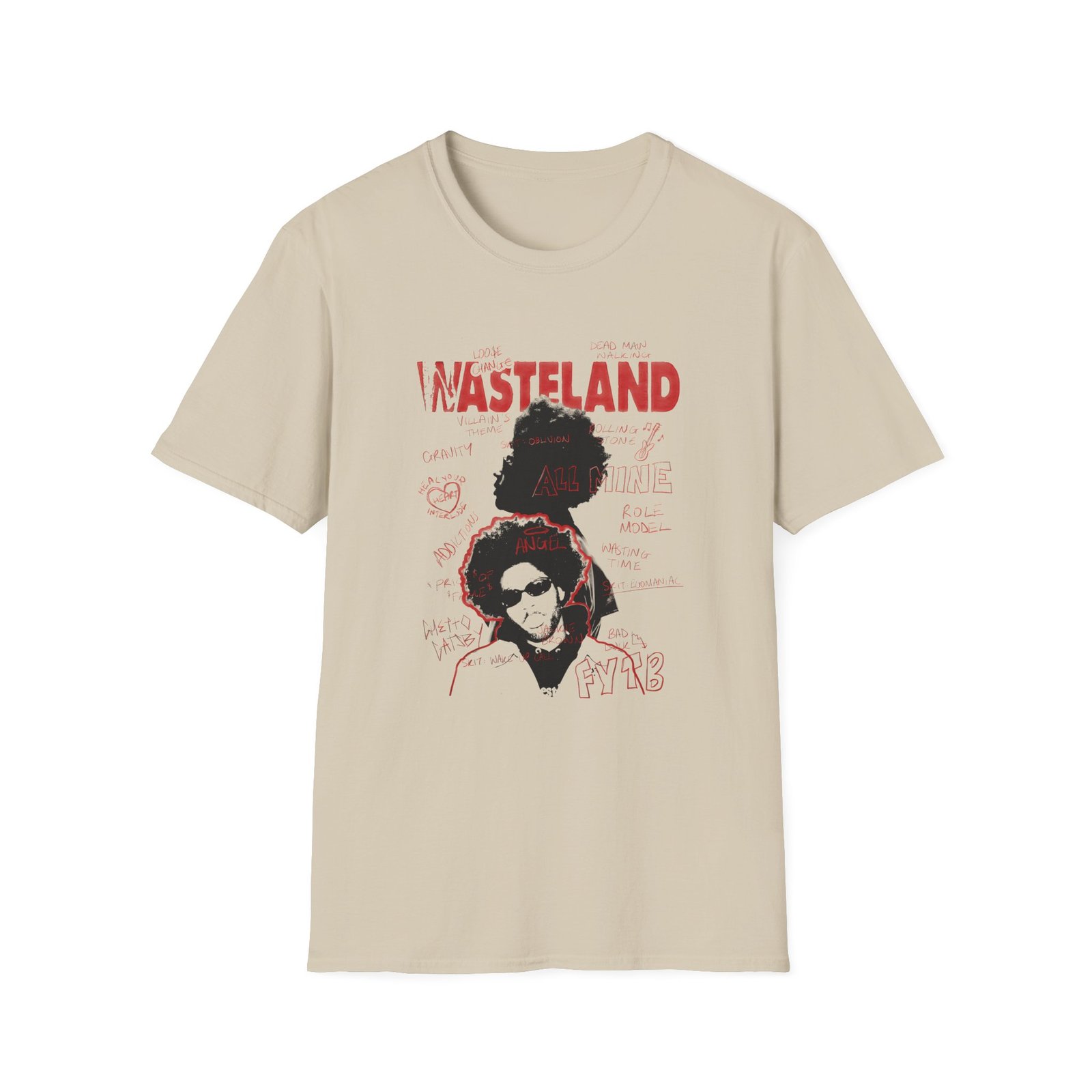 The Brent Faiyaz Wasteland Sketchbook Unisex Softstyle T-Shirt puts a new spin on casual comfort. Made from very soft materials, this tee is 100% cotton for solid colors. Heather colors and sports grey include polyester. The shoulders have twill tape for improved durability. There are no side seams. The collar is made with ribbed knitting to prevent curling damage.