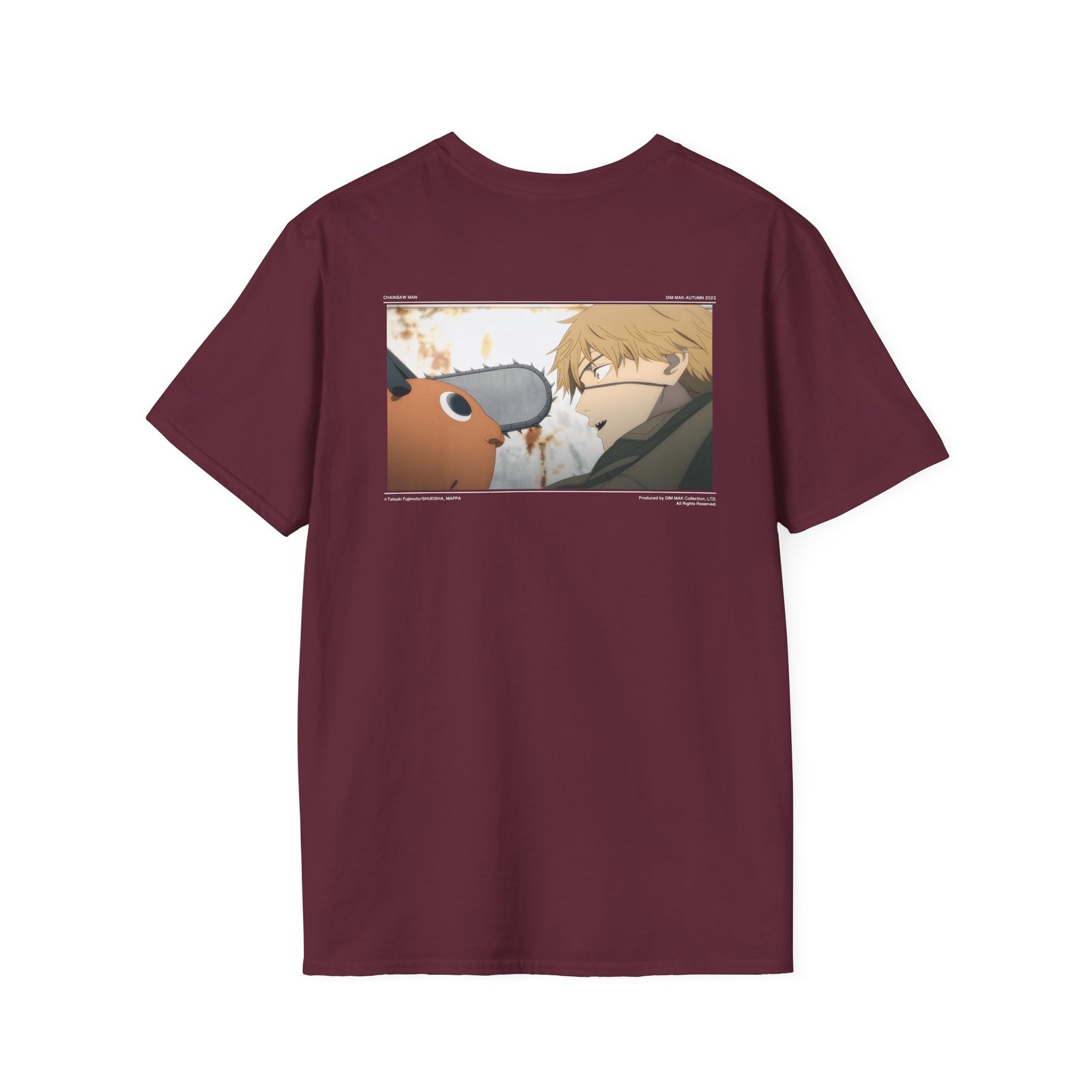 The Chainsaw Man X Dim Mak Pochita unisex soft-style t-shirt puts a new spin on casual comfort. Made from very soft materials, this tee is 100% cotton for solid colors. Heather colors and sports grey include polyester. The shoulders have twill tape for improved durability. There are no side seams. The collar is made with ribbed knitting to prevent curling damage.