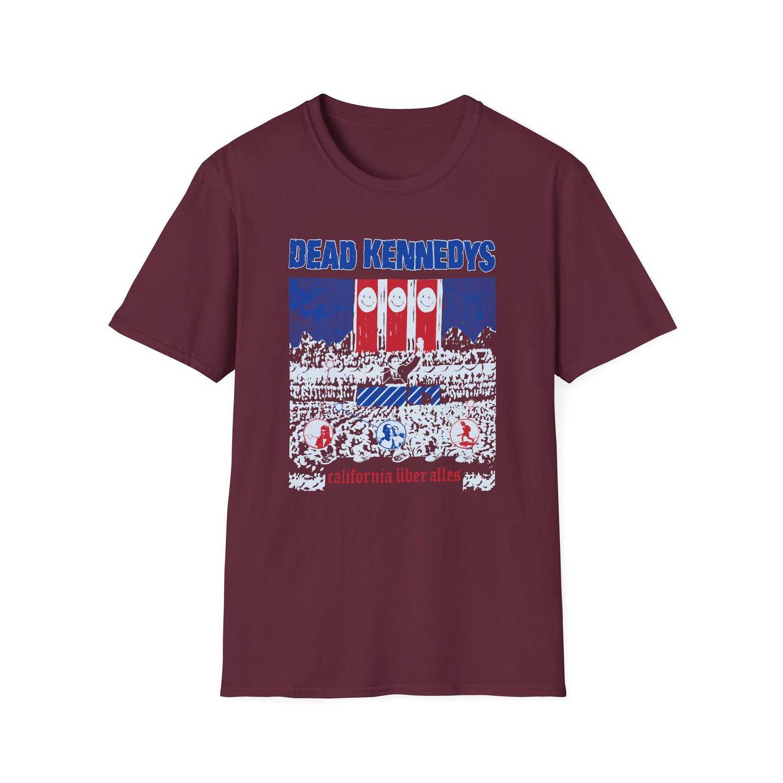 The Dead Kennedys California Uber Alles unisex soft-style t-shirt puts a new spin on casual comfort. Made from very soft materials, this tee is 100% cotton for solid colors. Heather colors and sports grey include polyester. The shoulders have twill tape for improved durability. There are no side seams. The collar is made with ribbed knitting to prevent curling damage.