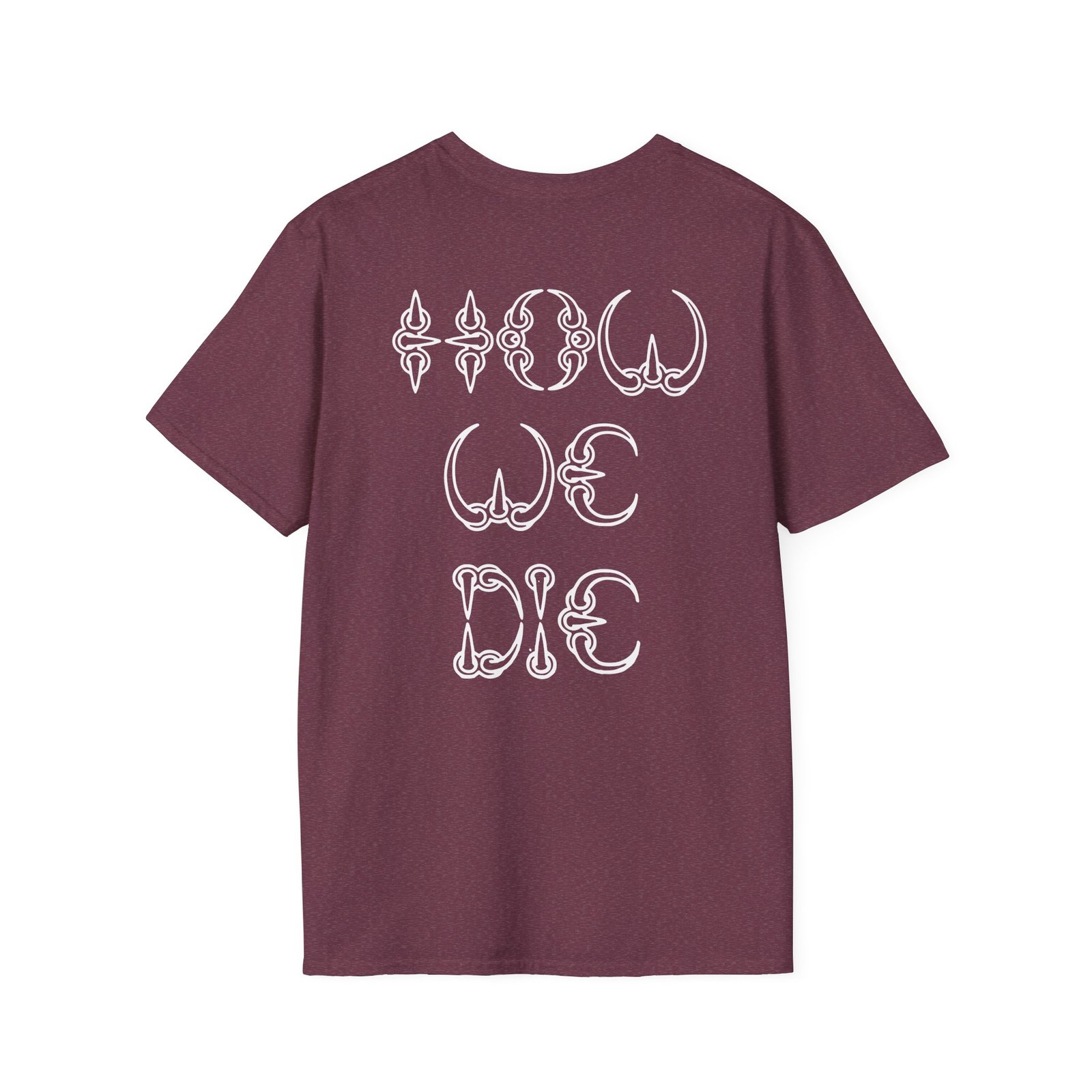 Introducing our Death How We Die Unisex Softstyle T-Shirt, designed for comfort and style. This t-shirt stands out with its eye-catching graphic, perfect for those who love to express their unique taste in fashion. Soft and lightweight, it offers a blissful wearing experience throughout the year. With a classic fit and crew neckline, it transitions seamlessly from casual outings to semi-formal events. Whether you’re at a concert, a party, or lounging at home, this tee fits right in.
