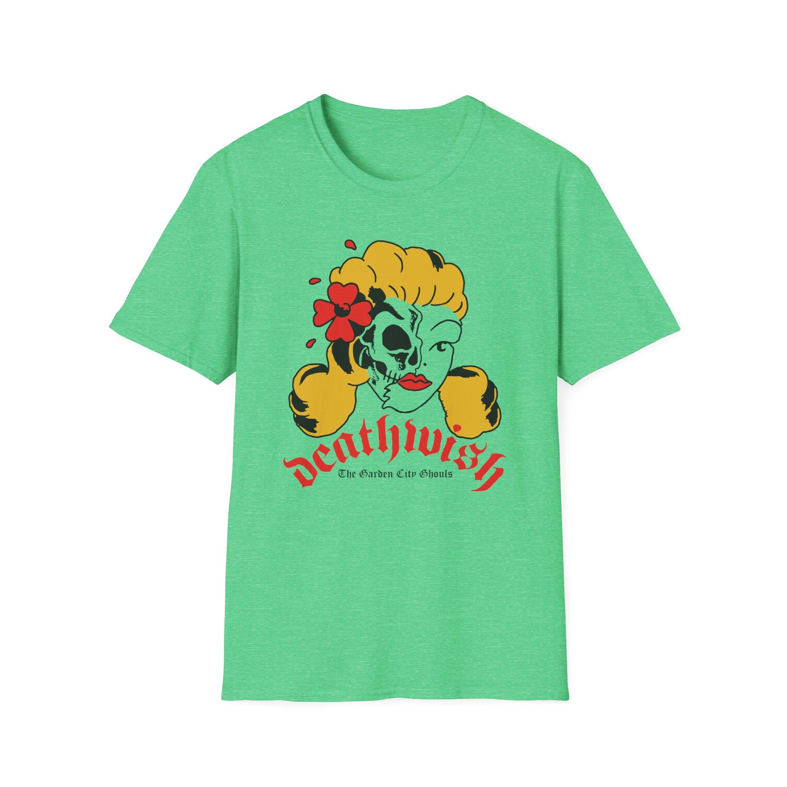 The Deathwish Lady Death unisex soft-style t-shirt puts a new spin on casual comfort. Made from very soft materials, this tee is 100% cotton for solid colors. Heather colors and sports grey include polyester. The shoulders have twill tape for improved durability. There are no side seams. The collar is made with ribbed knitting to prevent curling damage.