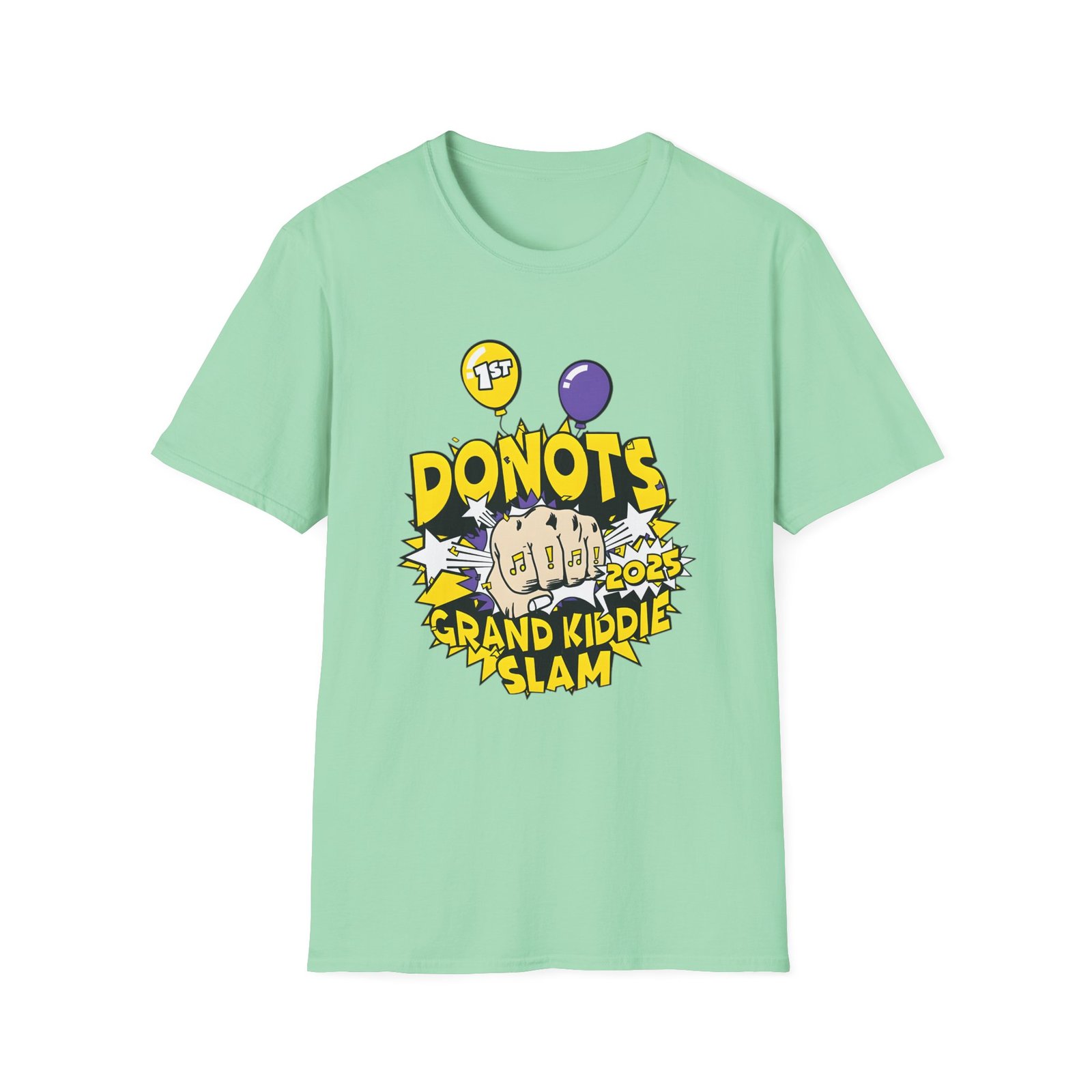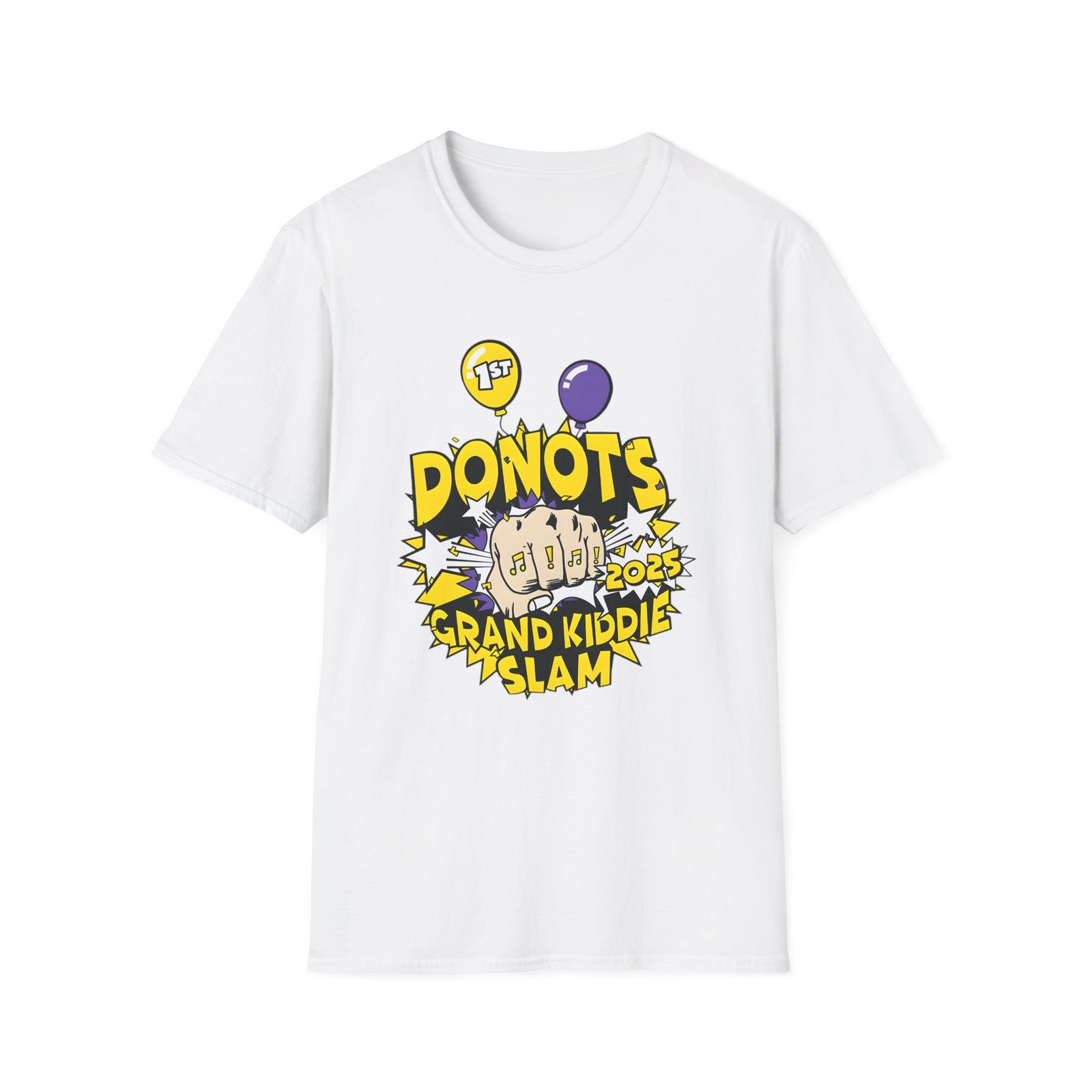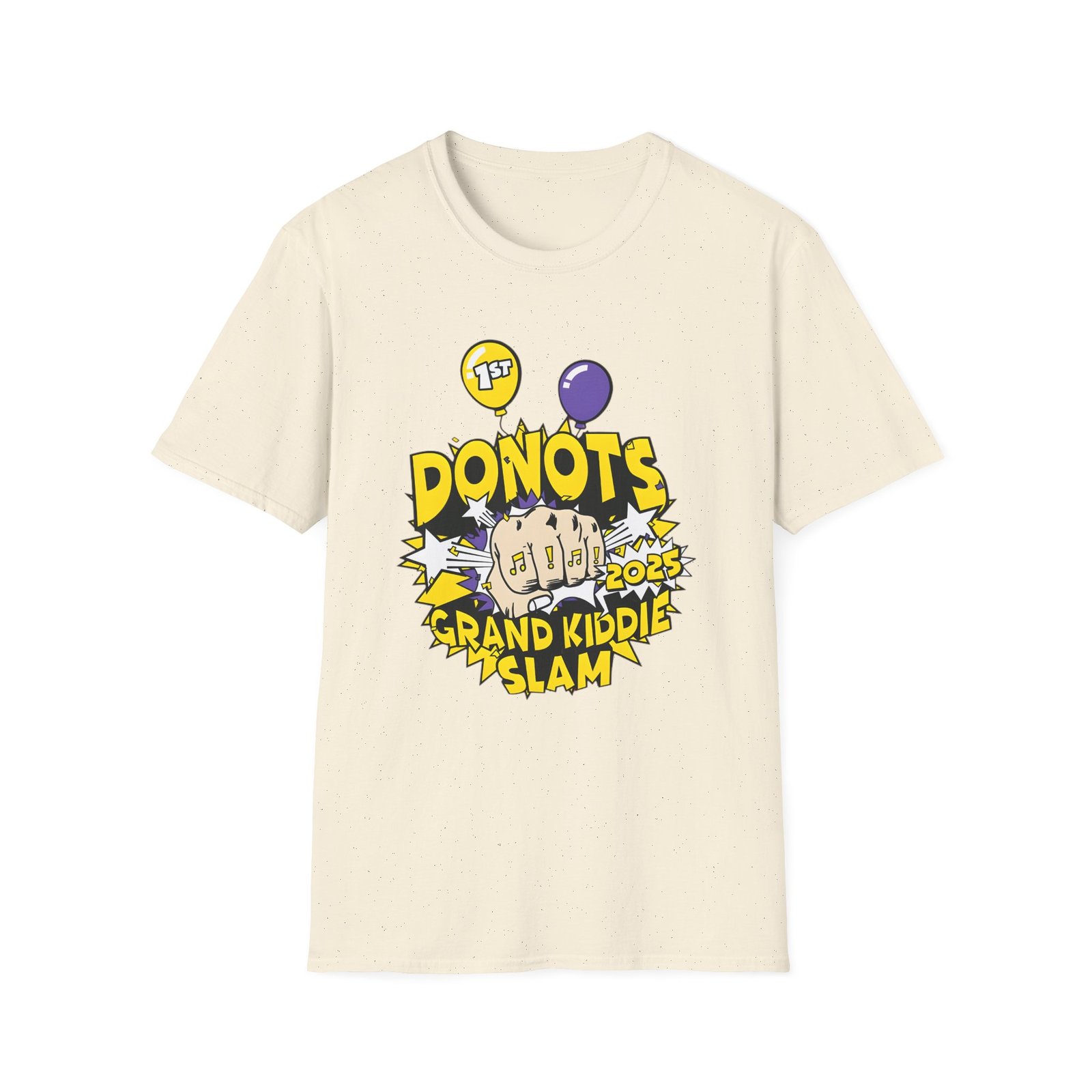 The Donots Grand Kiddie Slam unisex soft-style t-shirt puts a new spin on casual comfort. Made from very soft materials, this tee is 100% cotton for solid colors. Heather colors and sports grey include polyester. The shoulders have twill tape for improved durability. There are no side seams. The collar is made with ribbed knitting to prevent curling damage.