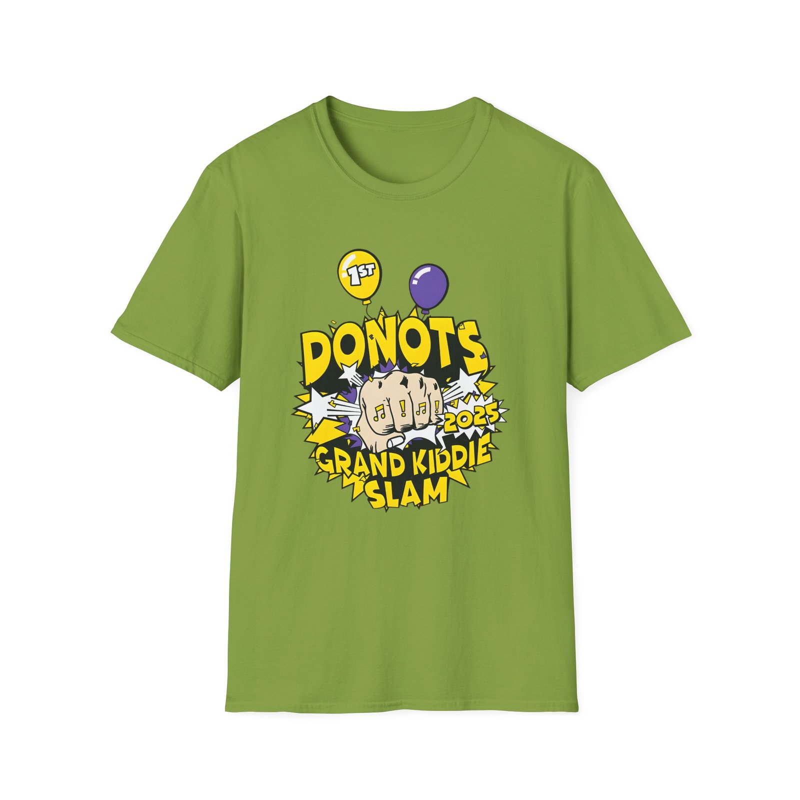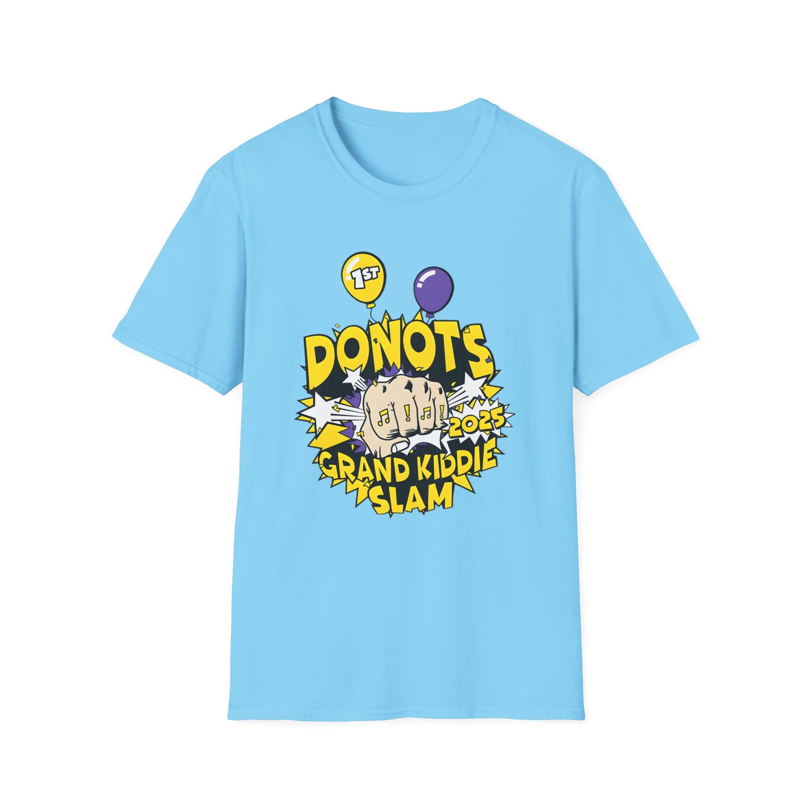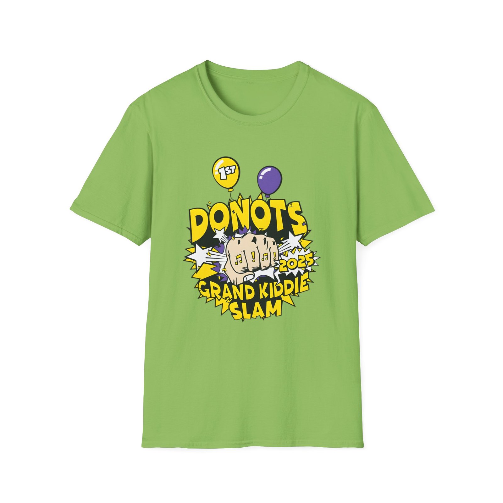 The Donots Grand Kiddie Slam unisex soft-style t-shirt puts a new spin on casual comfort. Made from very soft materials, this tee is 100% cotton for solid colors. Heather colors and sports grey include polyester. The shoulders have twill tape for improved durability. There are no side seams. The collar is made with ribbed knitting to prevent curling damage.
