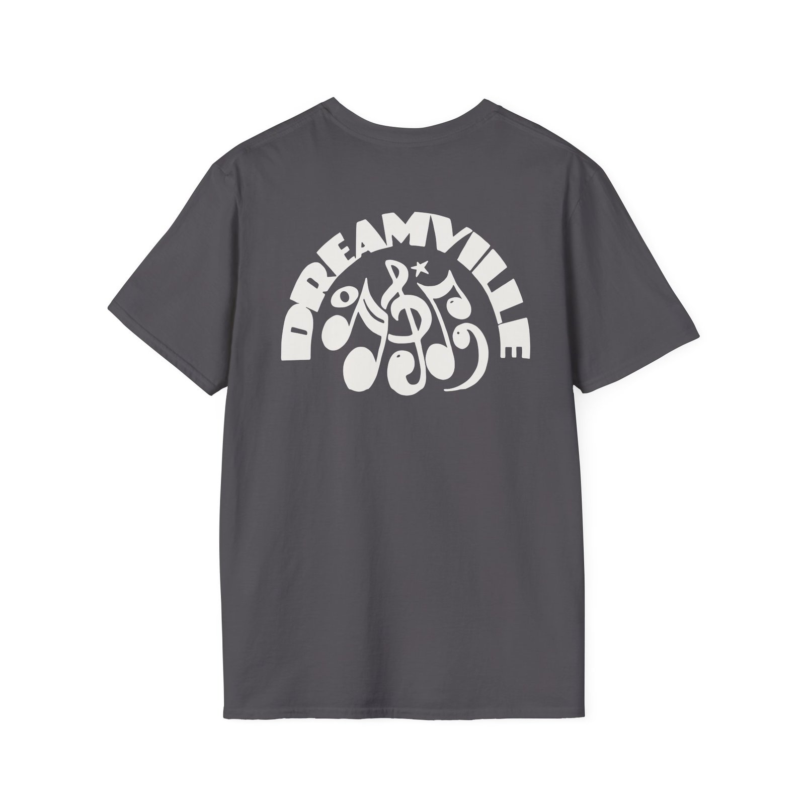 The Dreamville Music Note unisex soft-style t-shirt puts a new spin on casual comfort. Made from very soft materials, this tee is 100% cotton for solid colors. Heather colors and sports grey include polyester. The shoulders have twill tape for improved durability. There are no side seams. The collar is made with ribbed knitting to prevent curling damage.