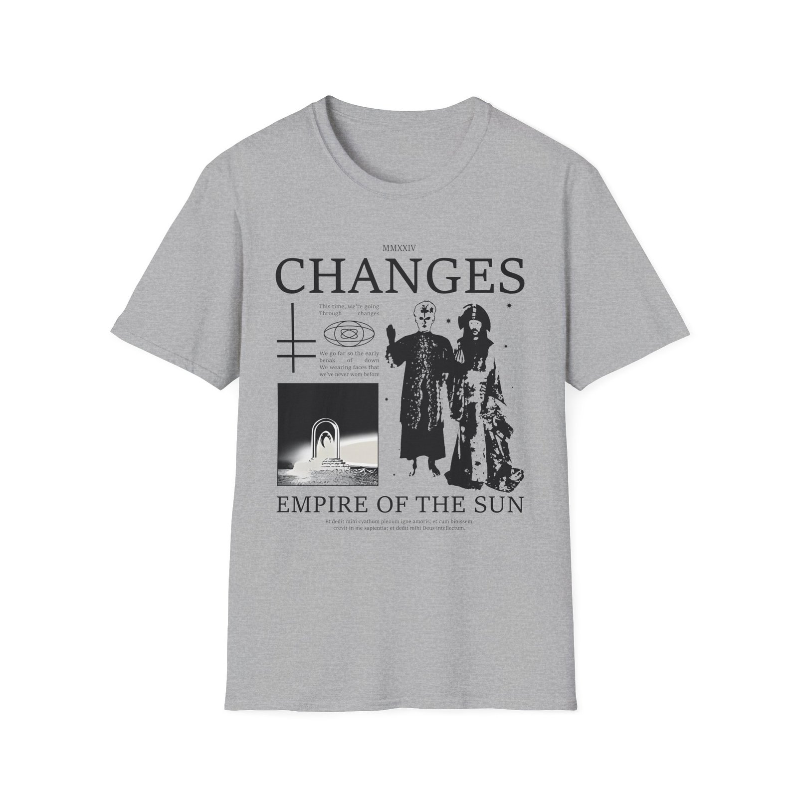 The Empire of the Sun Eots Changes unisex soft-style t-shirt puts a new spin on casual comfort. Made from very soft materials, this tee is 100% cotton for solid colors. Heather colors and sports grey include polyester. The shoulders have twill tape for improved durability. There are no side seams. The collar is made with ribbed knitting to prevent curling damage.
