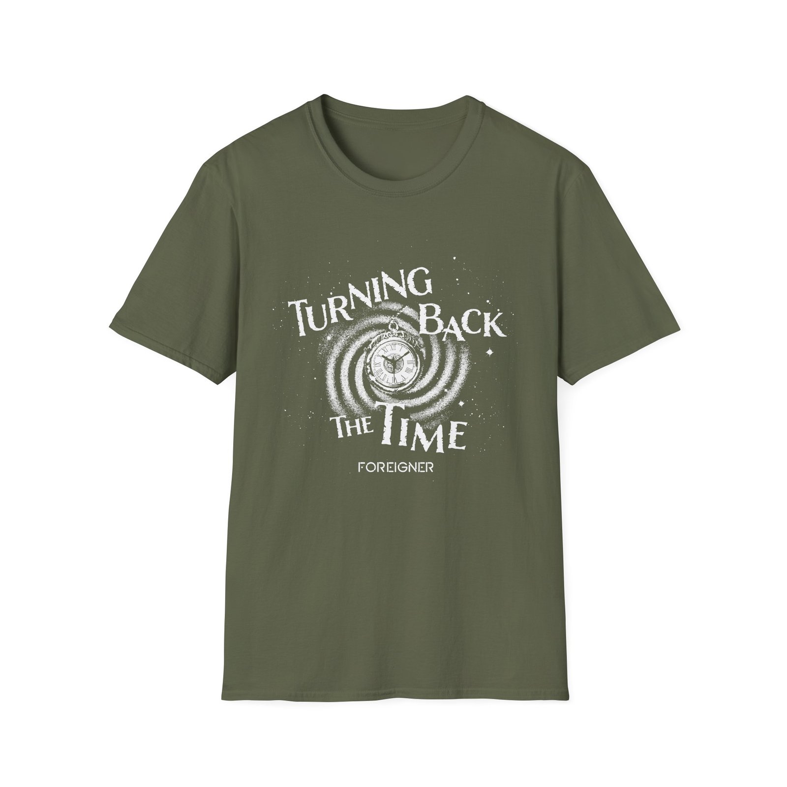 The Foreigner Turning Back the Time unisex soft-style t-shirt puts a new spin on casual comfort. Made from very soft materials, this tee is 100% cotton for solid colors. Heather colors and sports grey include polyester. The shoulders have twill tape for improved durability. There are no side seams. The collar is made with ribbed knitting to prevent curling damage.