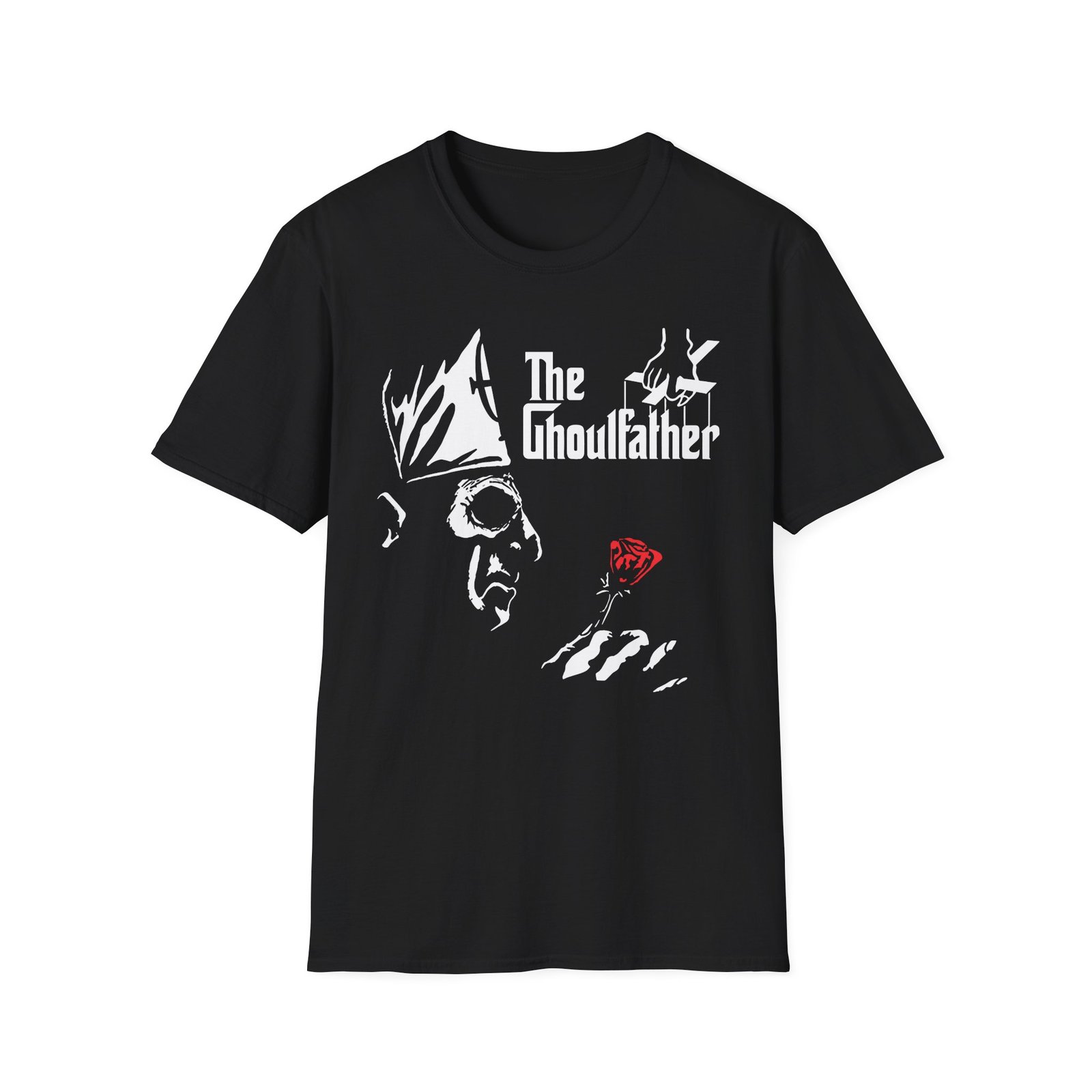 The Ghost Band The Ghoulfather unisex soft-style t-shirt puts a new spin on casual comfort. Made from very soft materials, this tee is 100% cotton for solid colors. Heather colors and sports grey include polyester. The shoulders have twill tape for improved durability. There are no side seams. The collar is made with ribbed knitting to prevent curling damage.