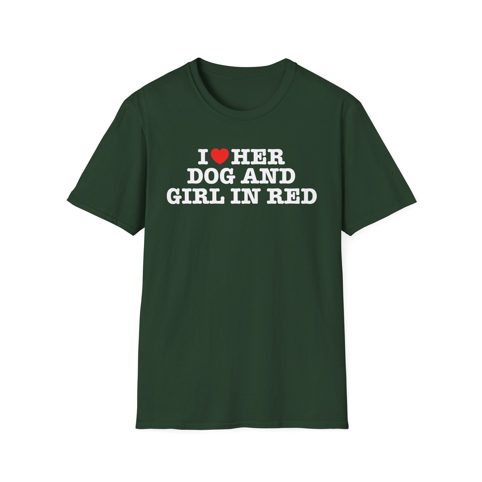 Girl in Red I Heart Her Dog Unisex Softstyle T-Shirt