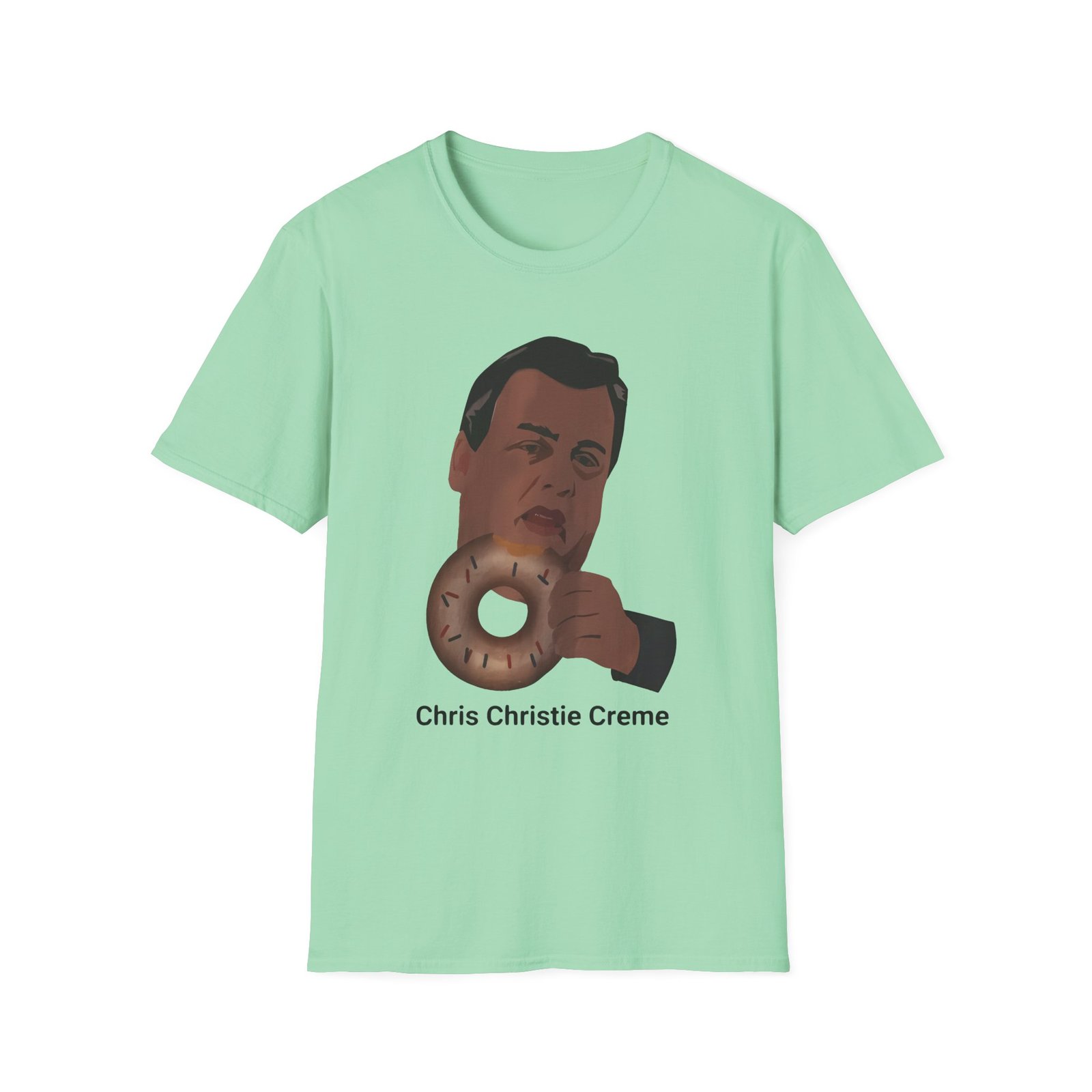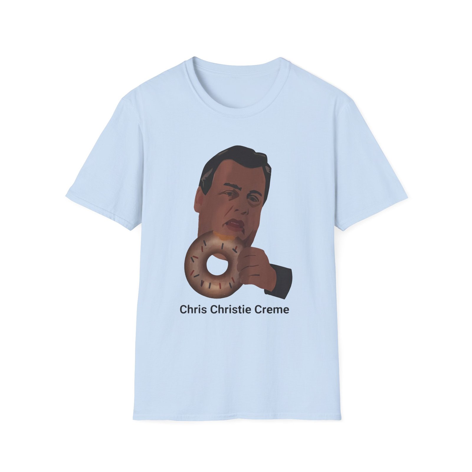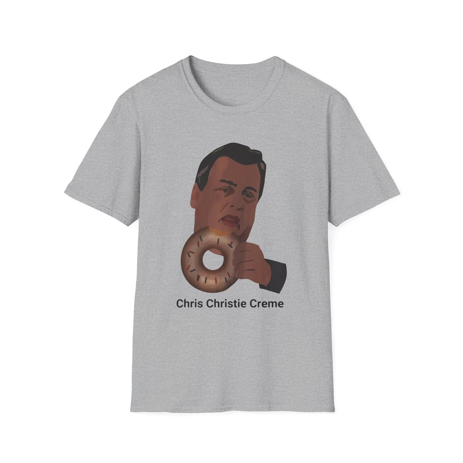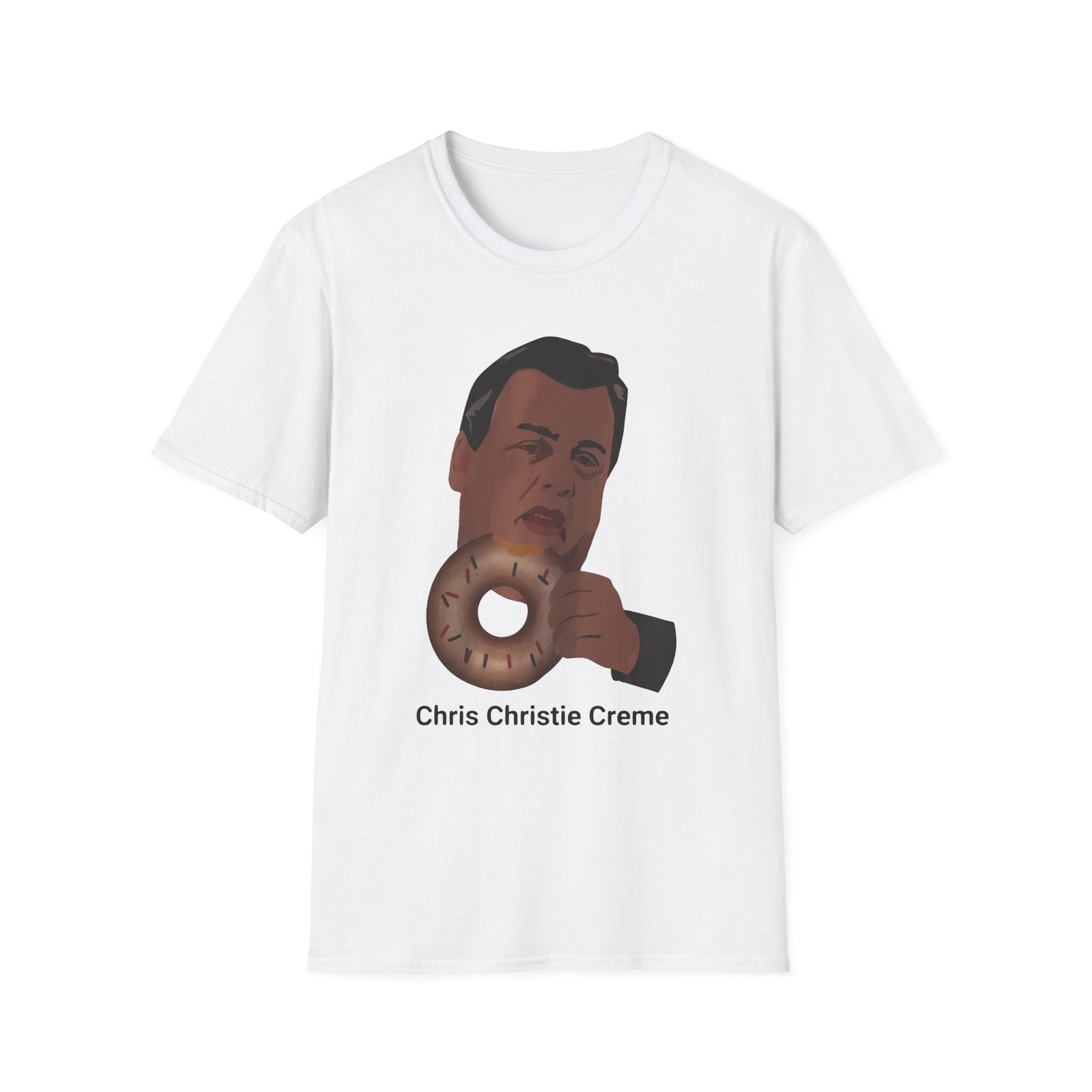 The Gov. Chris Christie. unisex soft-style t-shirt puts a new spin on casual comfort. Made from very soft materials, this tee is 100% cotton for solid colors. Heather colors and sports grey include polyester. The shoulders have twill tape for improved durability. There are no side seams. The collar is made with ribbed knitting to prevent curling damage.