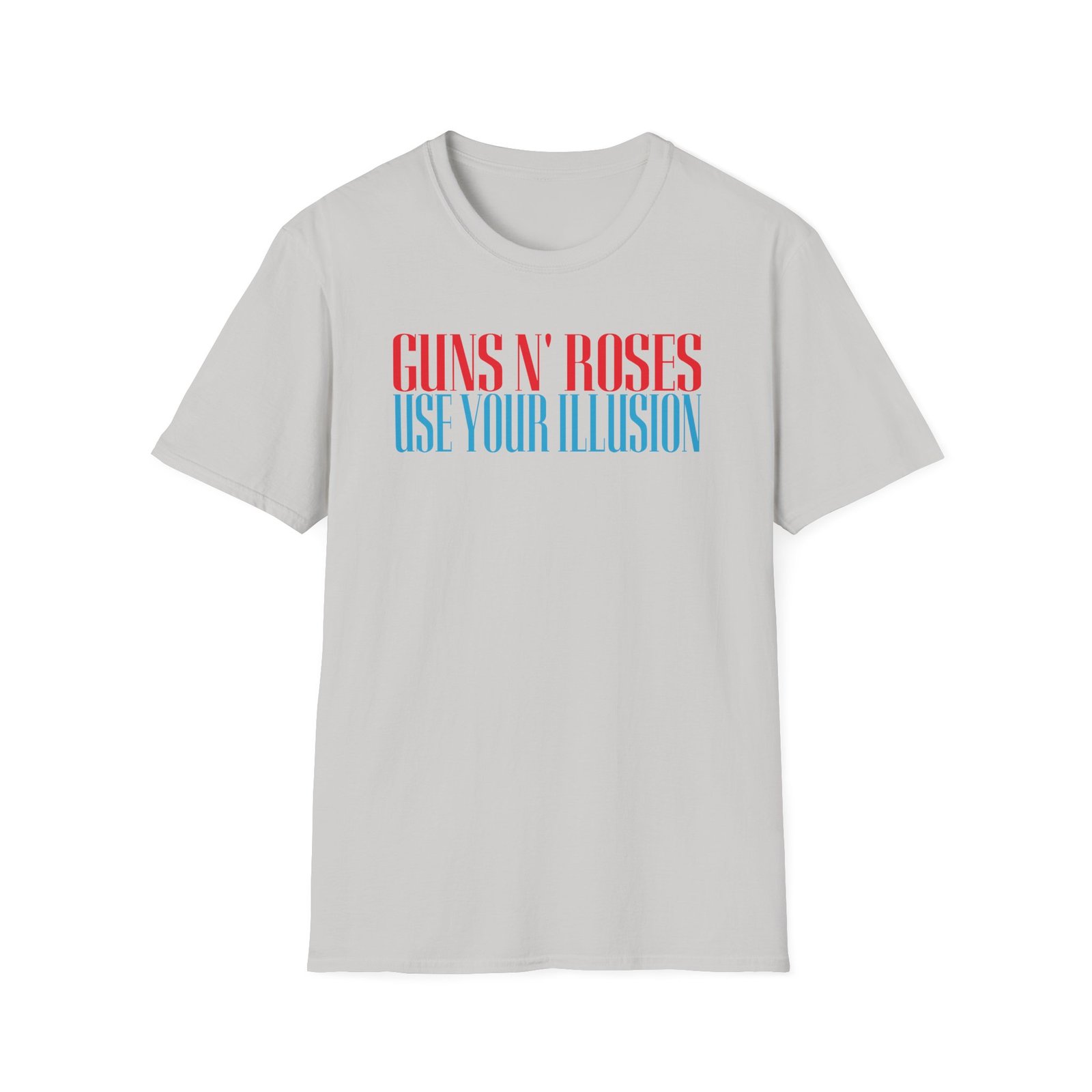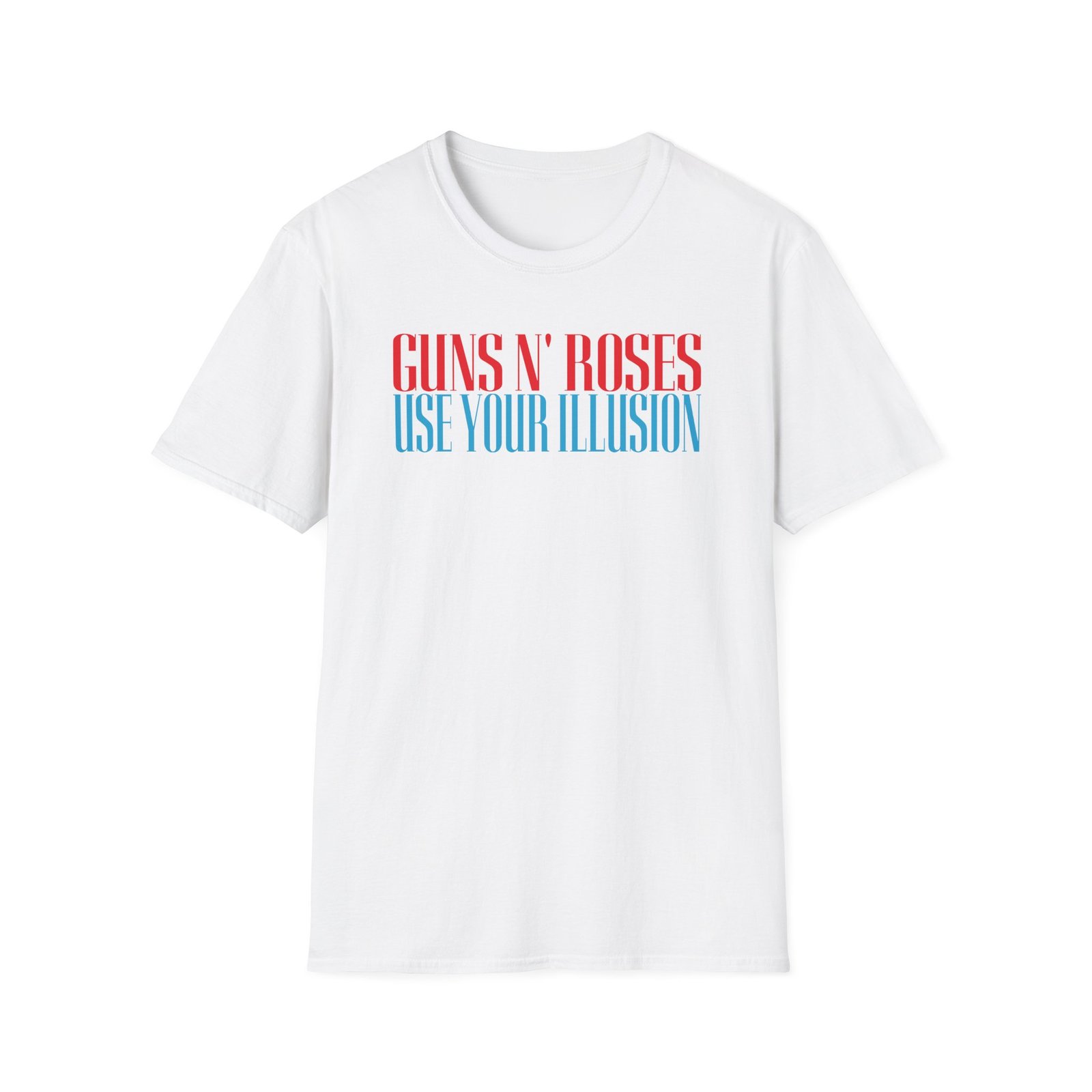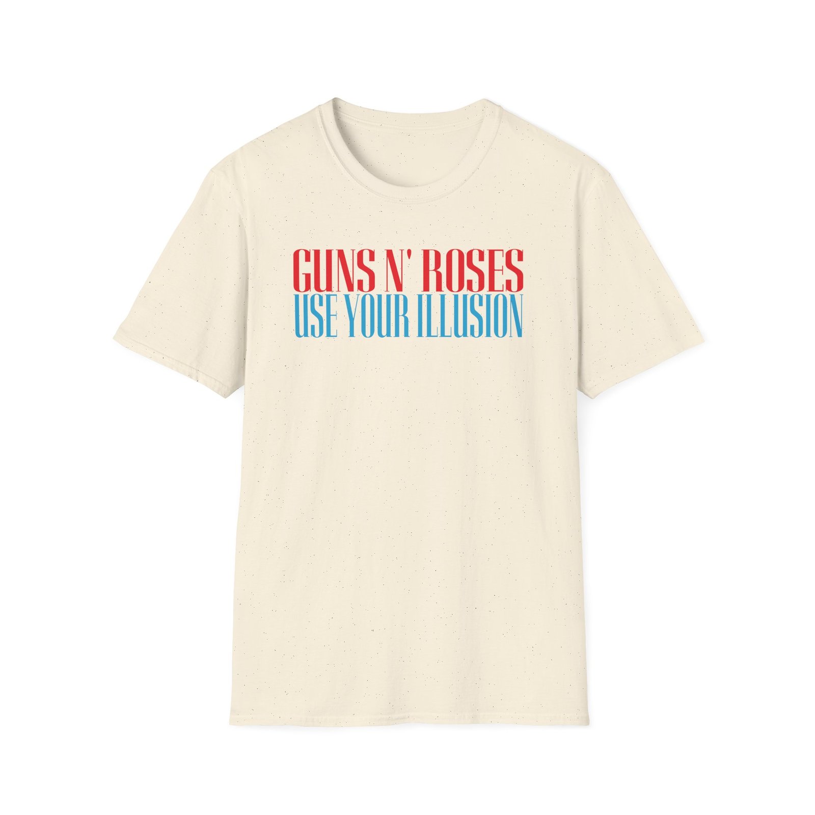 The Guns N Roses Use Your Illusion unisex soft-style t-shirt puts a new spin on casual comfort. Made from very soft materials, this tee is 100% cotton for solid colors. Heather colors and sports grey include polyester. The shoulders have twill tape for improved durability. There are no side seams. The collar is made with ribbed knitting to prevent curling damage.
