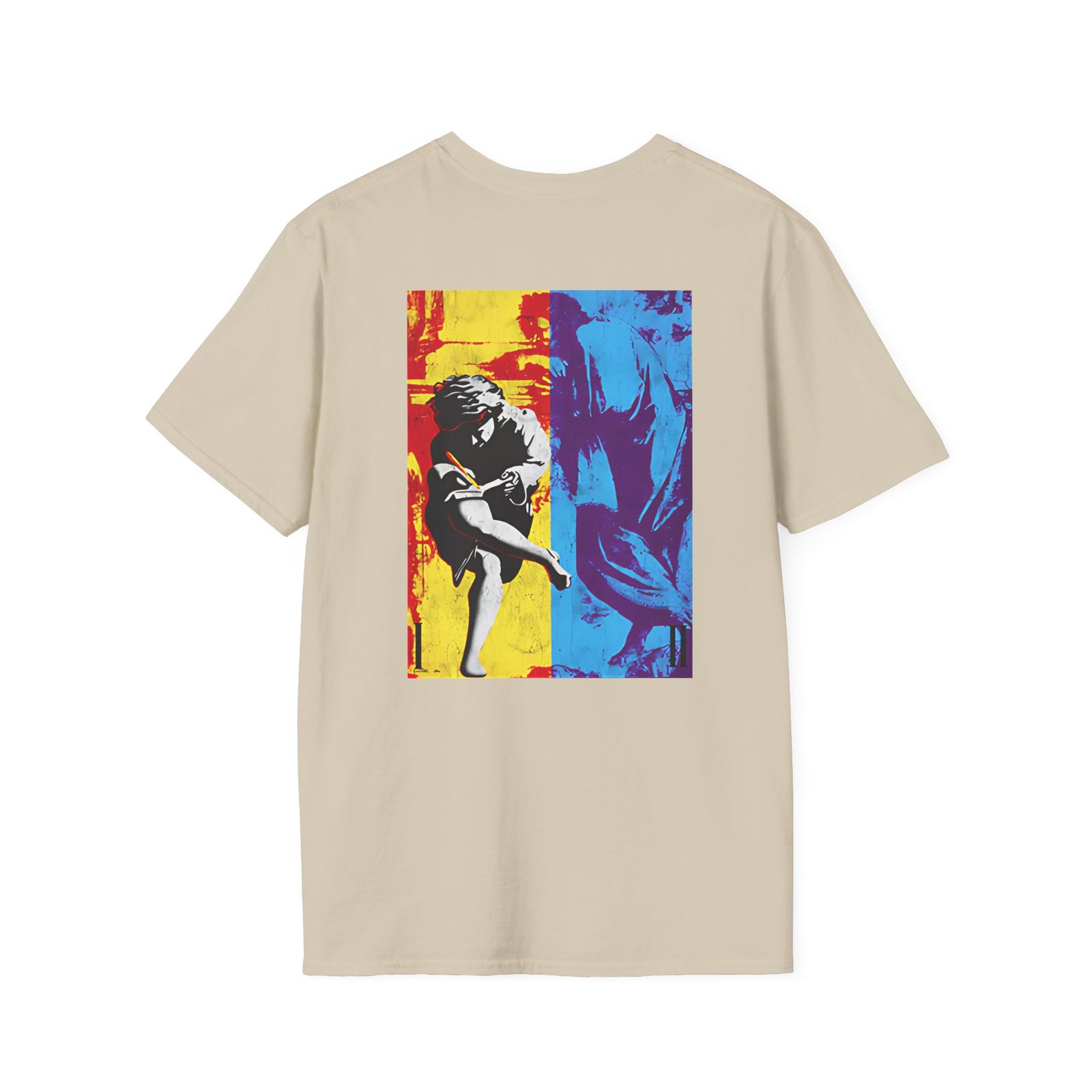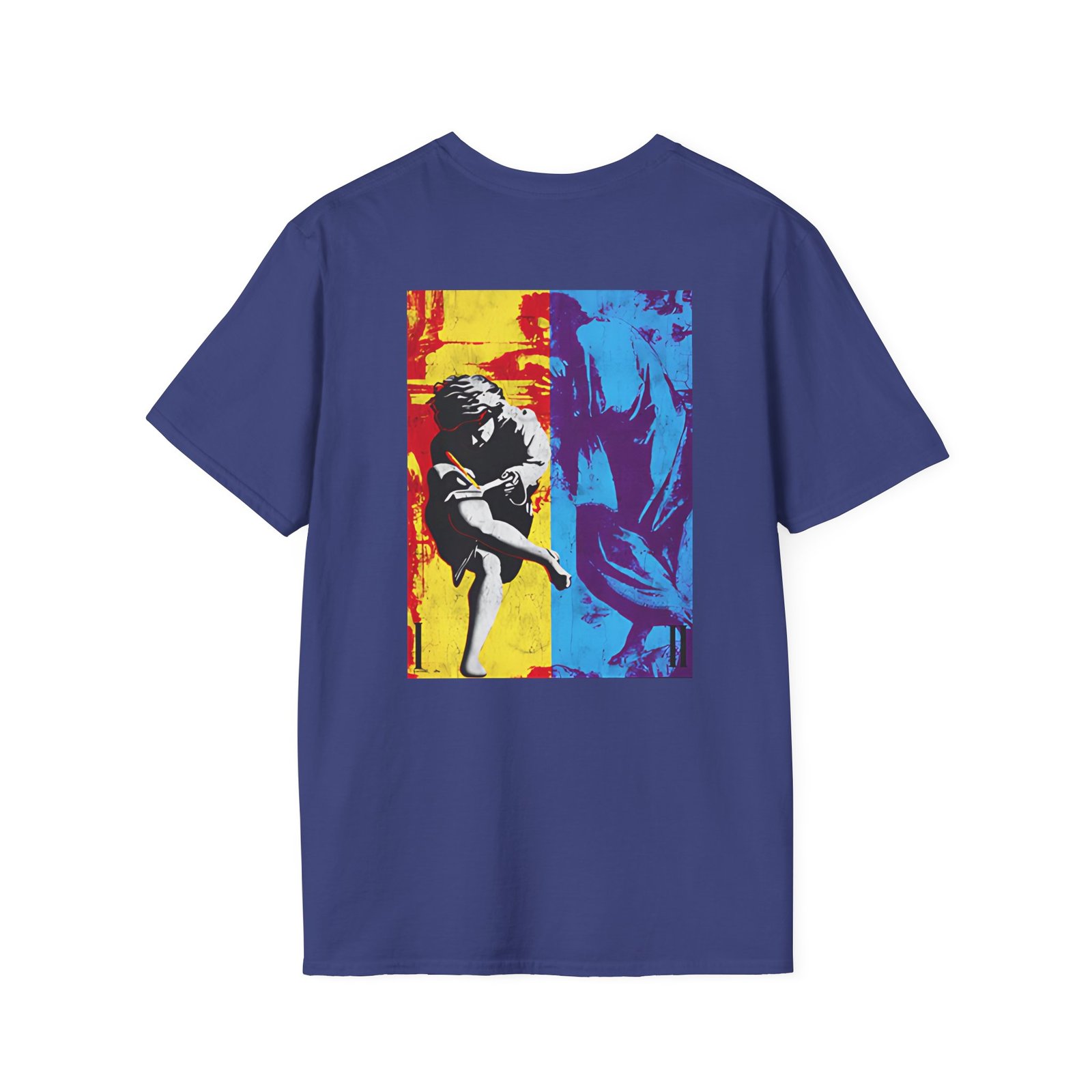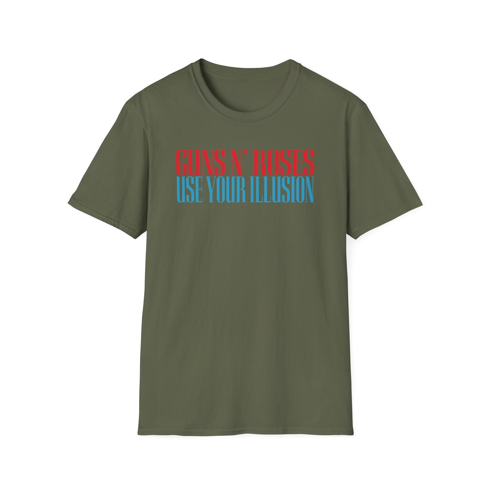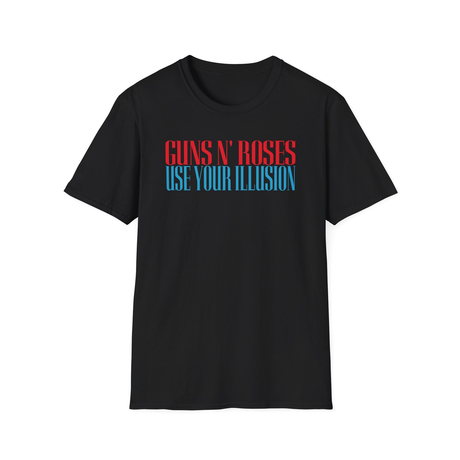 The Guns N Roses Use Your Illusion unisex soft-style t-shirt puts a new spin on casual comfort. Made from very soft materials, this tee is 100% cotton for solid colors. Heather colors and sports grey include polyester. The shoulders have twill tape for improved durability. There are no side seams. The collar is made with ribbed knitting to prevent curling damage.