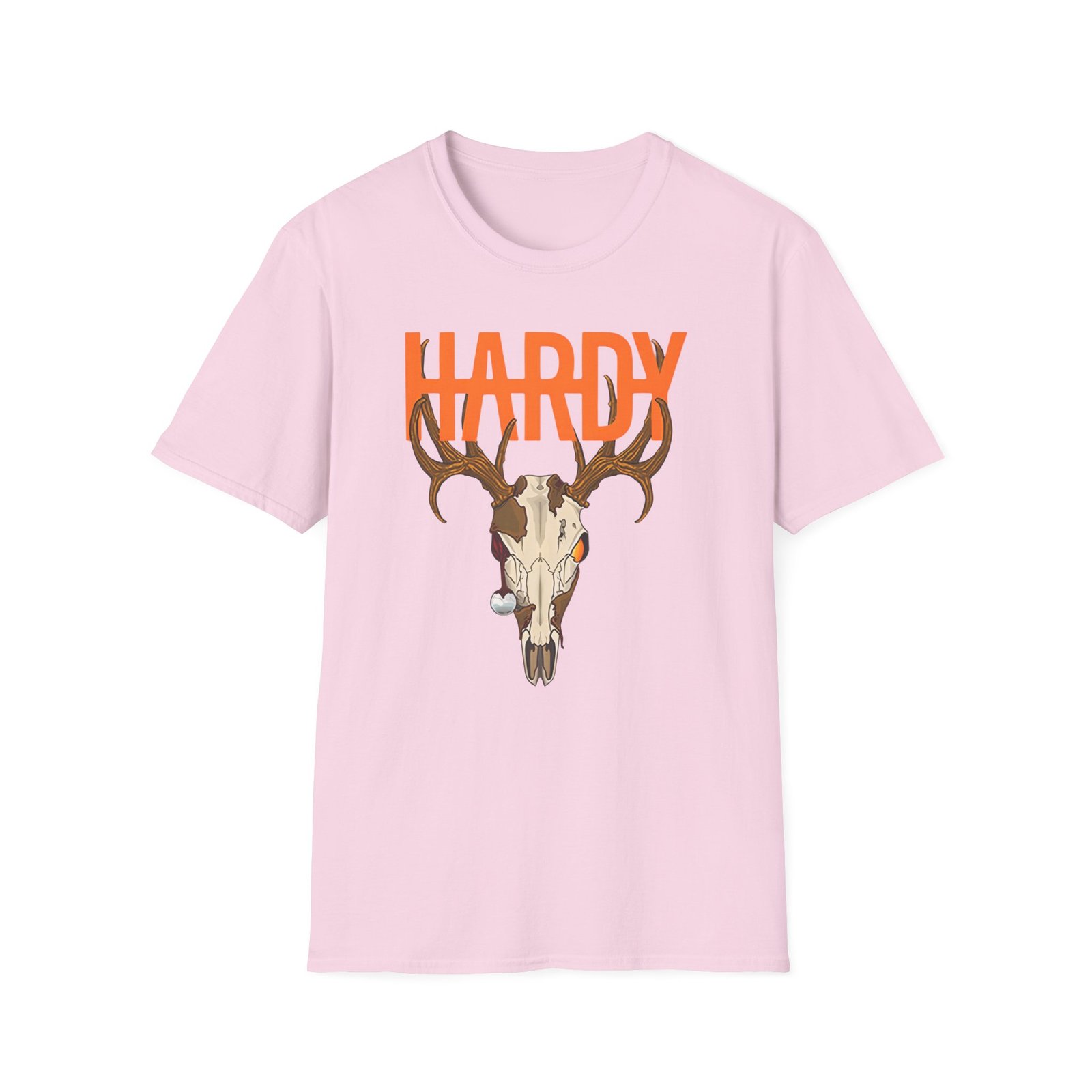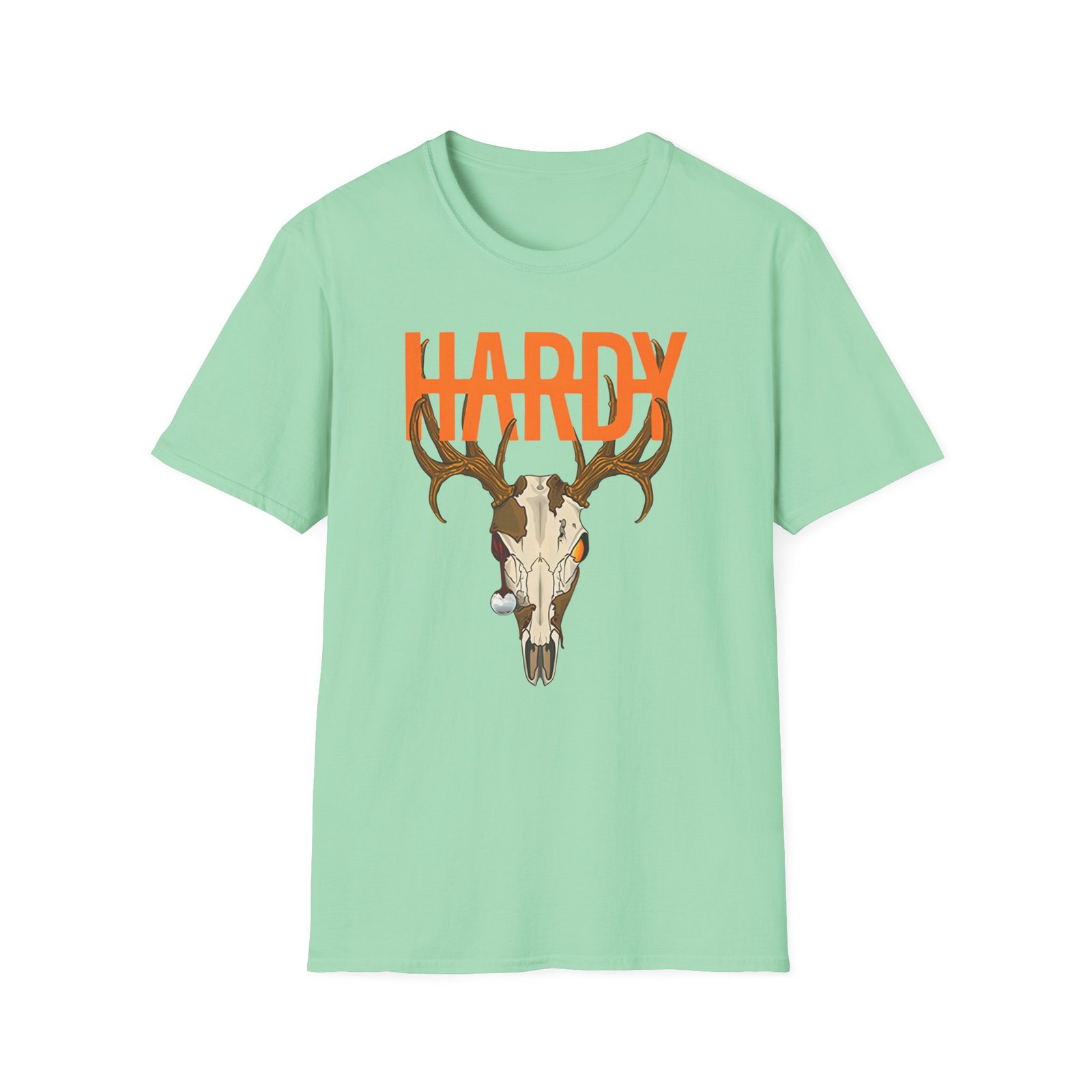 The Hardy Deer Skull unisex soft-style t-shirt puts a new spin on casual comfort. Made from very soft materials, this tee is 100% cotton for solid colors. Heather colors and sports grey include polyester. The shoulders have twill tape for improved durability. There are no side seams. The collar is made with ribbed knitting to prevent curling damage.