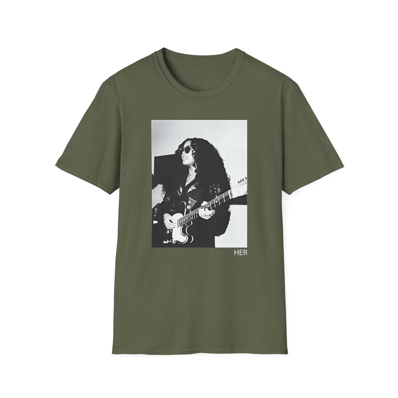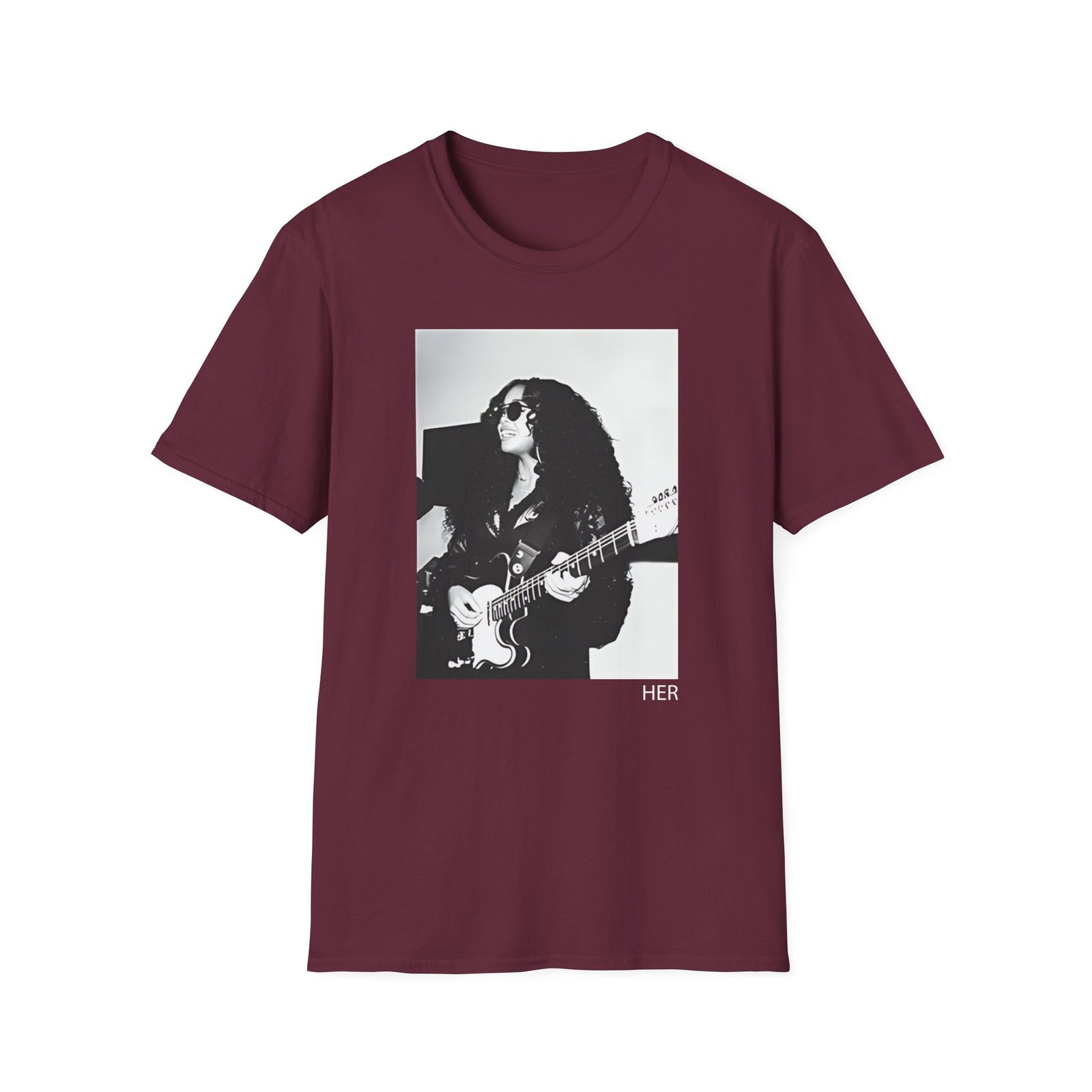 The HER With Guitar Lightweight unisex soft-style t-shirt puts a new spin on casual comfort. Made from very soft materials, this tee is 100% cotton for solid colors. Heather colors and sports grey include polyester. The shoulders have twill tape for improved durability. There are no side seams. The collar is made with ribbed knitting to prevent curling damage.