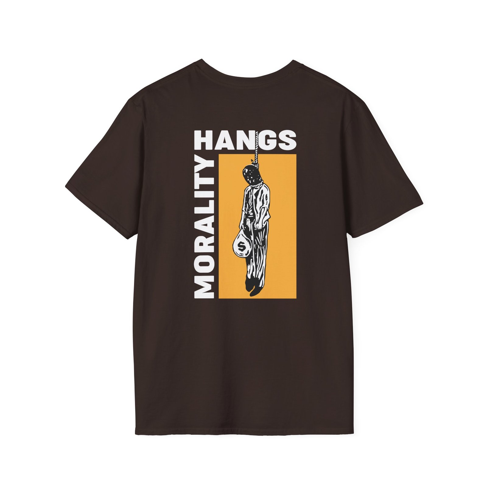 The I Am Morality Hangs unisex soft-style t-shirt puts a new spin on casual comfort. Made from very soft materials, this tee is 100% cotton for solid colors. Heather colors and sports grey include polyester. The shoulders have twill tape for improved durability. There are no side seams. The collar is made with ribbed knitting to prevent curling damage.