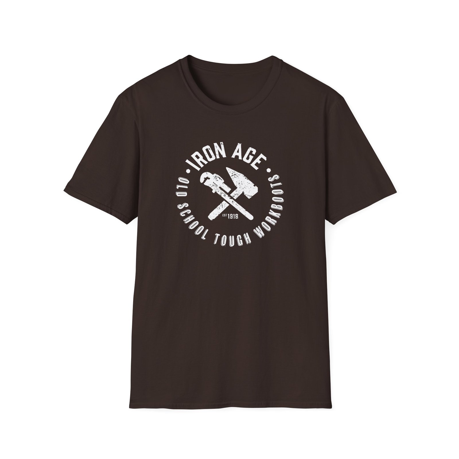 The Iron Age Emblem unisex soft-style t-shirt puts a new spin on casual comfort. Made from very soft materials, this tee is 100% cotton for solid colors. Heather colors and sports grey include polyester. The shoulders have twill tape for improved durability. There are no side seams. The collar is made with ribbed knitting to prevent curling damage.