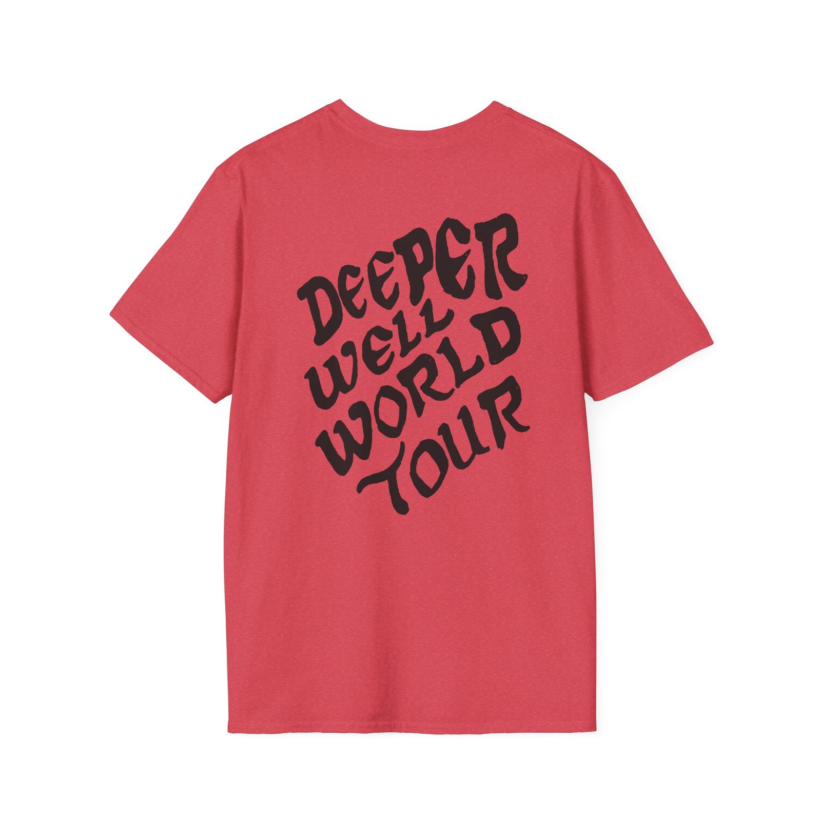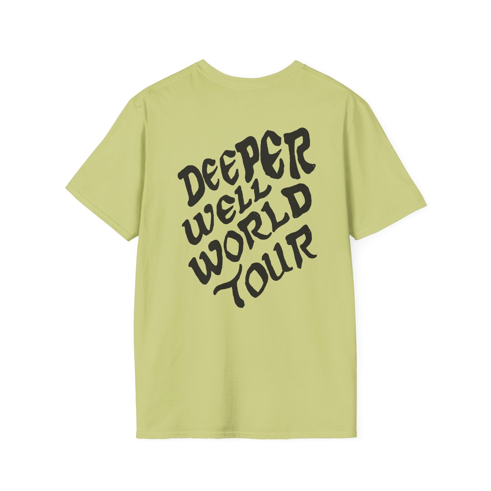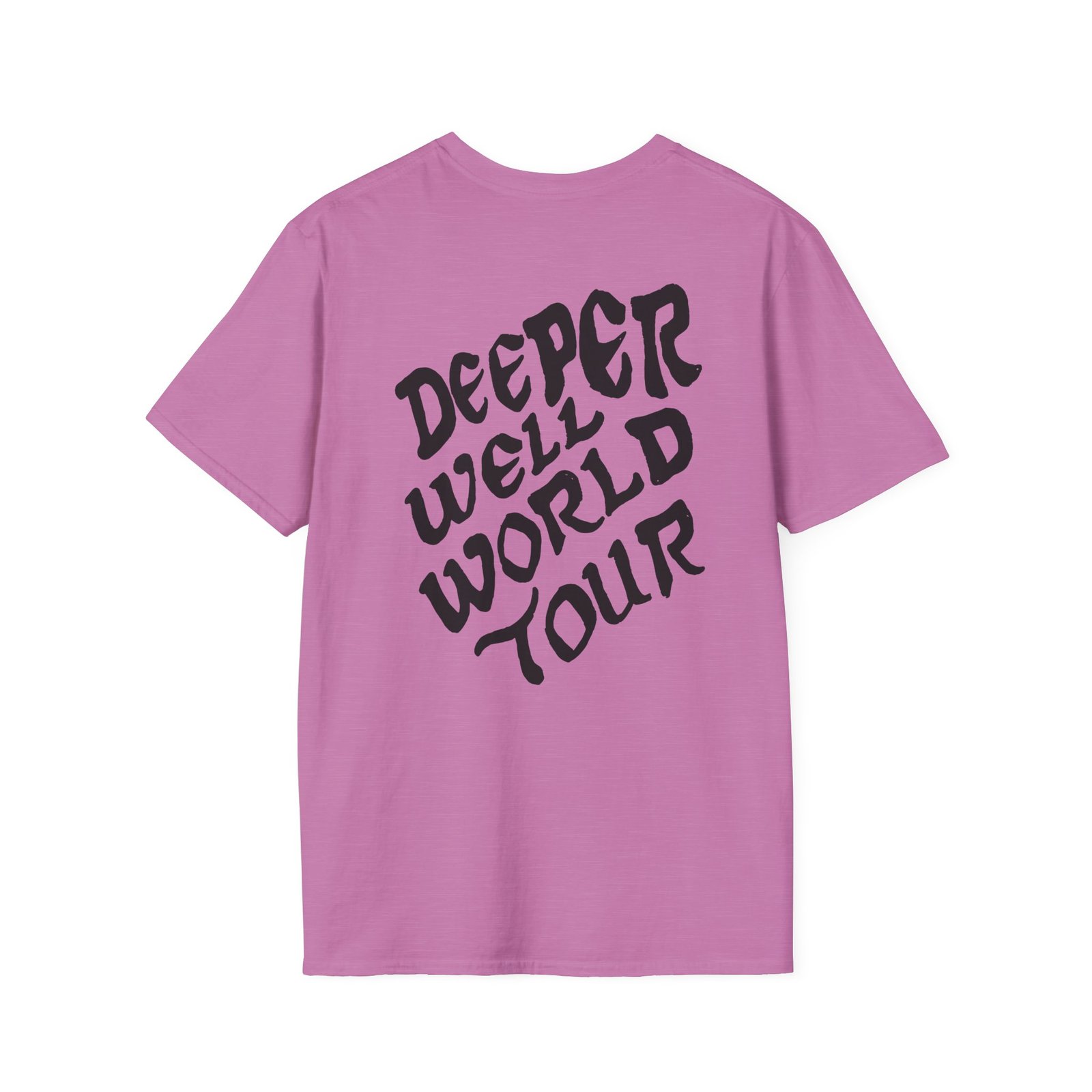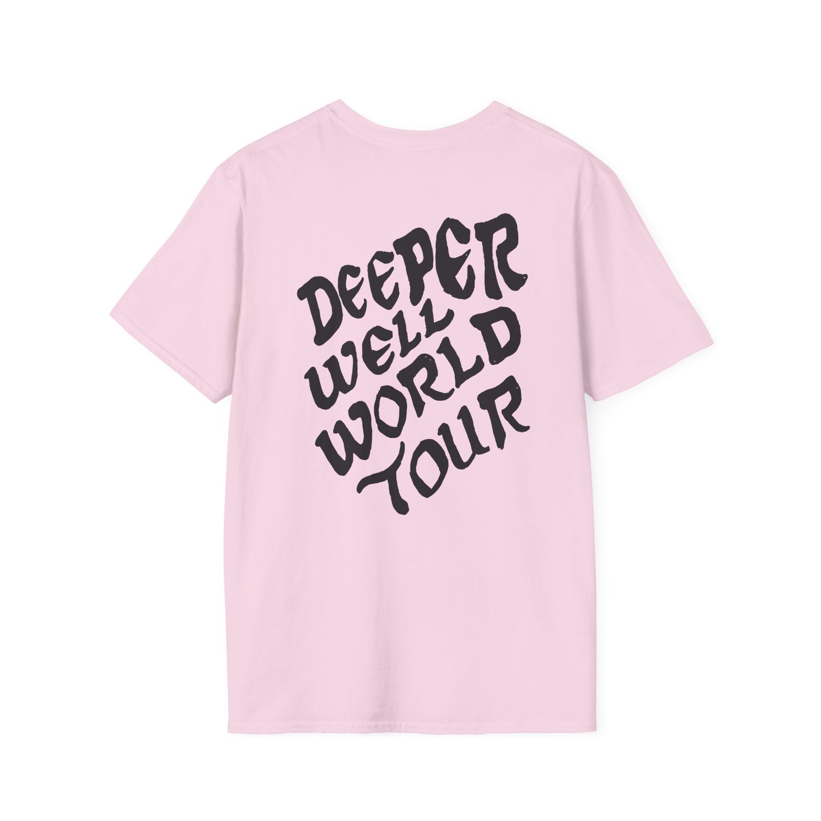 The Kacey Musgraves Deeper Well World Tour unisex soft-style t-shirt puts a new spin on casual comfort. Made from very soft materials, this tee is 100% cotton for solid colors. Heather colors and sports grey include polyester. The shoulders have twill tape for improved durability. There are no side seams. The collar is made with ribbed knitting to prevent curling damage.