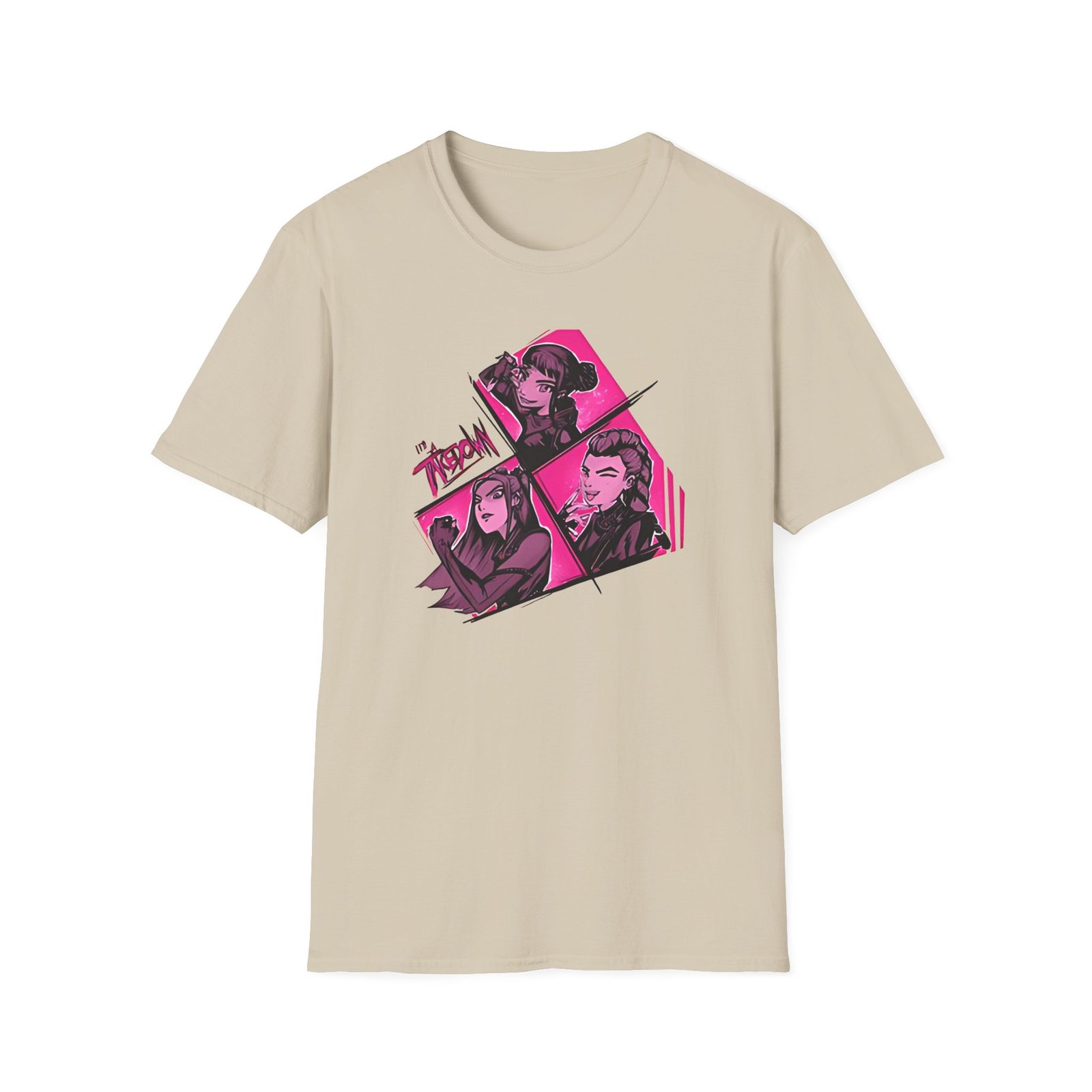 The Kpop Demon Hunters Take Down Unisex Softstyle T-Shirt puts a new spin on casual comfort. Made from very soft materials, this tee is 100% cotton for solid colors. Heather colors and sports grey include polyester. The shoulders have twill tape for improved durability. There are no side seams. The collar is made with ribbed knitting to prevent curling damage.