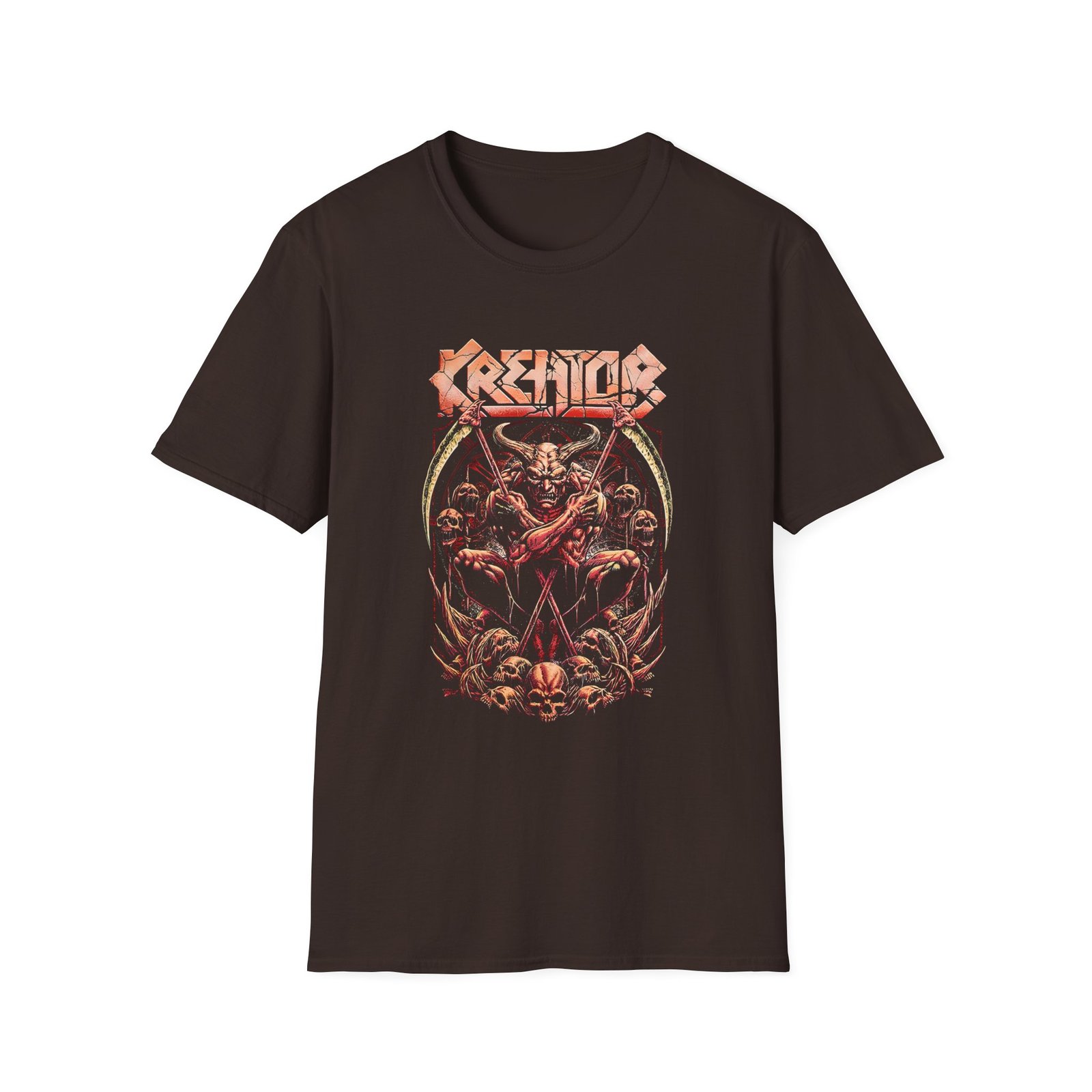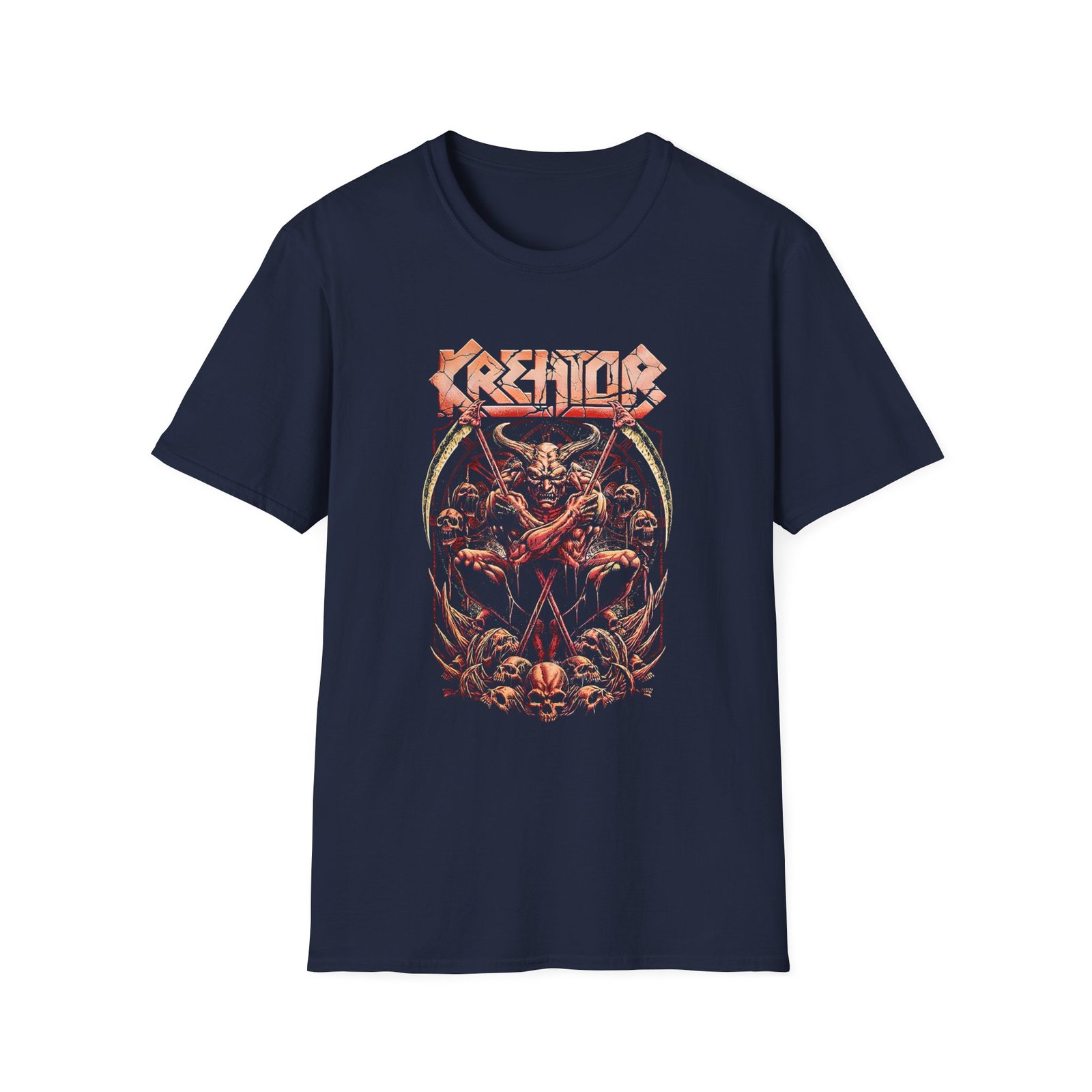 The Kreator Demonic Future unisex soft-style t-shirt puts a new spin on casual comfort. Made from very soft materials, this tee is 100% cotton for solid colors. Heather colors and sports grey include polyester. The shoulders have twill tape for improved durability. There are no side seams. The collar is made with ribbed knitting to prevent curling damage.