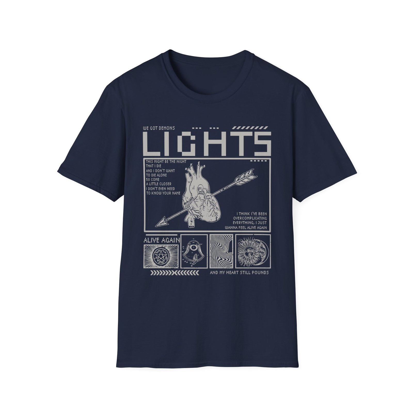 Introducing a stylish and comfortable Lights Alive Again Lyric Unisex Softstyle T-Shirt that perfectly blends creativity and casual fashion. This t-shirt exudes a relaxed vibe, making it an ideal choice for everyday wear, while also serving as a unique statement piece. It resonates with anyone who appreciates art and individuality, making it an excellent gift for birthdays, holidays, or just to show appreciation to friends and family. Whether you’re out running errands or joining a casual gathering, this t-shirt is versatile enough to match any occasion. Perfect for music lovers or those who enjoy unique graphic designs, it effortlessly fits into a relaxed weekend wardrobe or casual office attire.