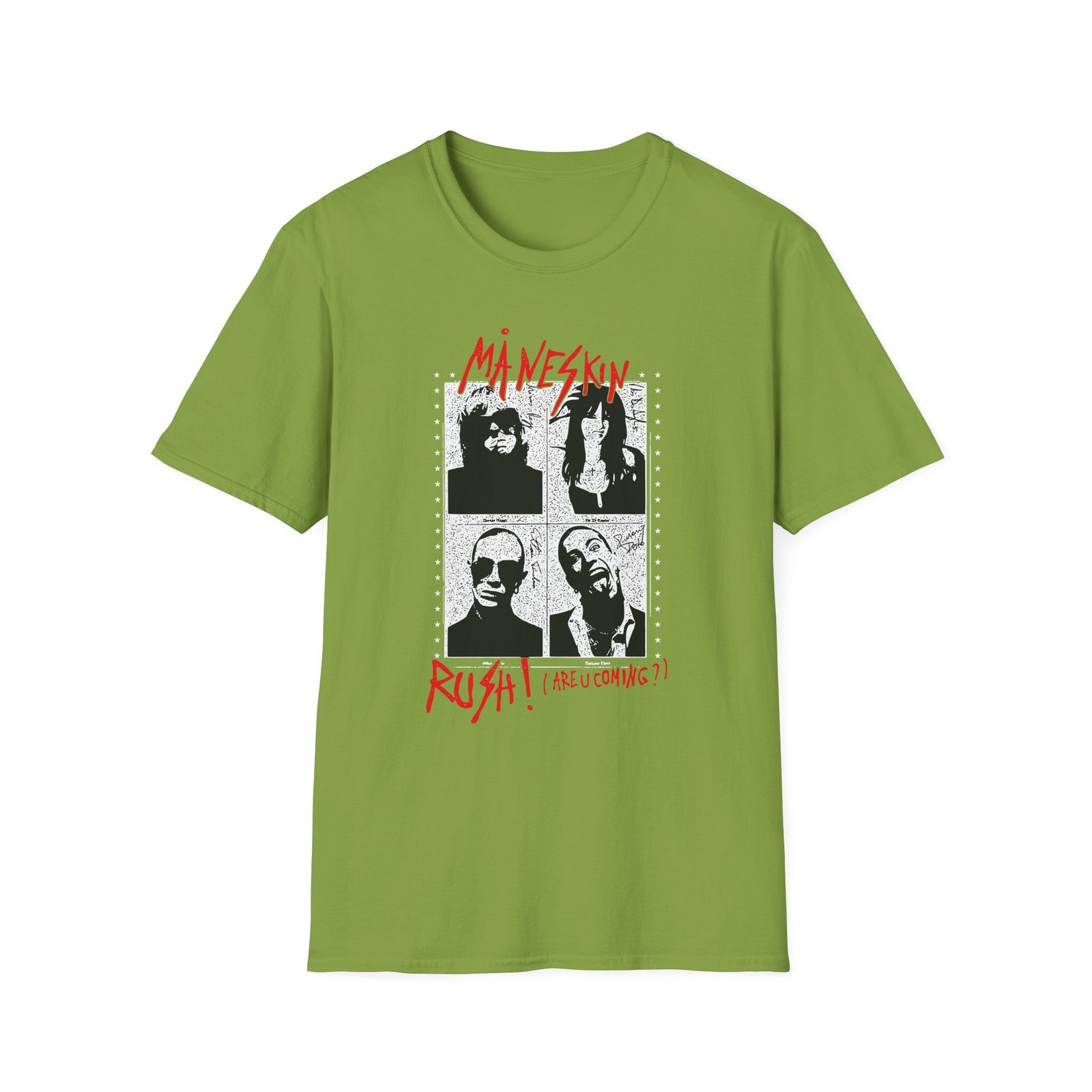 The Maneskin RUSH! unisex soft-style t-shirt puts a new spin on casual comfort. Made from very soft materials, this tee is 100% cotton for solid colors. Heather colors and sports grey include polyester. The shoulders have twill tape for improved durability. There are no side seams. The collar is made with ribbed knitting to prevent curling damage.