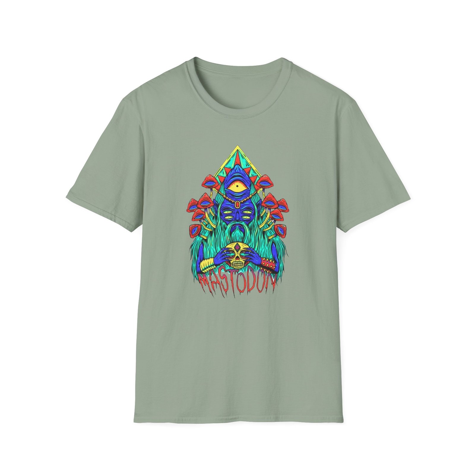 The Mastodon Mushroom Wizard Glow unisex soft-style t-shirt puts a new spin on casual comfort. Made from very soft materials, this tee is 100% cotton for solid colors. Heather colors and sports grey include polyester. The shoulders have twill tape for improved durability. There are no side seams. The collar is made with ribbed knitting to prevent curling damage.