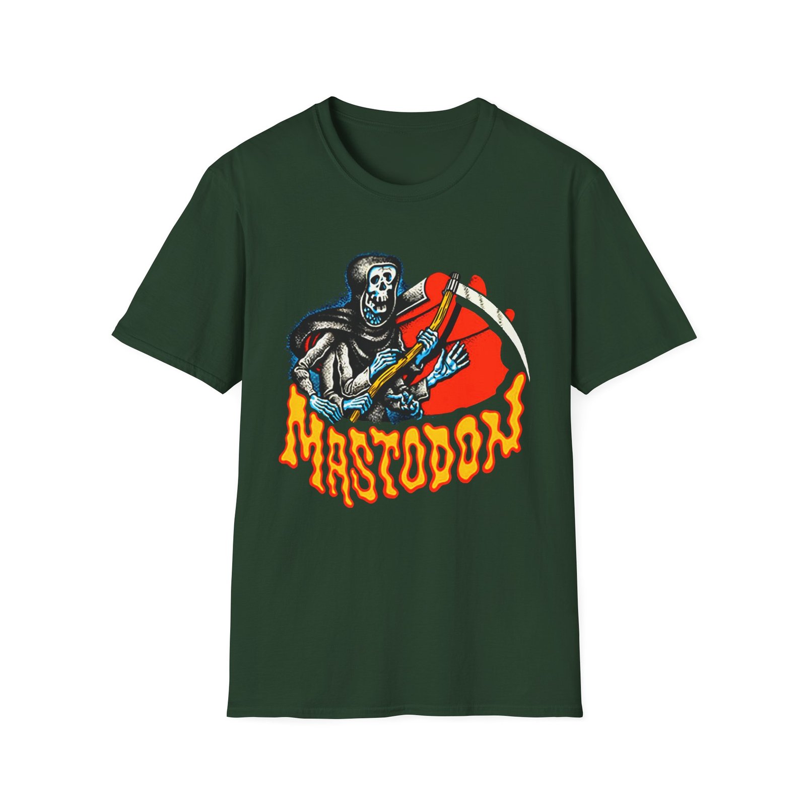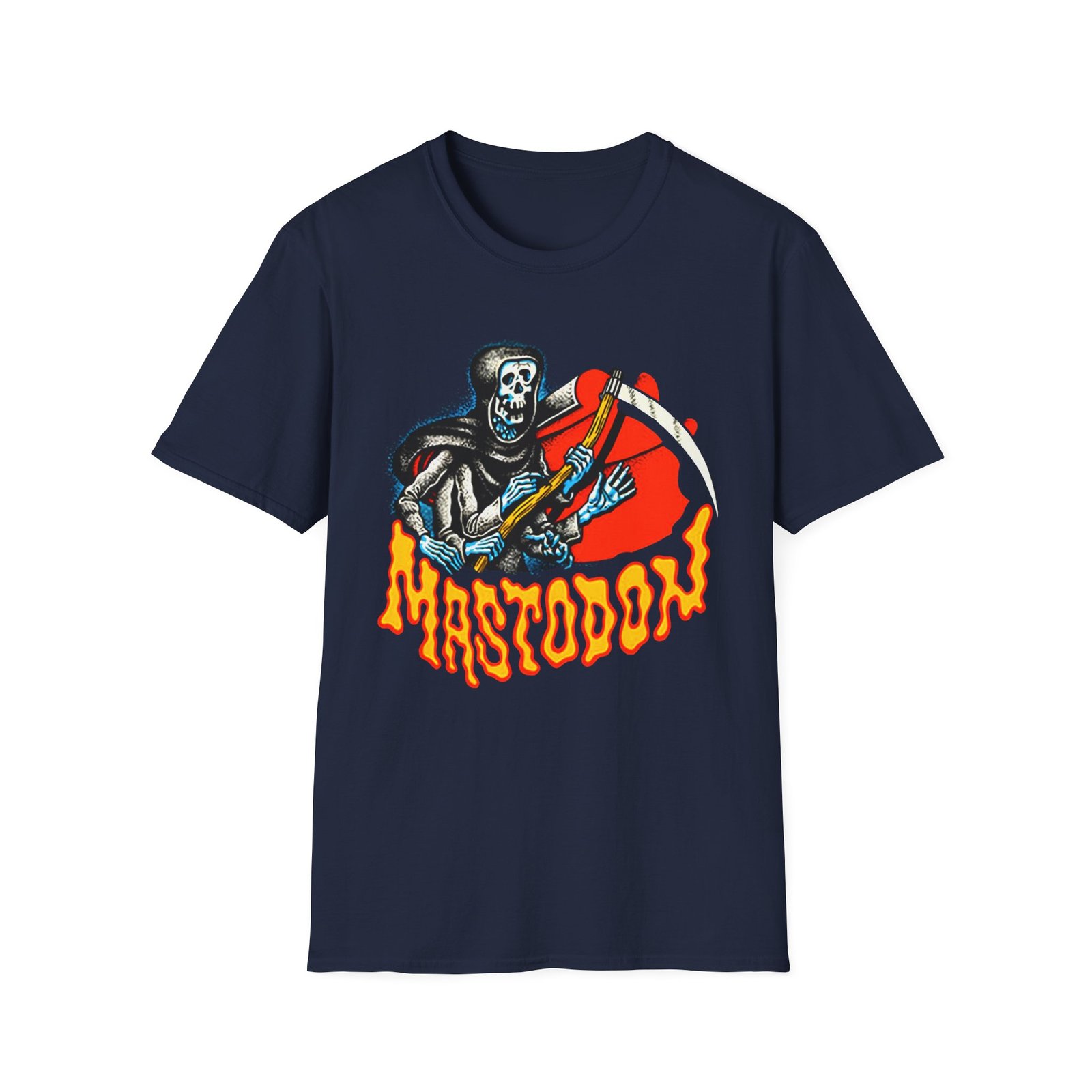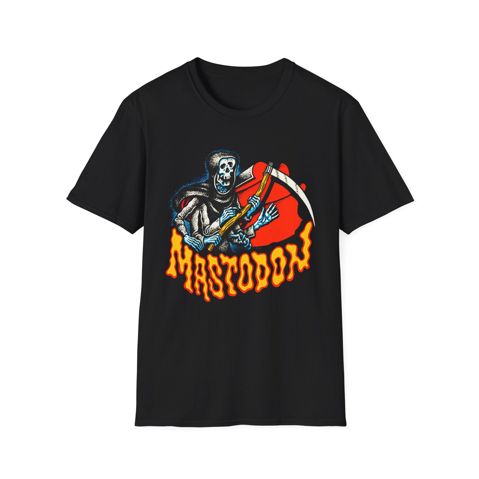 The Mastodon Reaper unisex soft-style t-shirt puts a new spin on casual comfort. Made from very soft materials, this tee is 100% cotton for solid colors. Heather colors and sports grey include polyester. The shoulders have twill tape for improved durability. There are no side seams. The collar is made with ribbed knitting to prevent curling damage.