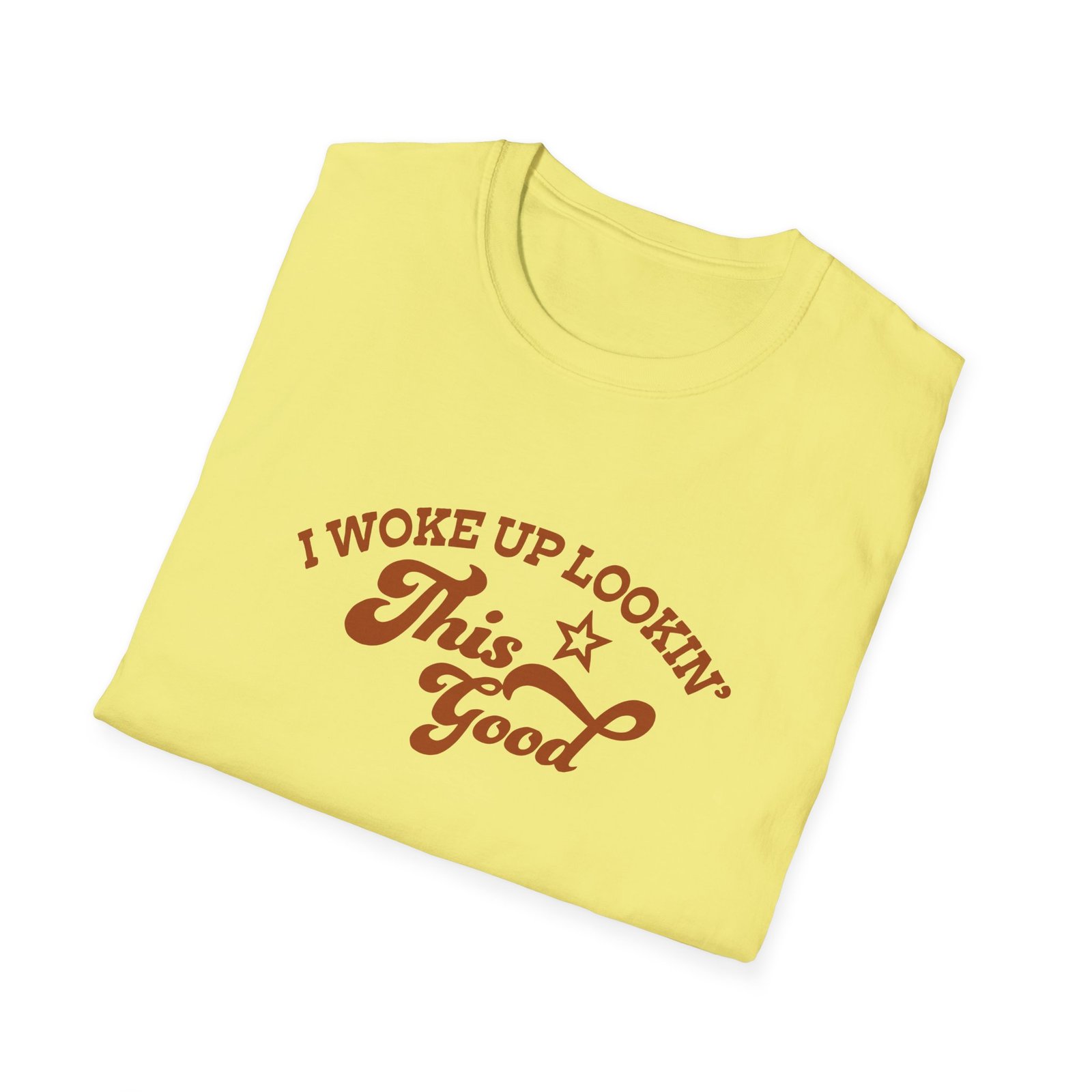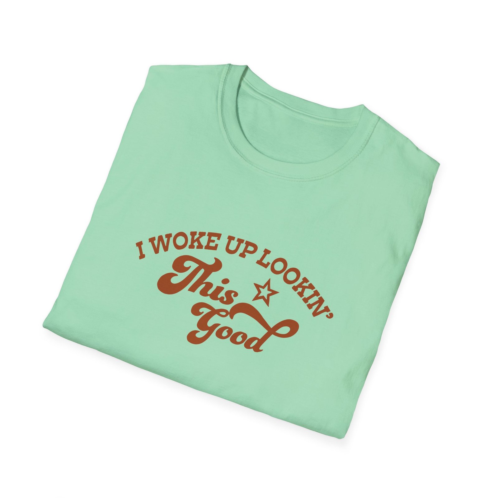 The Megan I Woke Up Lookin’ This Good unisex soft-style t-shirt puts a new spin on casual comfort. Made from very soft materials, this tee is 100% cotton for solid colors. Heather colors and sports grey include polyester. The shoulders have twill tape for improved durability. There are no side seams. The collar is made with ribbed knitting to prevent curling damage.