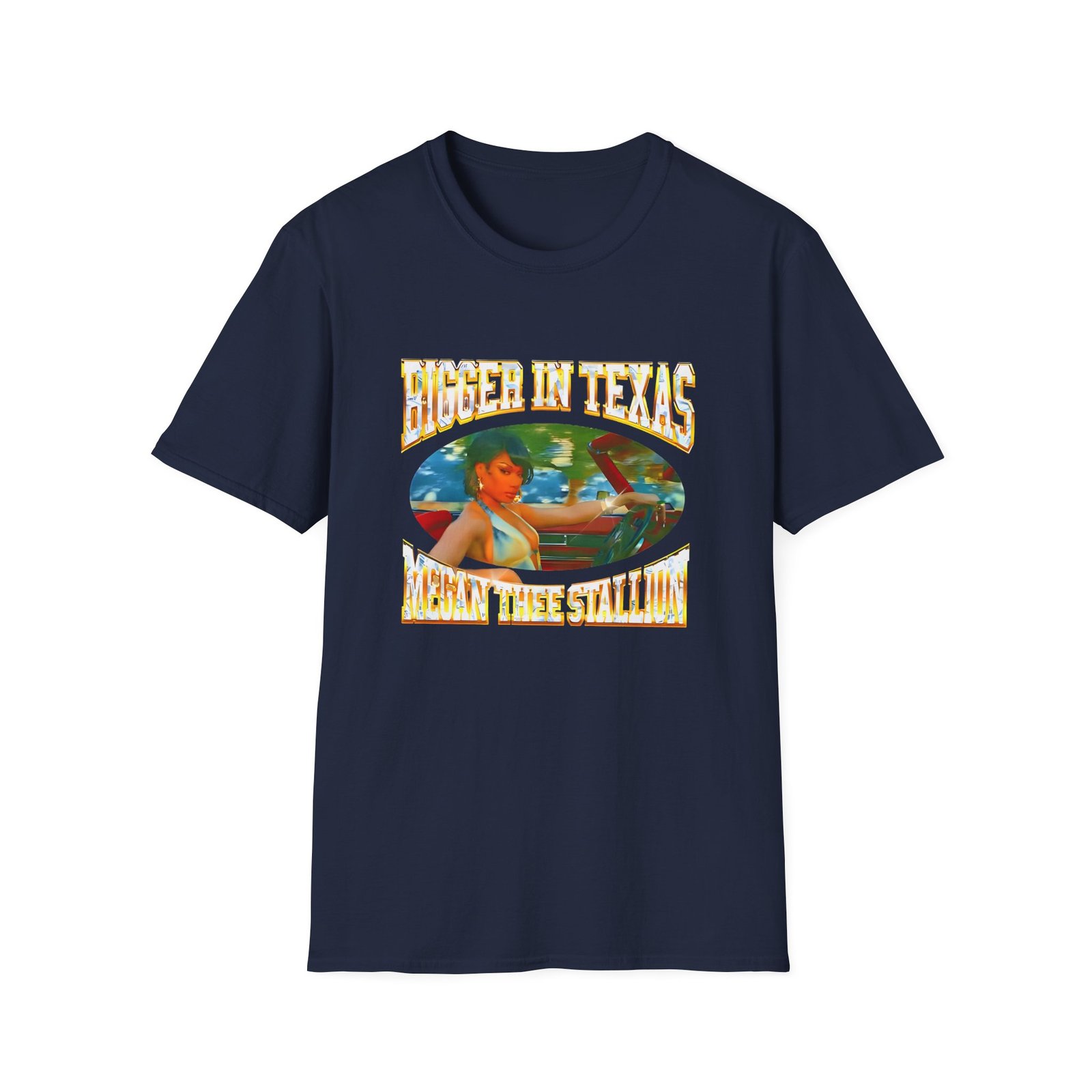 The Megan Thee Stallion bigger in Texas rider unisex soft-style t-shirt puts a new spin on casual comfort. Made from very soft materials, this tee is 100% cotton for solid colors. Heather colors and sports grey include polyester. The shoulders have twill tape for improved durability. There are no side seams. The collar is made with ribbed knitting to prevent curling damage.