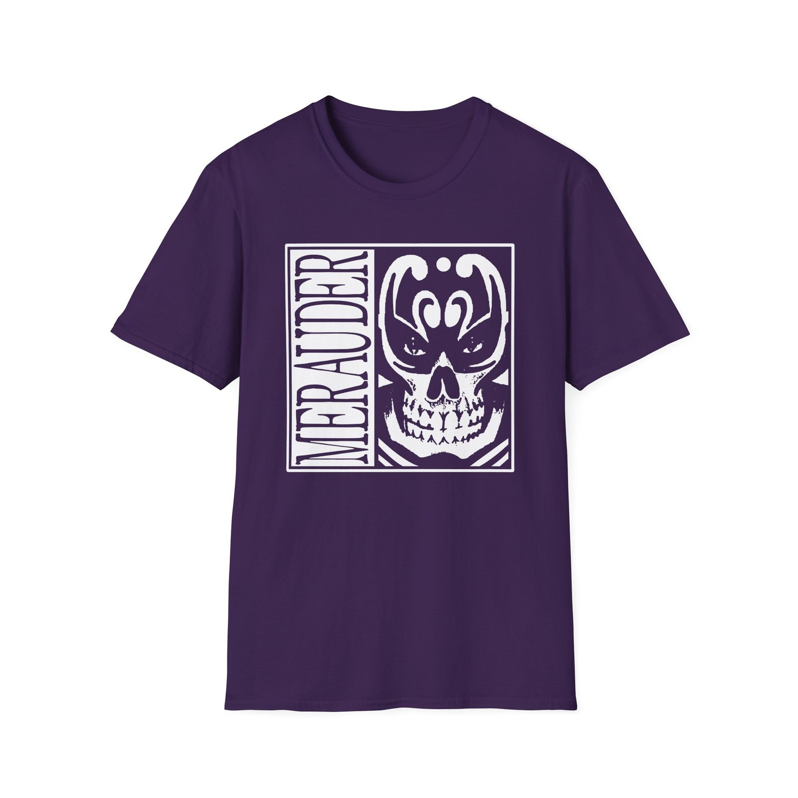 The Merauder Skull unisex soft-style t-shirt puts a new spin on casual comfort. Made from very soft materials, this tee is 100% cotton for solid colors. Heather colors and sports grey include polyester. The shoulders have twill tape for improved durability. There are no side seams. The collar is made with ribbed knitting to prevent curling damage.