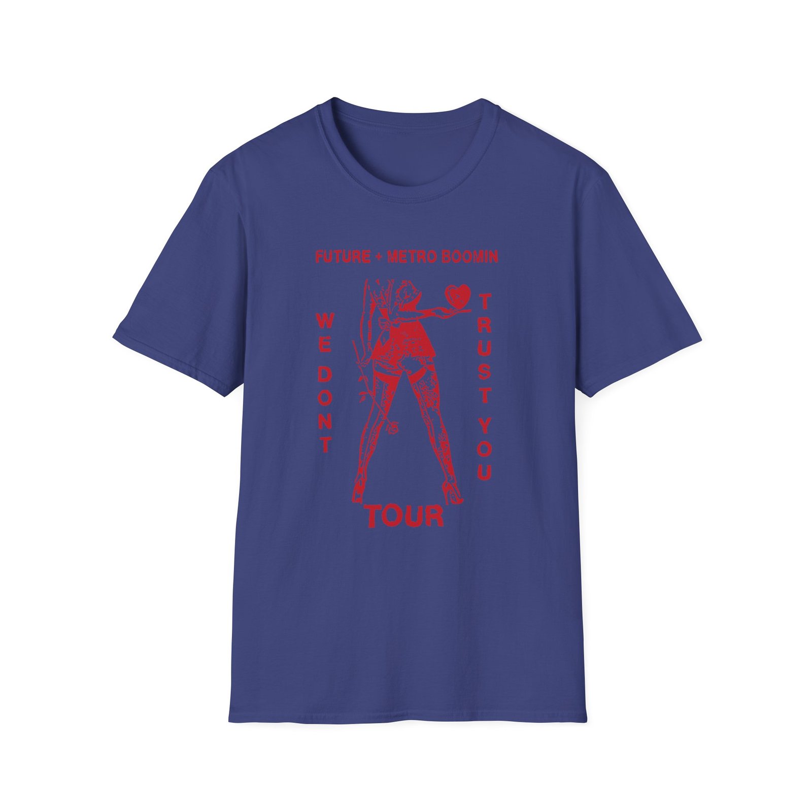 The Metro Boomin No Love unisex soft-style t-shirt puts a new spin on casual comfort. Made from very soft materials, this tee is 100% cotton for solid colors. Heather colors and sports grey include polyester. The shoulders have twill tape for improved durability. There are no side seams. The collar is made with ribbed knitting to prevent curling damage.