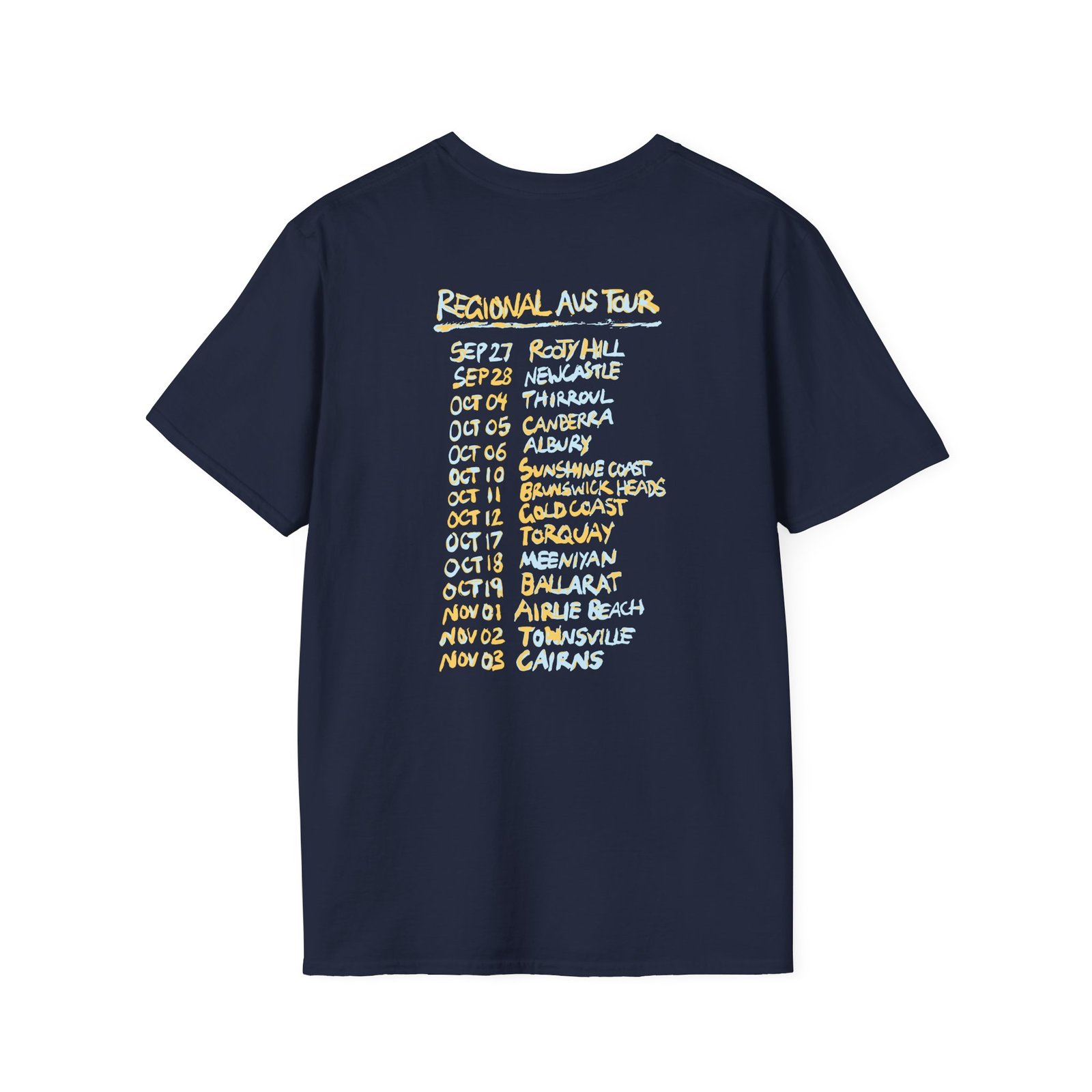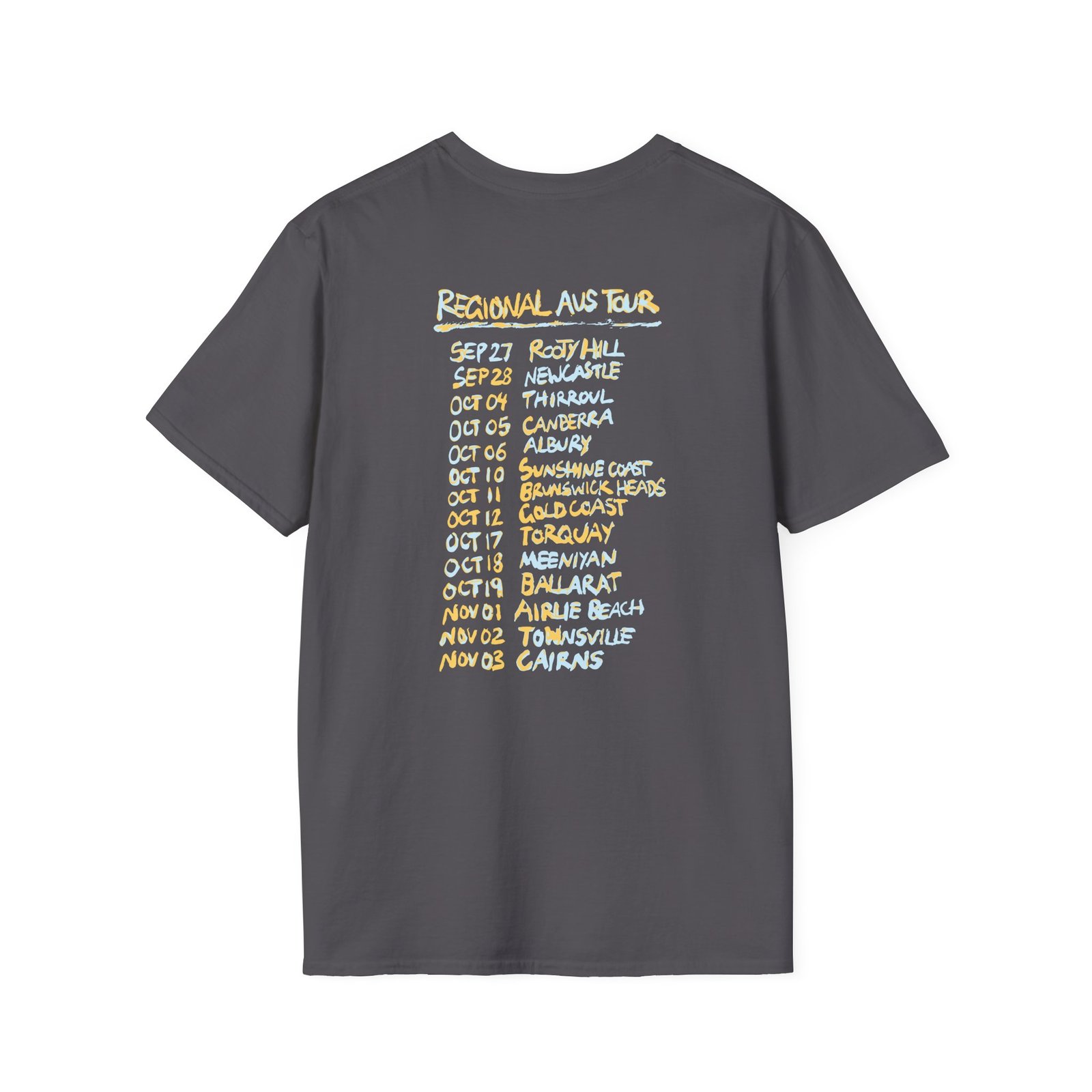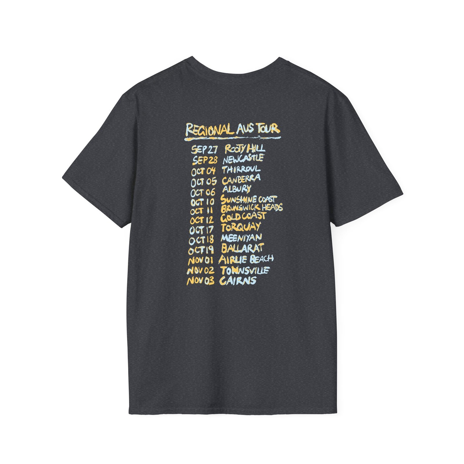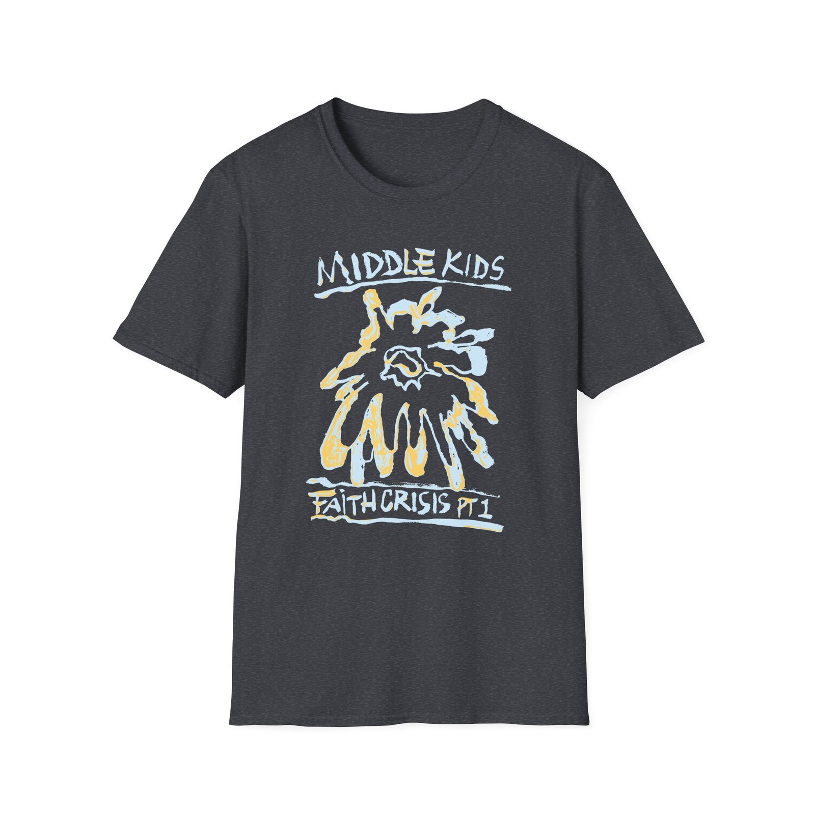 The Middle Kids Faith Crisis Regional Tour unisex soft-style t-shirt puts a new spin on casual comfort. Made from very soft materials, this tee is 100% cotton for solid colors. Heather colors and sports grey include polyester. The shoulders have twill tape for improved durability. There are no side seams. The collar is made with ribbed knitting to prevent curling damage.