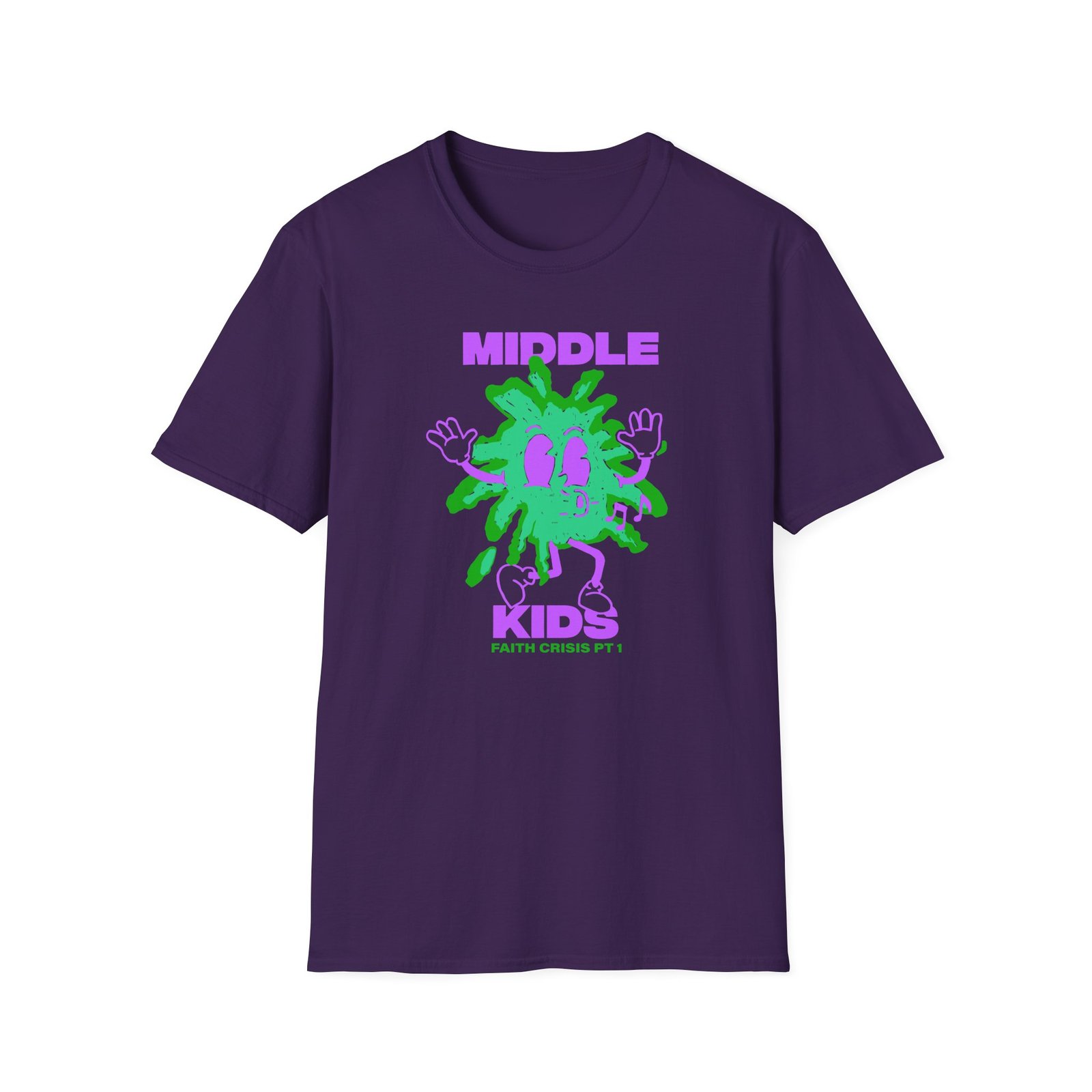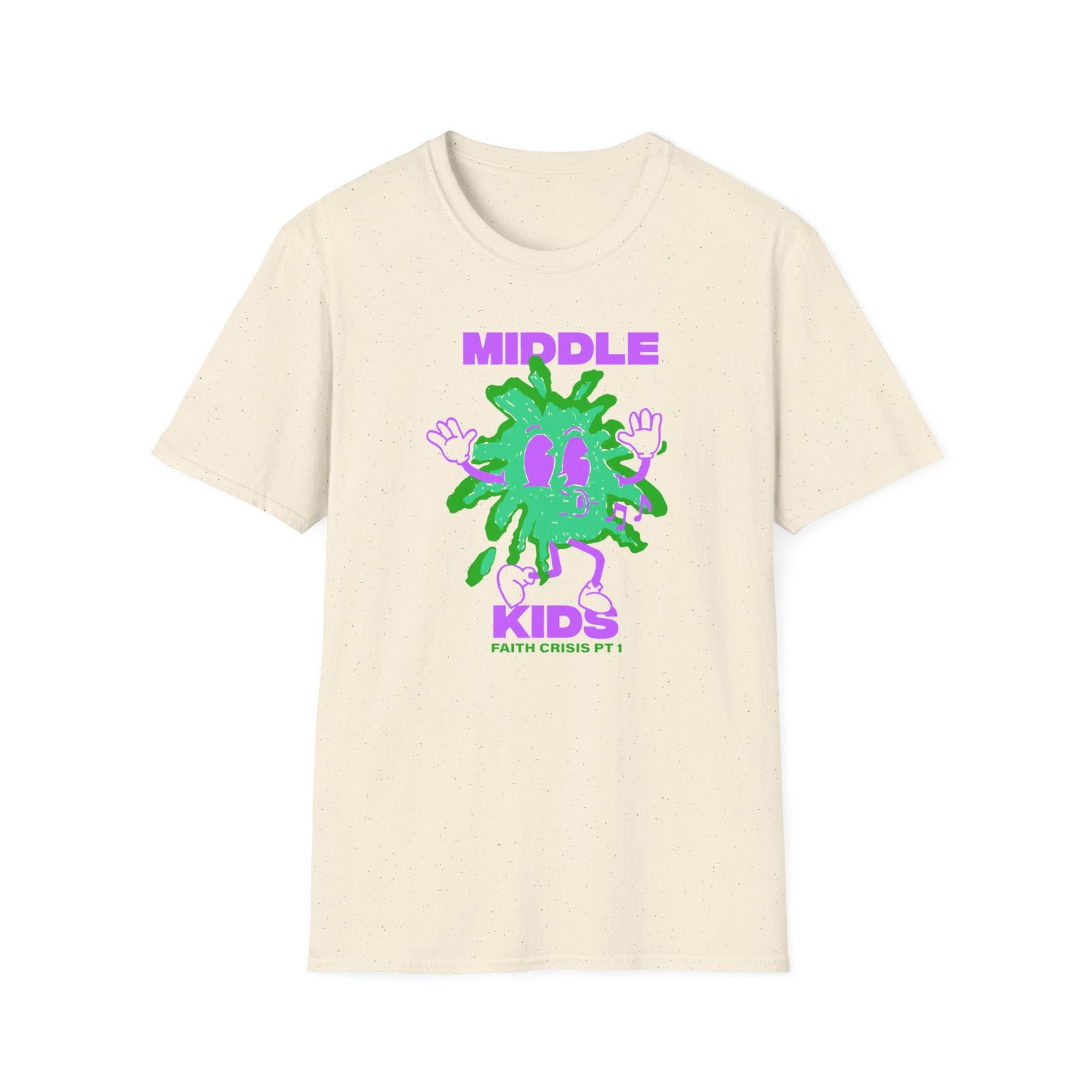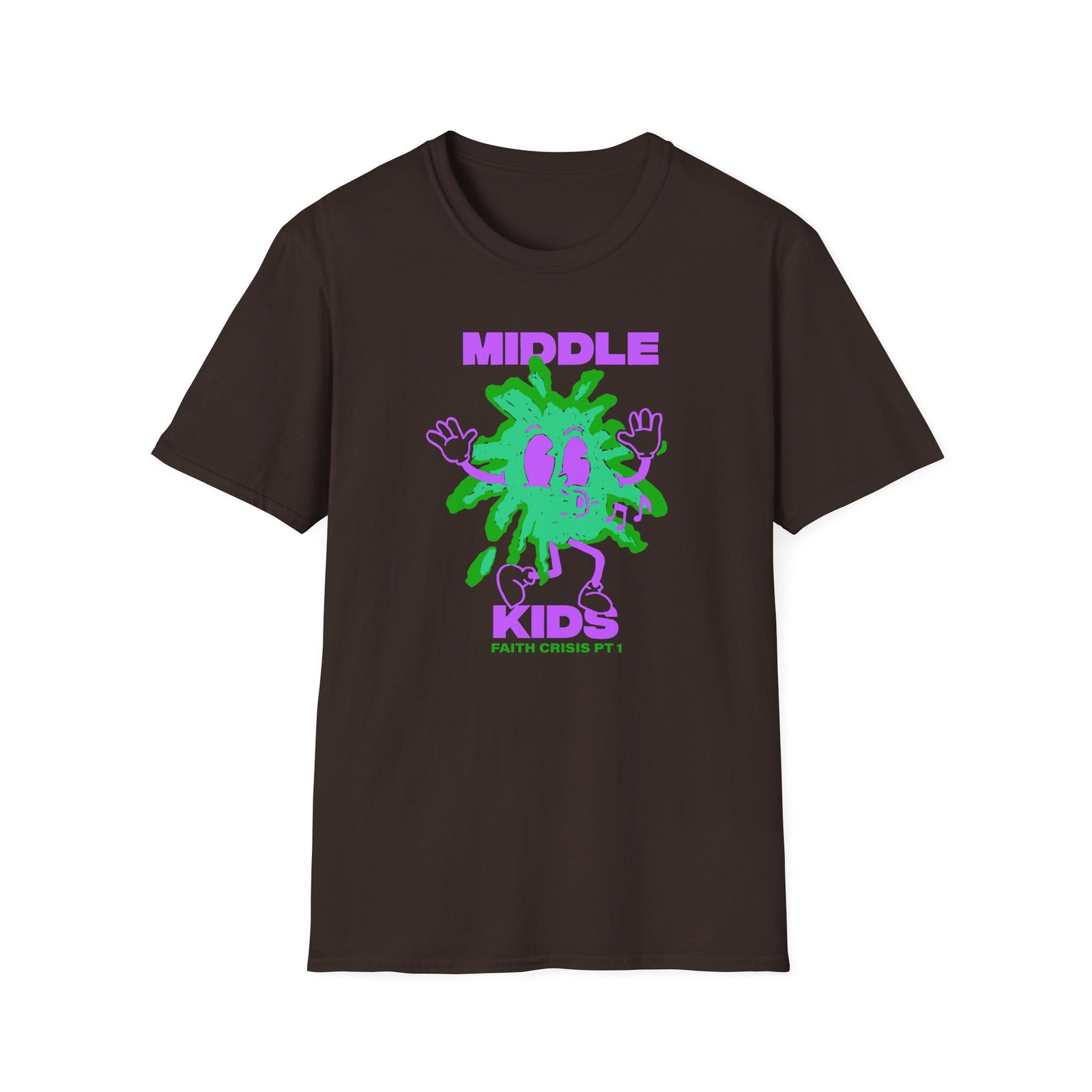 The Middle Kids Little Faith Crisis Buddy unisex soft-style t-shirt puts a new spin on casual comfort. Made from very soft materials, this tee is 100% cotton for solid colors. Heather colors and sports grey include polyester. The shoulders have twill tape for improved durability. There are no side seams. The collar is made with ribbed knitting to prevent curling damage.