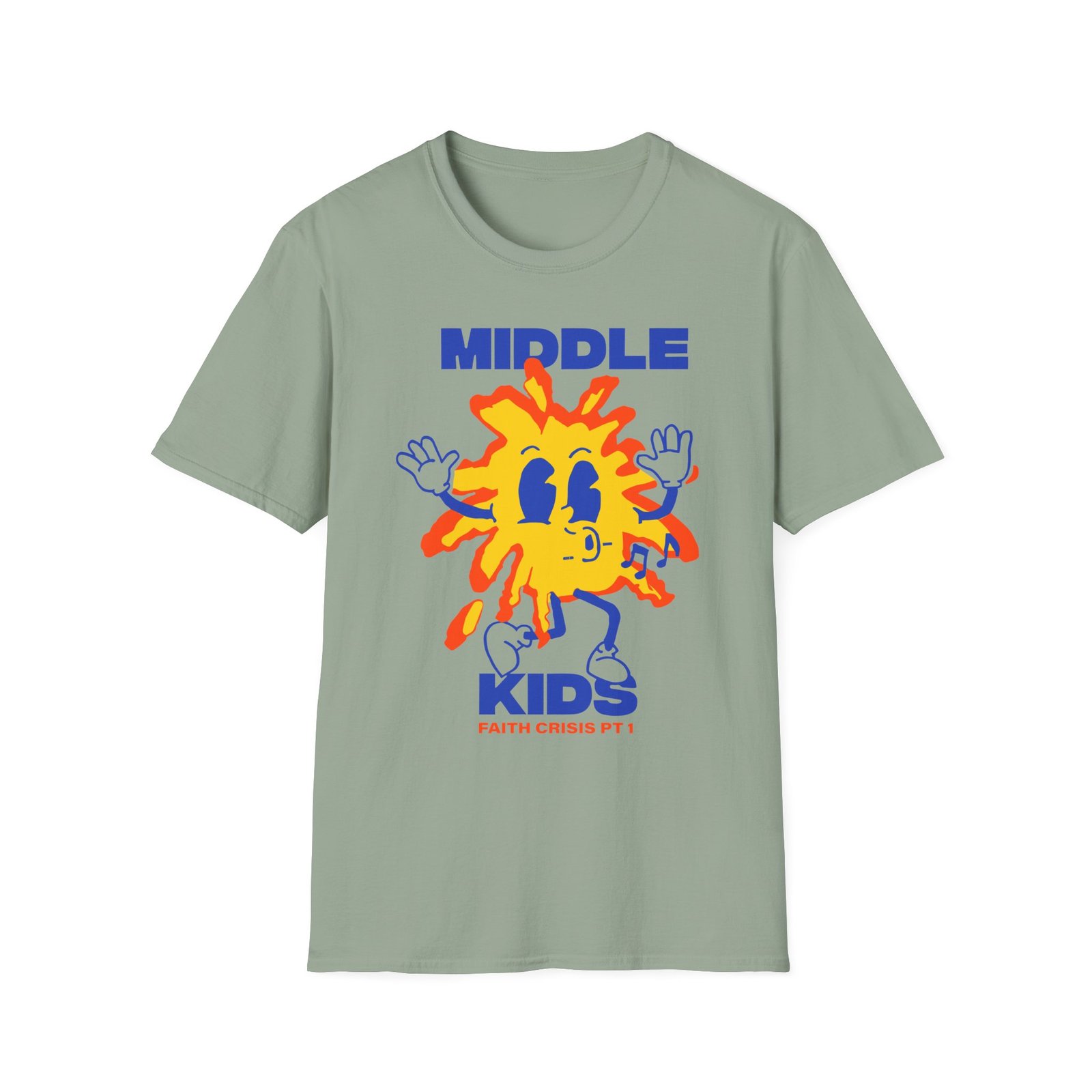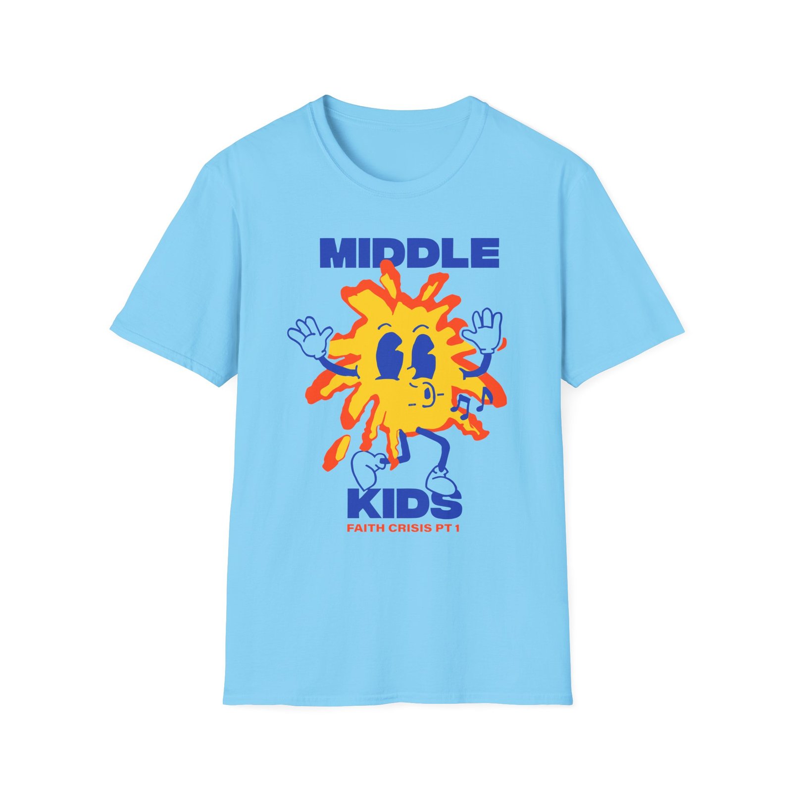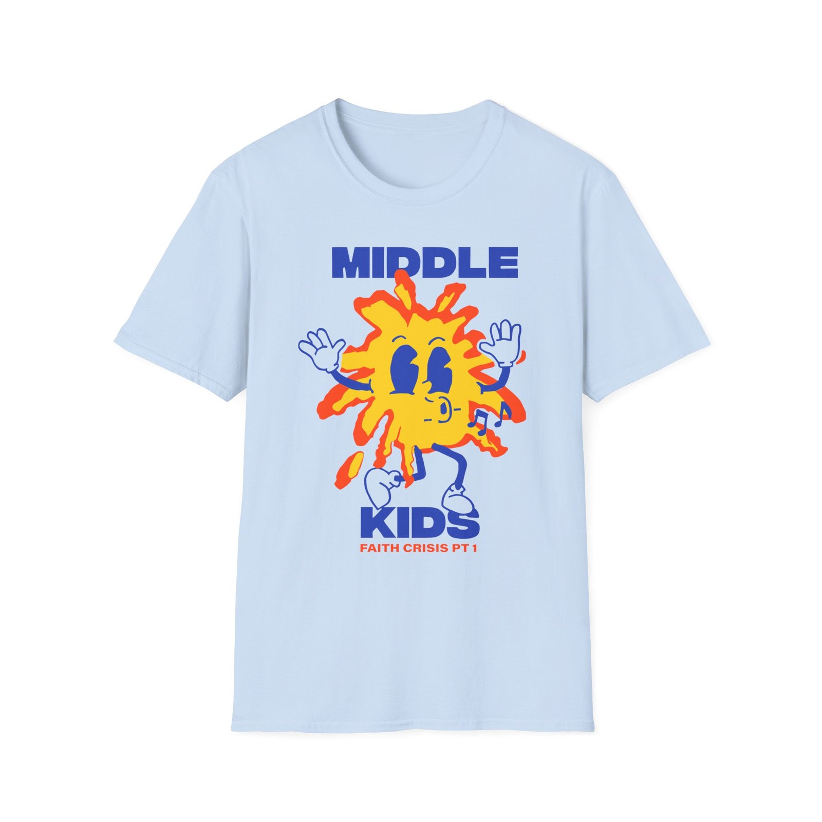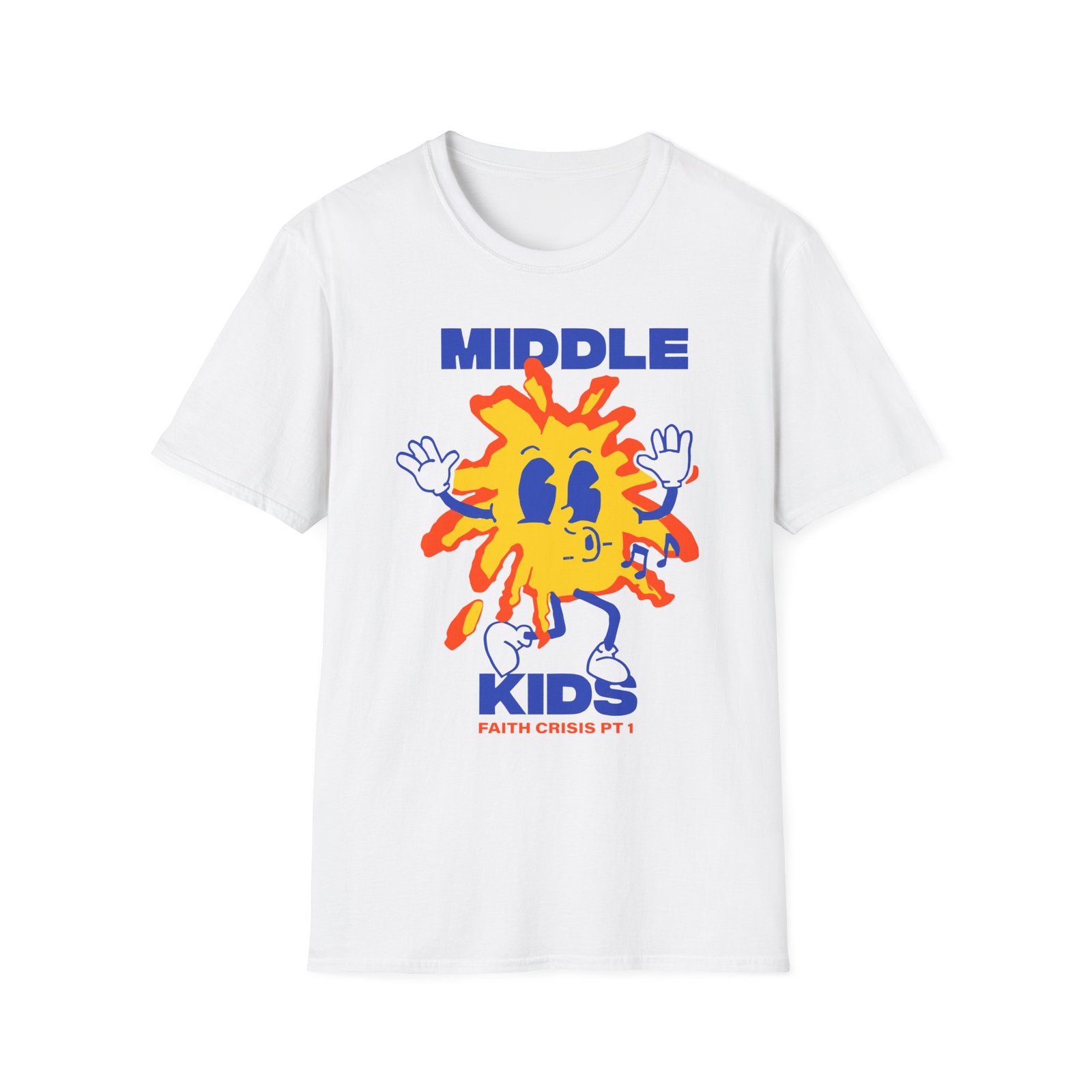 The Middle Kids Little Faith Crisis unisex soft-style t-shirt puts a new spin on casual comfort. Made from very soft materials, this tee is 100% cotton for solid colors. Heather colors and sports grey include polyester. The shoulders have twill tape for improved durability. There are no side seams. The collar is made with ribbed knitting to prevent curling damage.