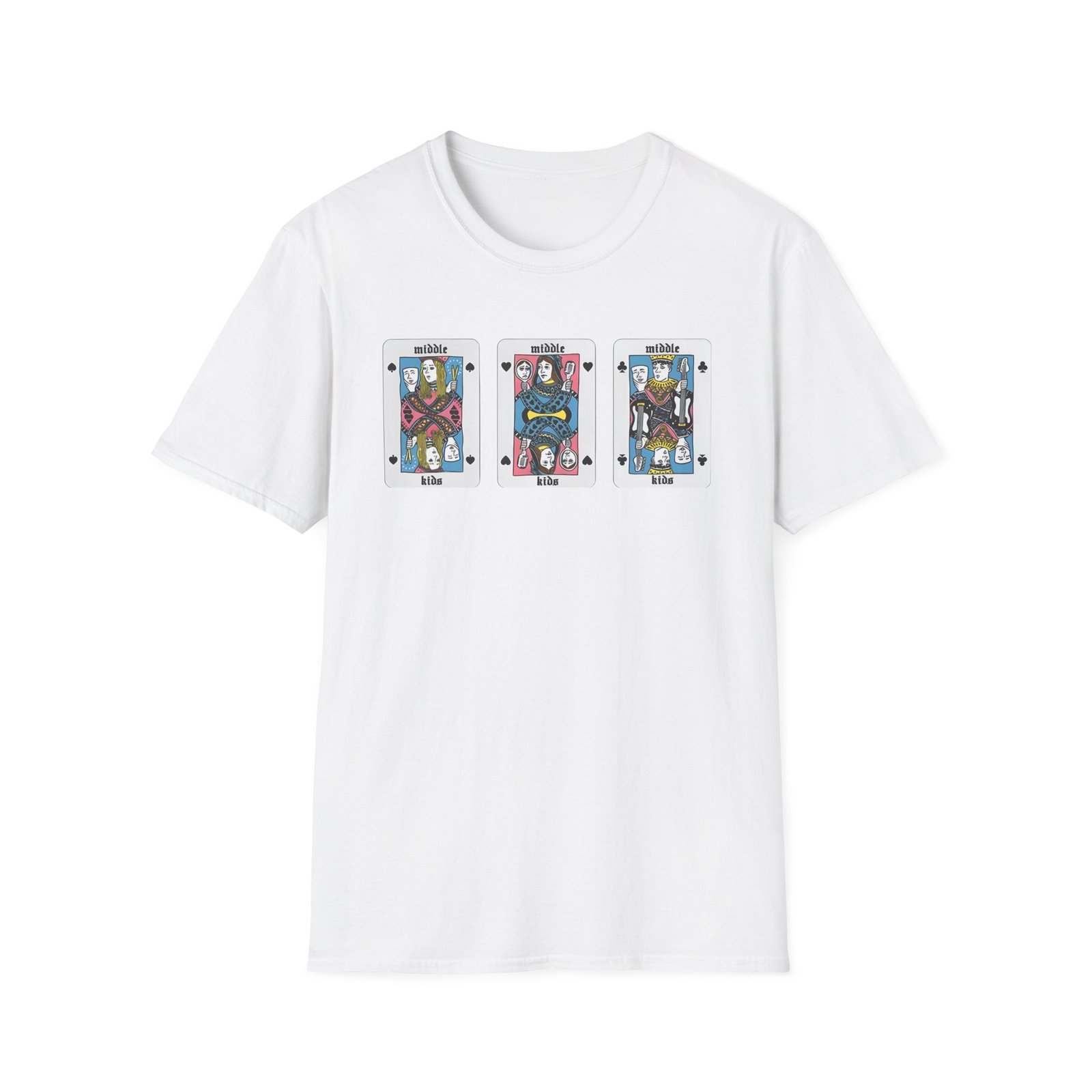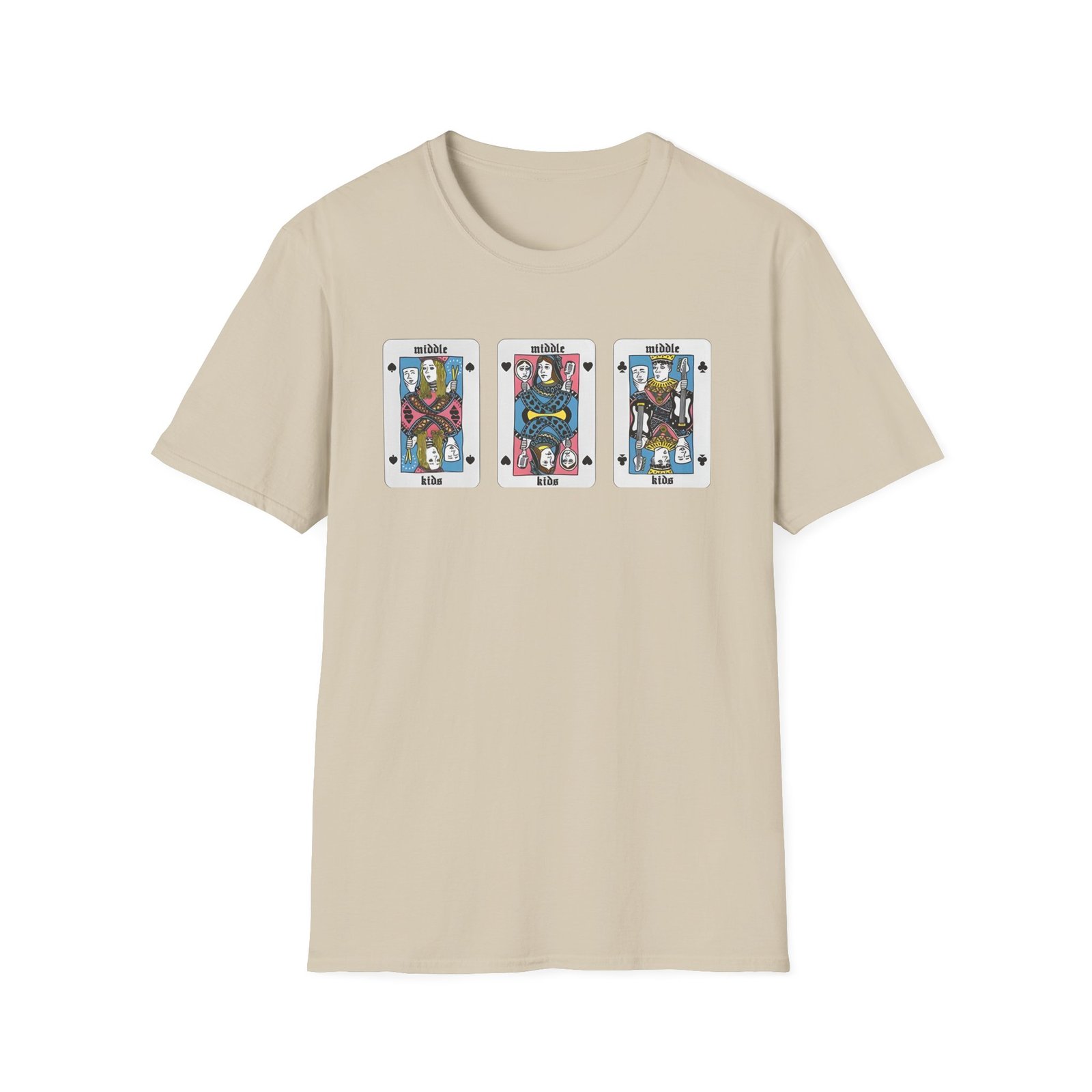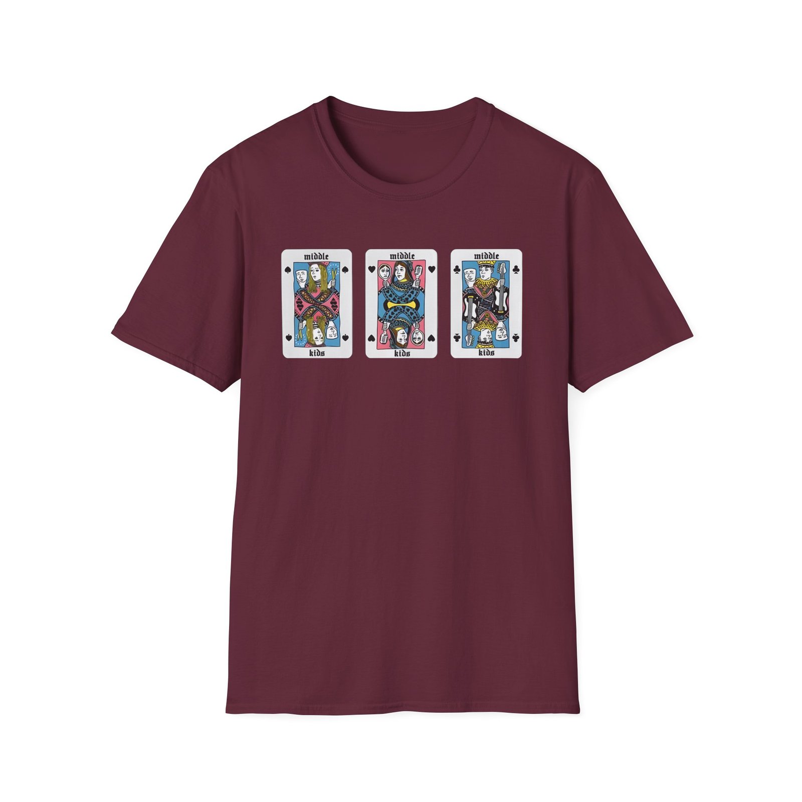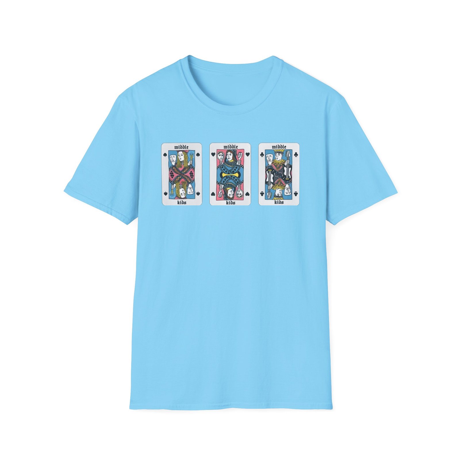 The Middle Kids Playing Cards unisex soft-style t-shirt puts a new spin on casual comfort. Made from very soft materials, this tee is 100% cotton for solid colors. Heather colors and sports grey include polyester. The shoulders have twill tape for improved durability. There are no side seams. The collar is made with ribbed knitting to prevent curling damage.