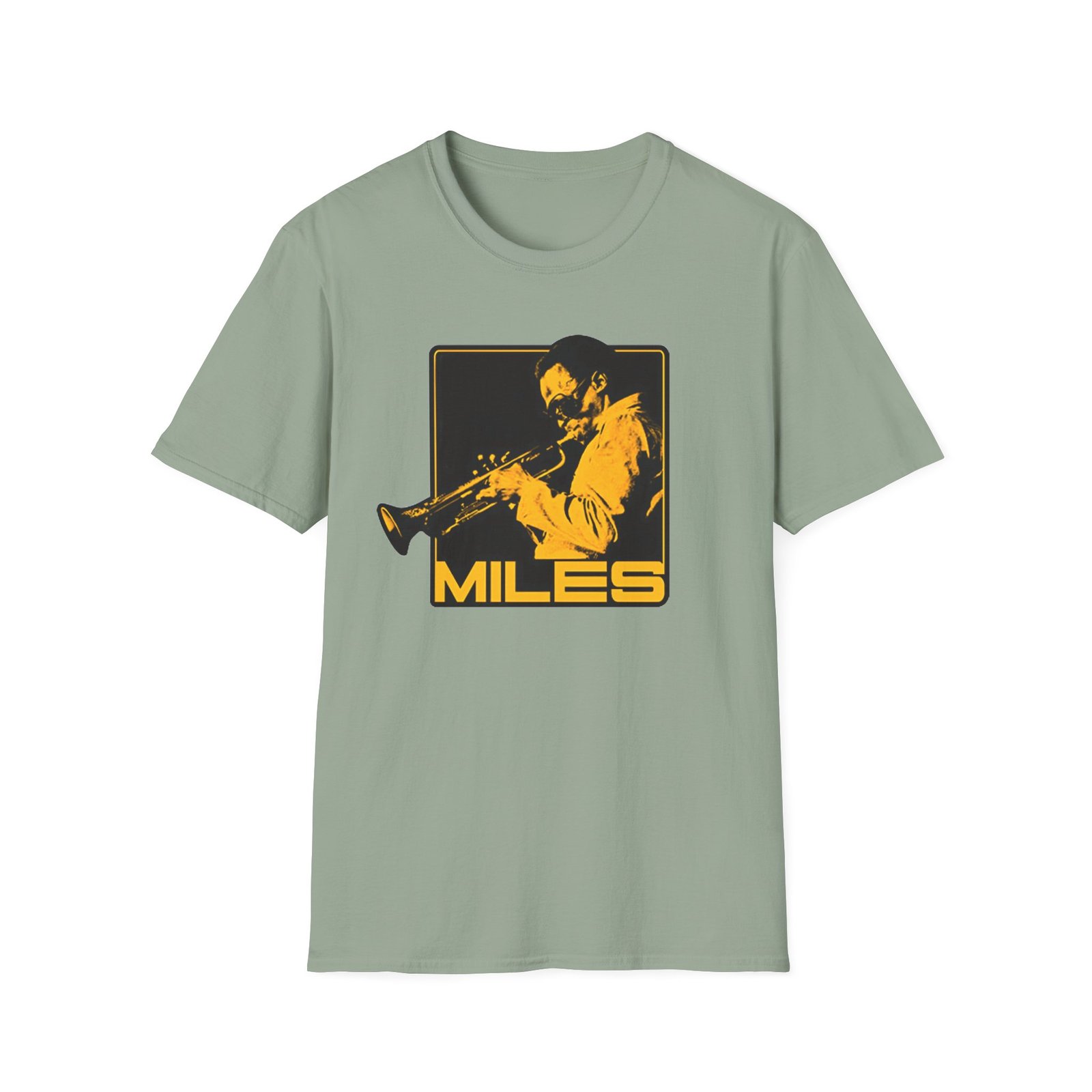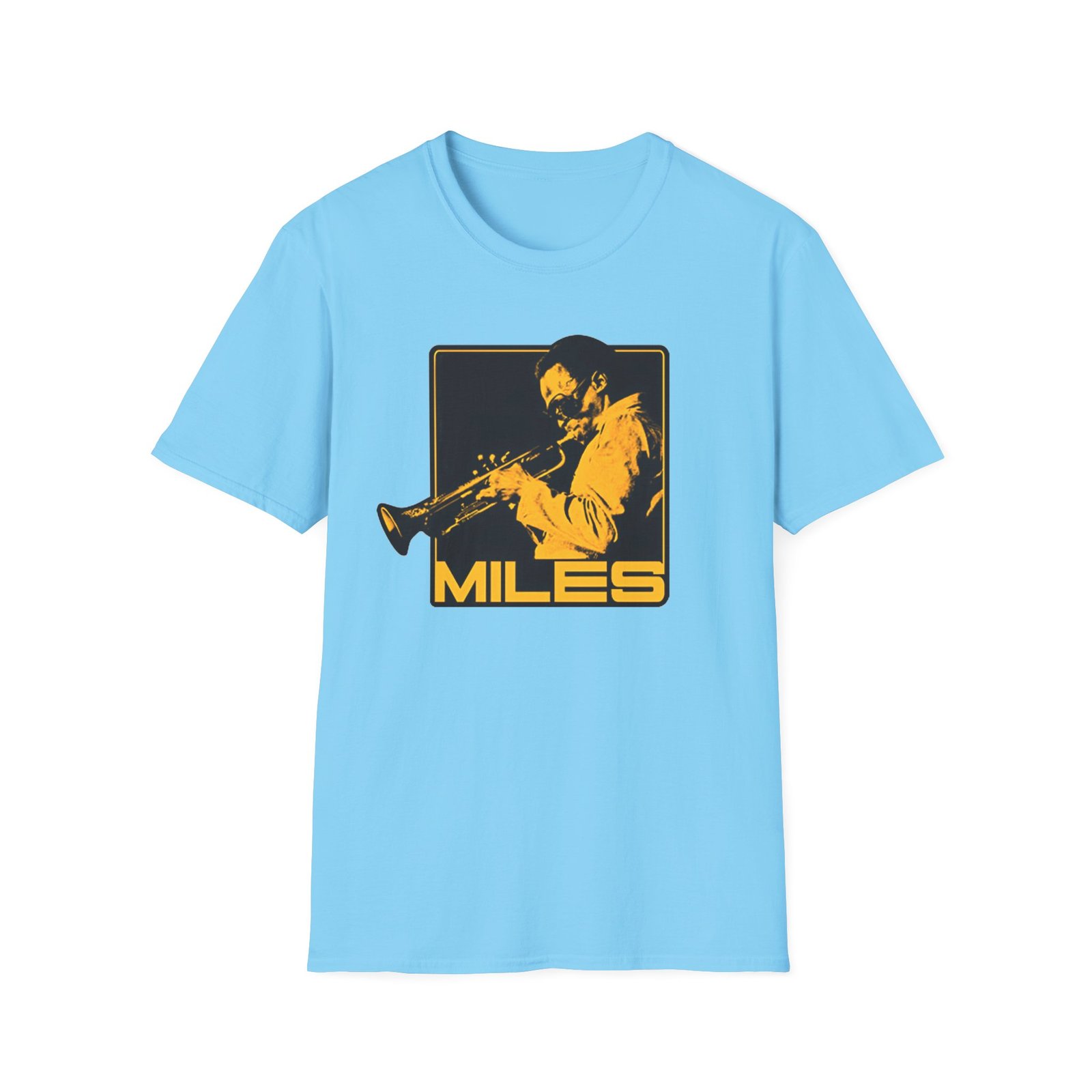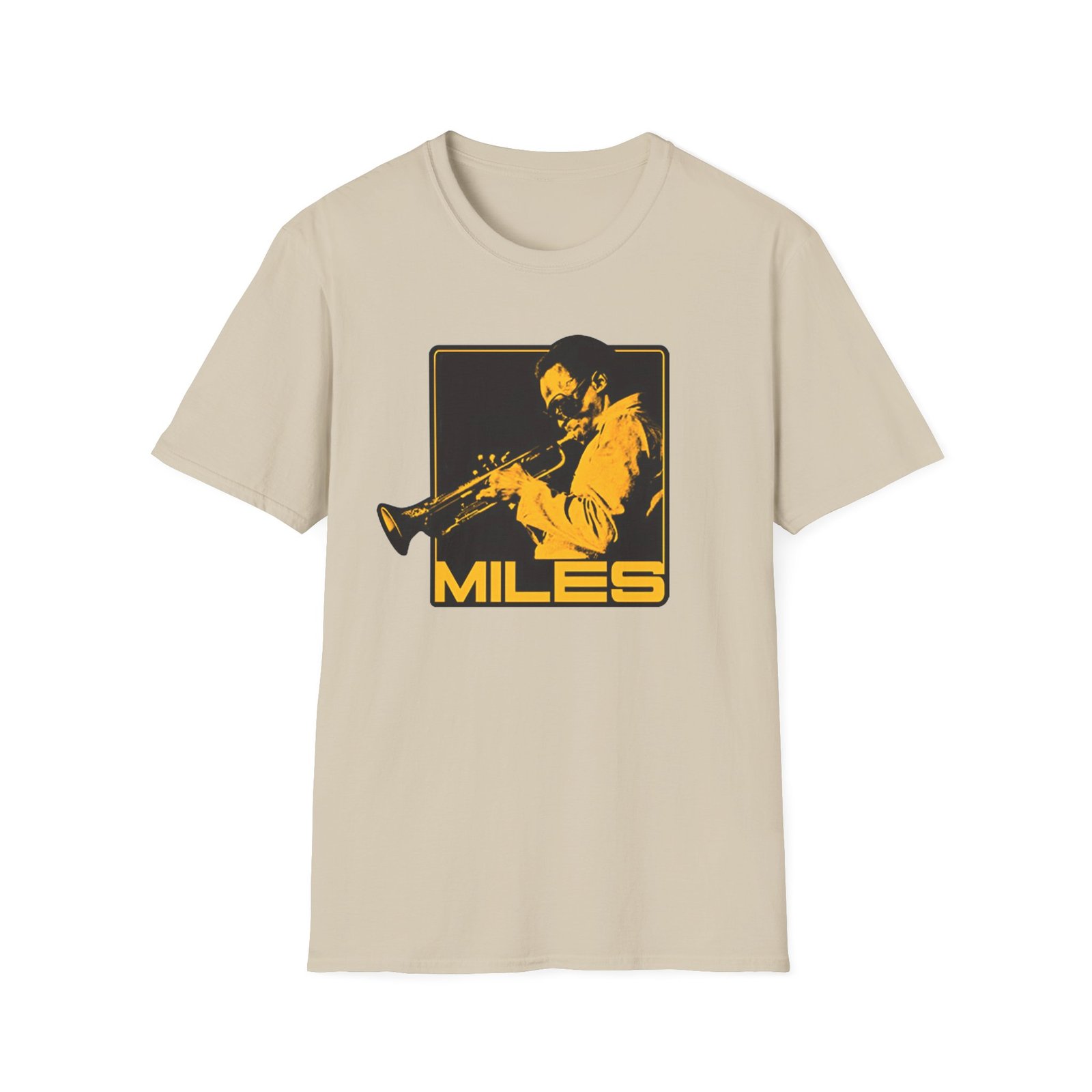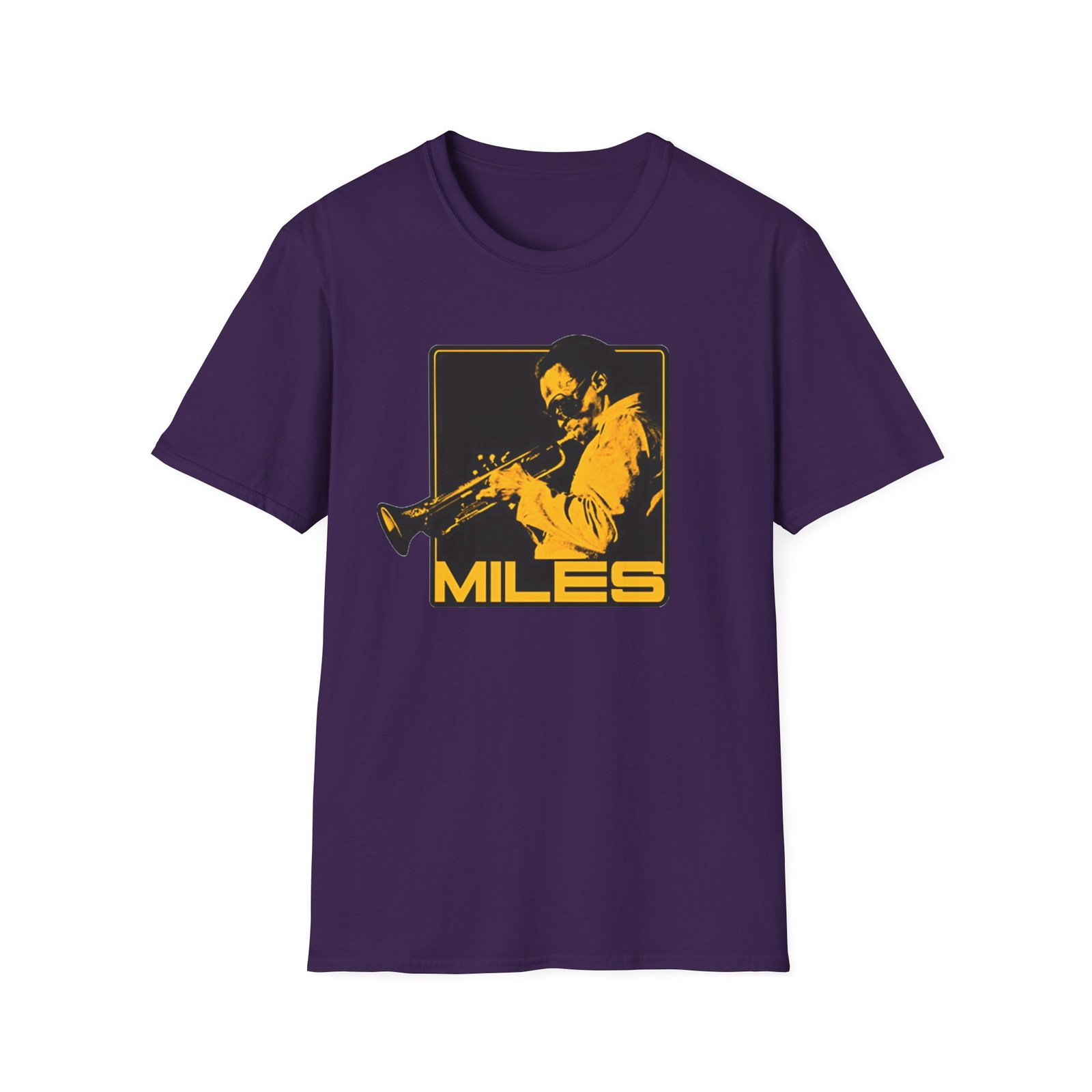 The Miles Davis Shades Of Miles unisex soft-style t-shirt puts a new spin on casual comfort. Made from very soft materials, this tee is 100% cotton for solid colors. Heather colors and sports grey include polyester. The shoulders have twill tape for improved durability. There are no side seams. The collar is made with ribbed knitting to prevent curling damage.