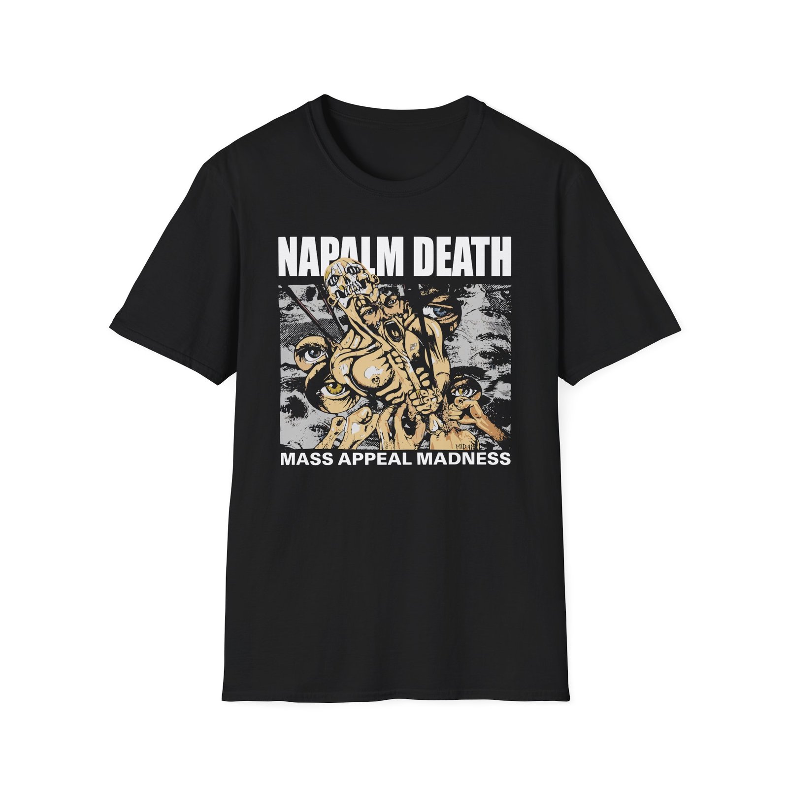 Be the first to review “Napalm Death Mass Appeal Madness Unisex Softstyle T-Shirt”