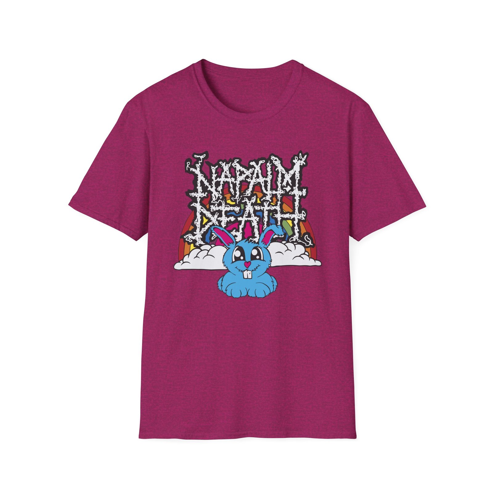 The Napalm Death Rainbow unisex soft-style t-shirt puts a new spin on casual comfort. Made from very soft materials, this tee is 100% cotton for solid colors. Heather colors and sports grey include polyester. The shoulders have twill tape for improved durability. There are no side seams. The collar is made with ribbed knitting to prevent curling damage.