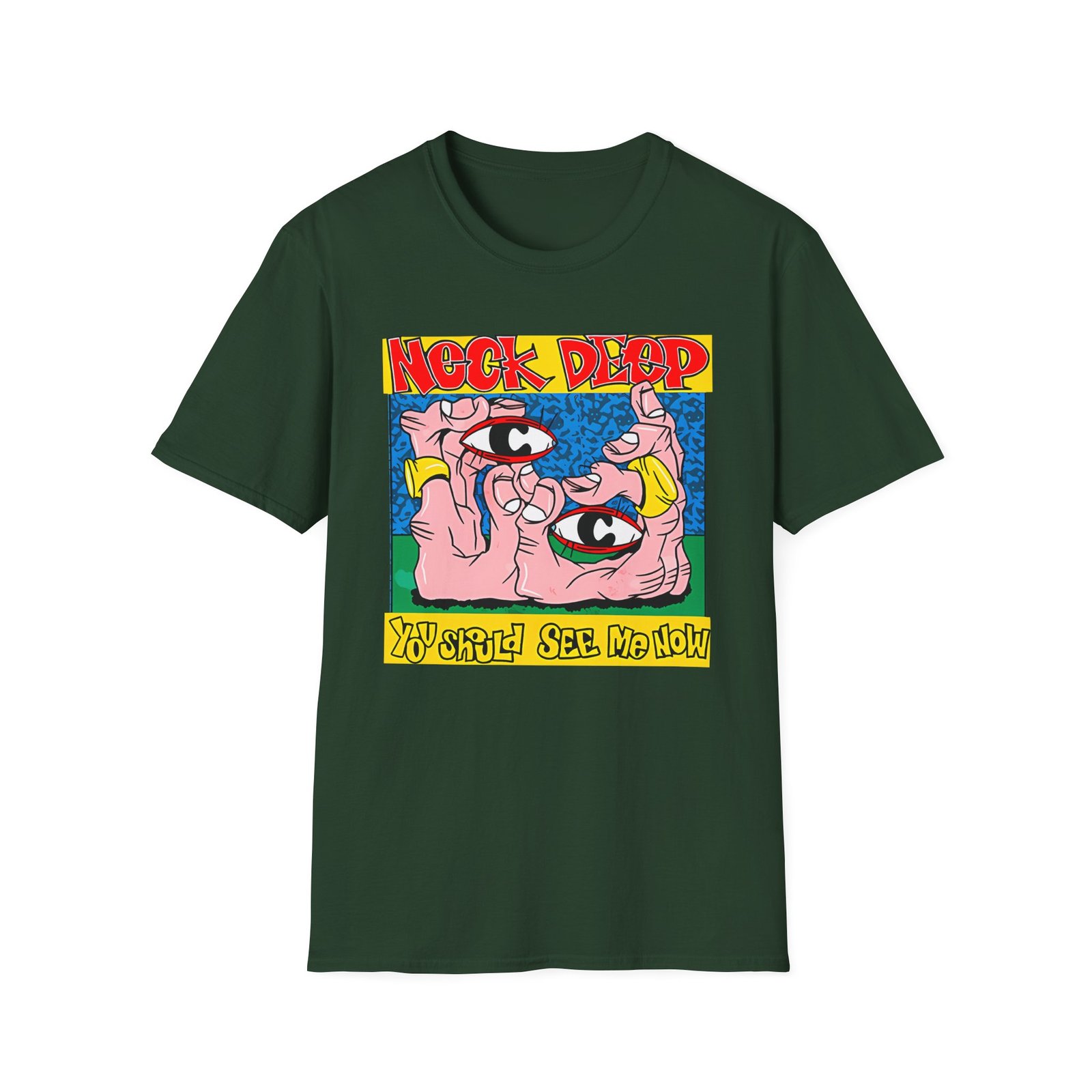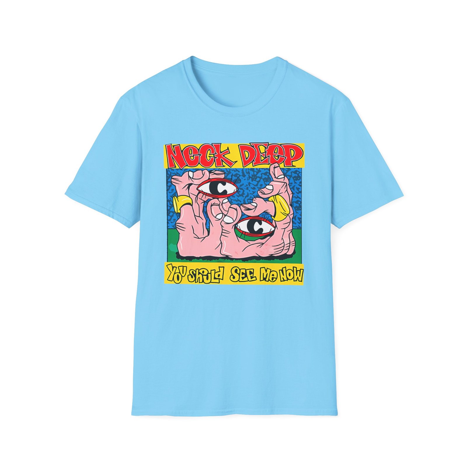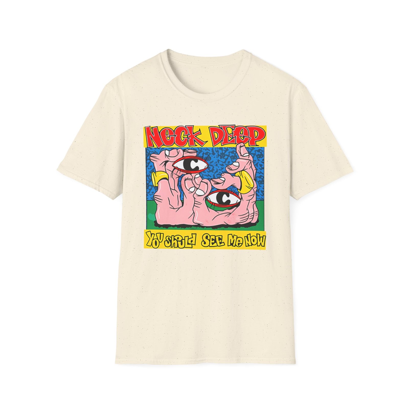The Neck Deep You Should See Me Now Artwork unisex soft-style t-shirt puts a new spin on casual comfort. Made from very soft materials, this tee is 100% cotton for solid colors. Heather colors and sports grey include polyester. The shoulders have twill tape for improved durability. There are no side seams. The collar is made with ribbed knitting to prevent curling damage.