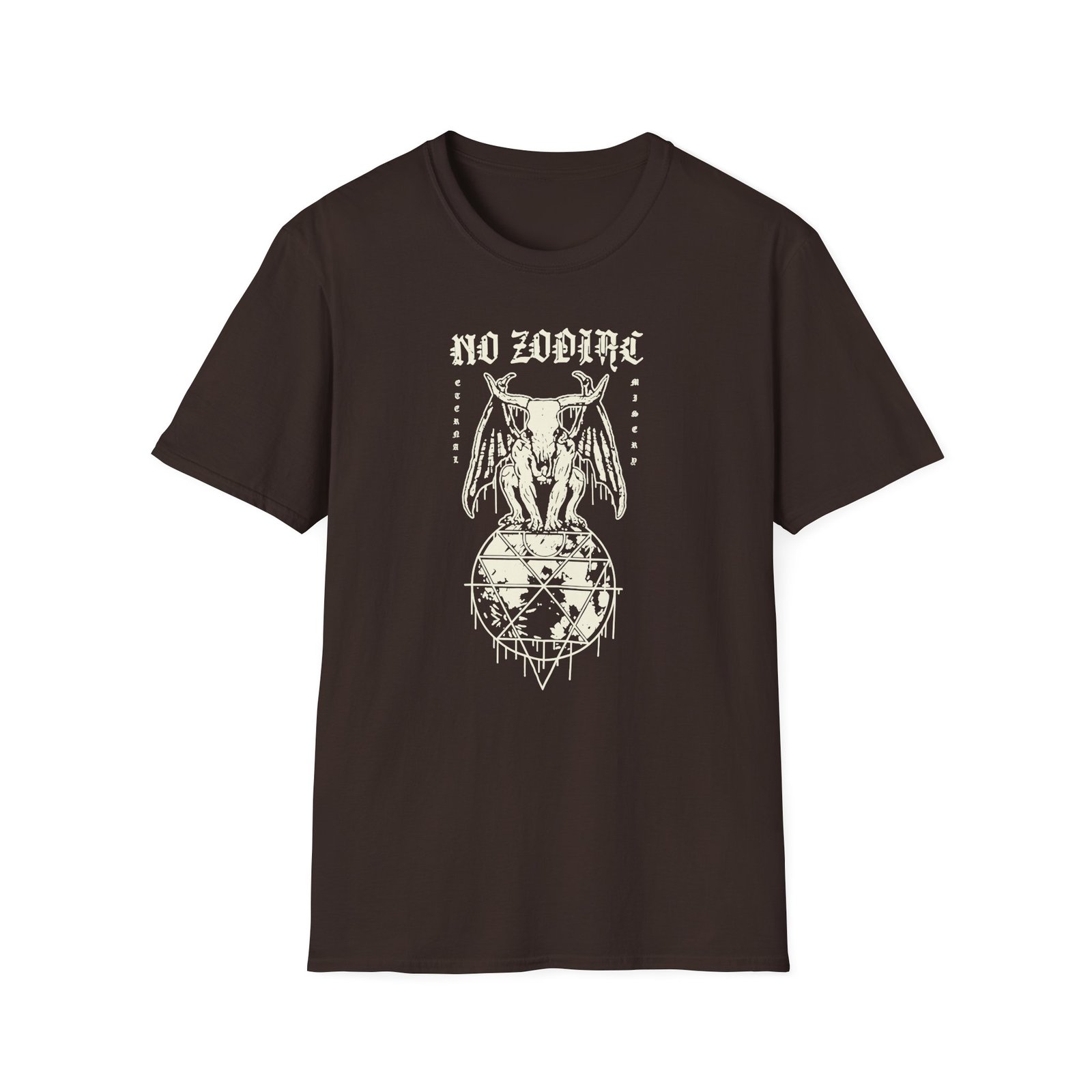 The No Zodiac Eternal Misery unisex soft-style t-shirt puts a new spin on casual comfort. Made from very soft materials, this tee is 100% cotton for solid colors. Heather colors and sports grey include polyester. The shoulders have twill tape for improved durability. There are no side seams. The collar is made with ribbed knitting to prevent curling damage.