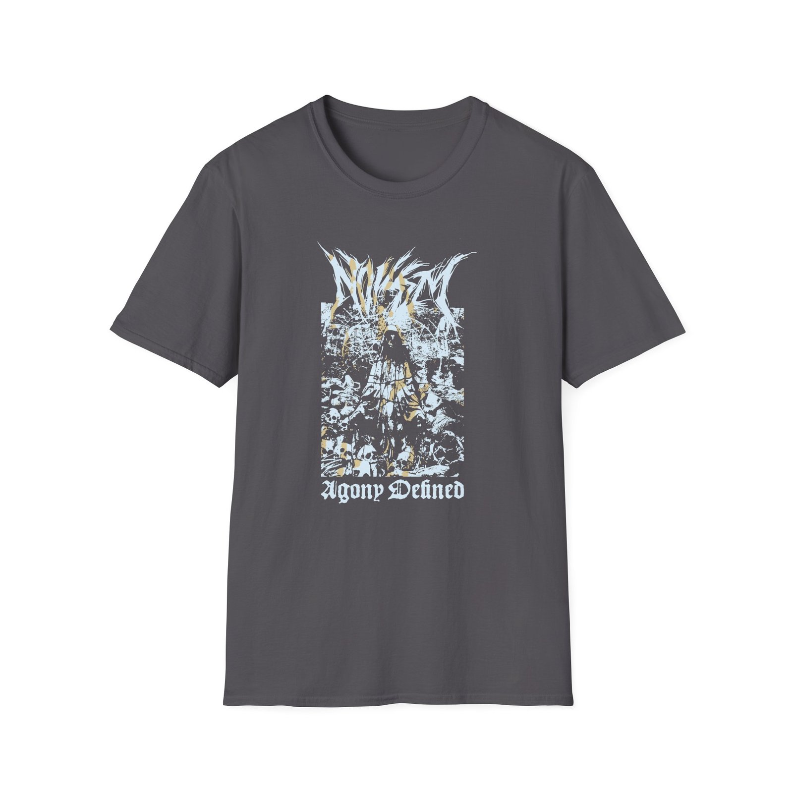 The Noisem Agony Defined unisex soft-style t-shirt puts a new spin on casual comfort. Made from very soft materials, this tee is 100% cotton for solid colors. Heather colors and sports grey include polyester. The shoulders have twill tape for improved durability. There are no side seams. The collar is made with ribbed knitting to prevent curling damage.