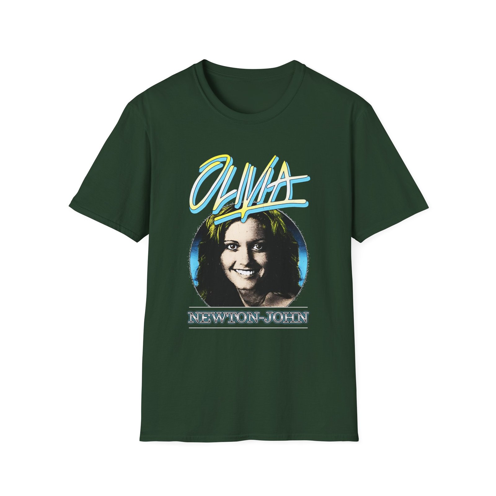 The Olivia Newton John Bold unisex soft-style t-shirt puts a new spin on casual comfort. Made from very soft materials, this tee is 100% cotton for solid colors. Heather colors and sports grey include polyester. The shoulders have twill tape for improved durability. There are no side seams. The collar is made with ribbed knitting to prevent curling damage.