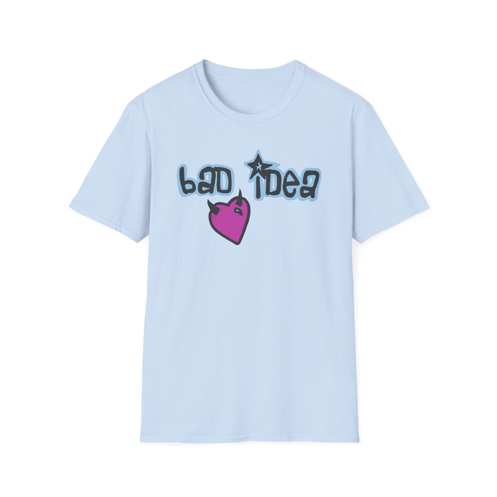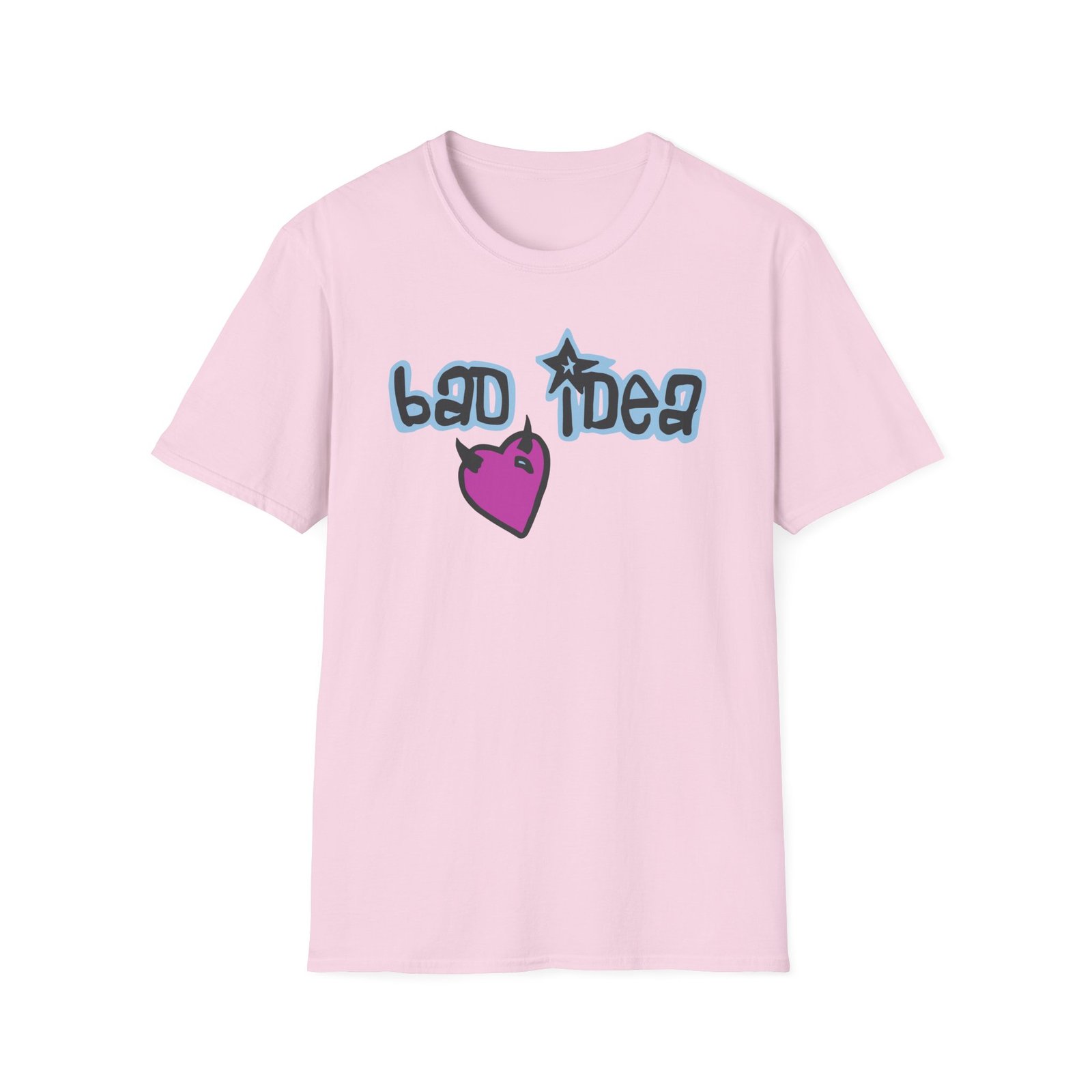 The Olivia Rodrigo Bad Idea Unisex Softstyle T-Shirt puts a new spin on casual comfort. Made from very soft materials, this tee is 100% cotton for solid colors. Heather colors and sports grey include polyester. The shoulders have twill tape for improved durability. There are no side seams. The collar is made with ribbed knitting to prevent curling damage.