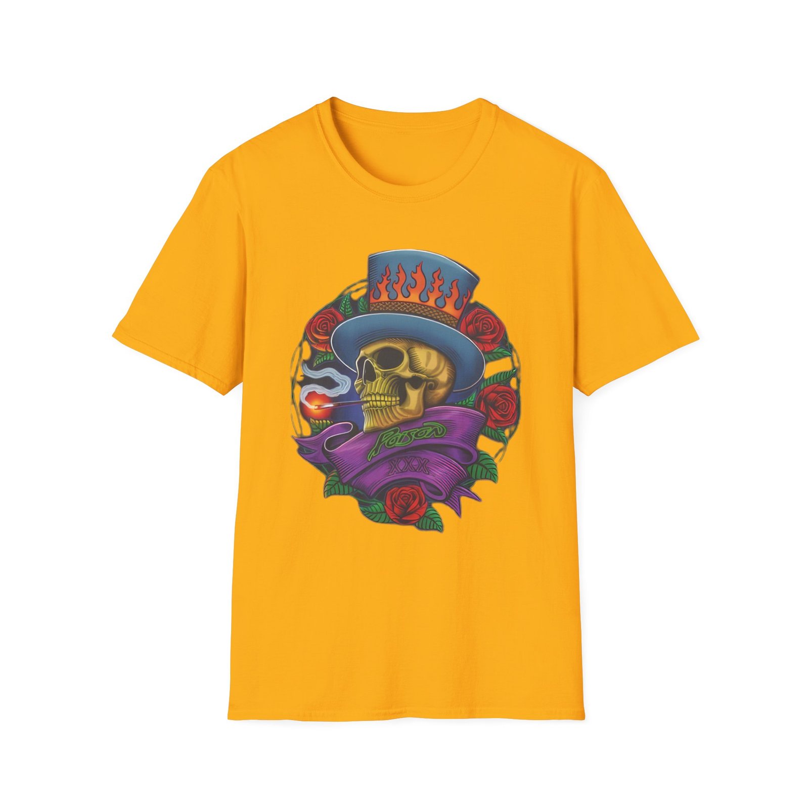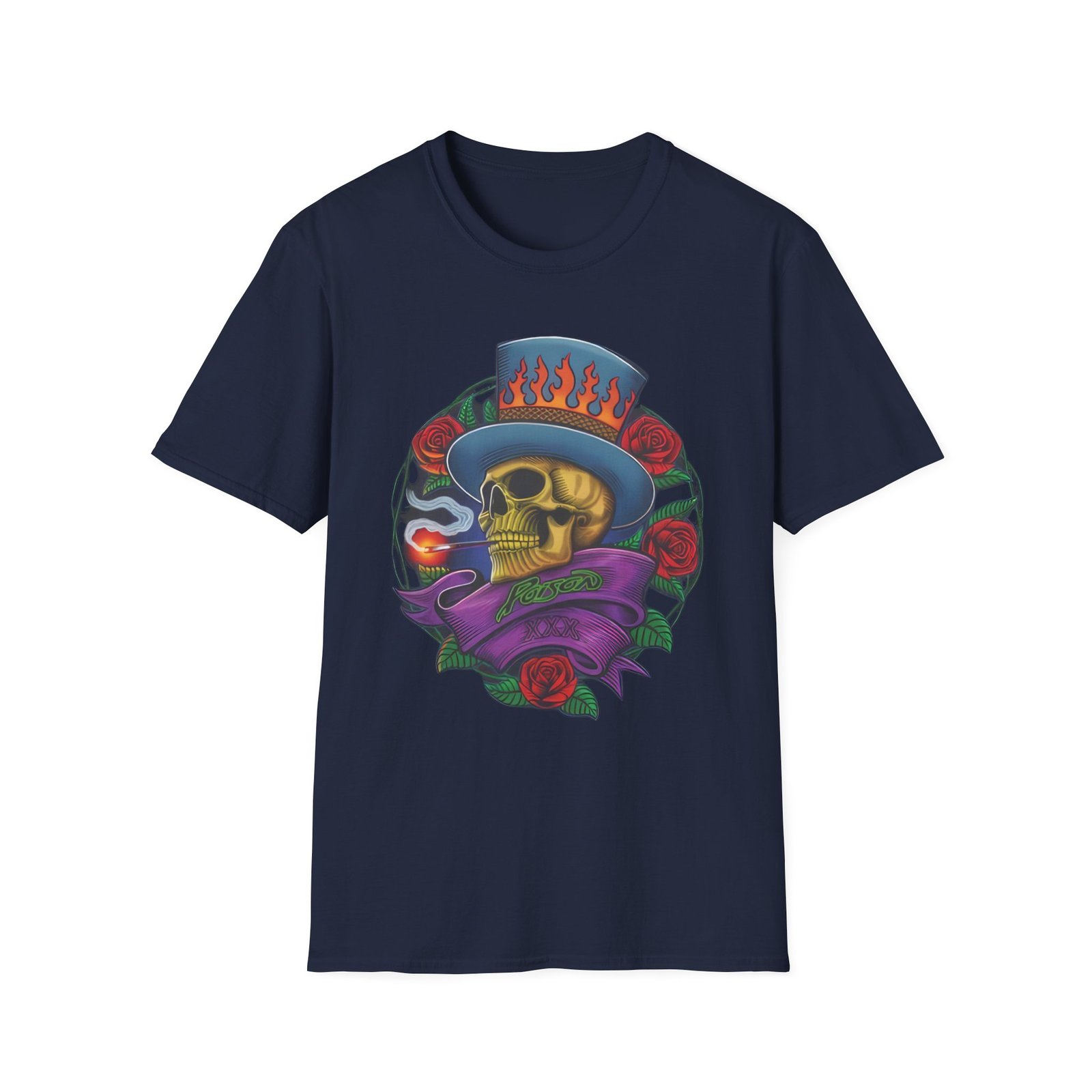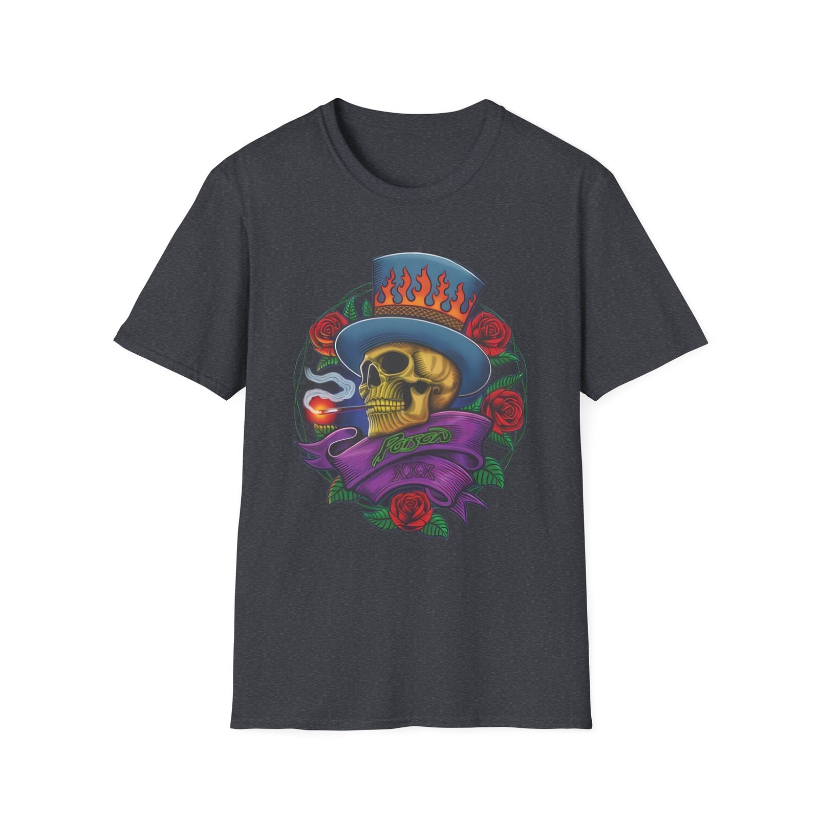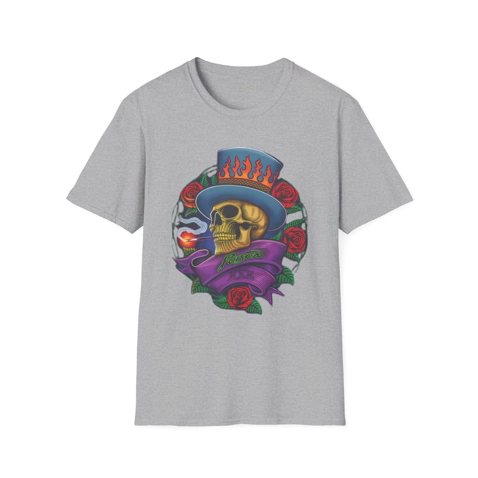The Poison Skull unisex soft-style t-shirt puts a new spin on casual comfort. Made from very soft materials, this tee is 100% cotton for solid colors. Heather colors and sports grey include polyester. The shoulders have twill tape for improved durability. There are no side seams. The collar is made with ribbed knitting to prevent curling damage.