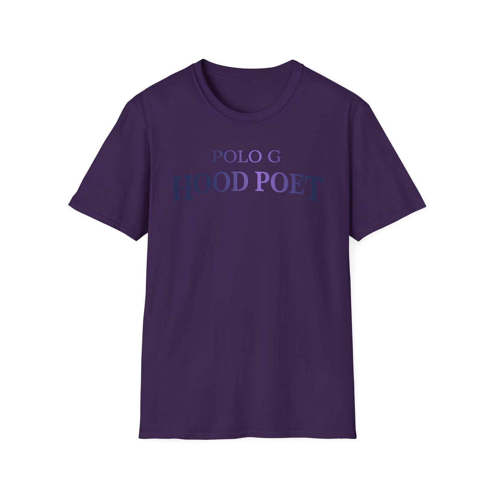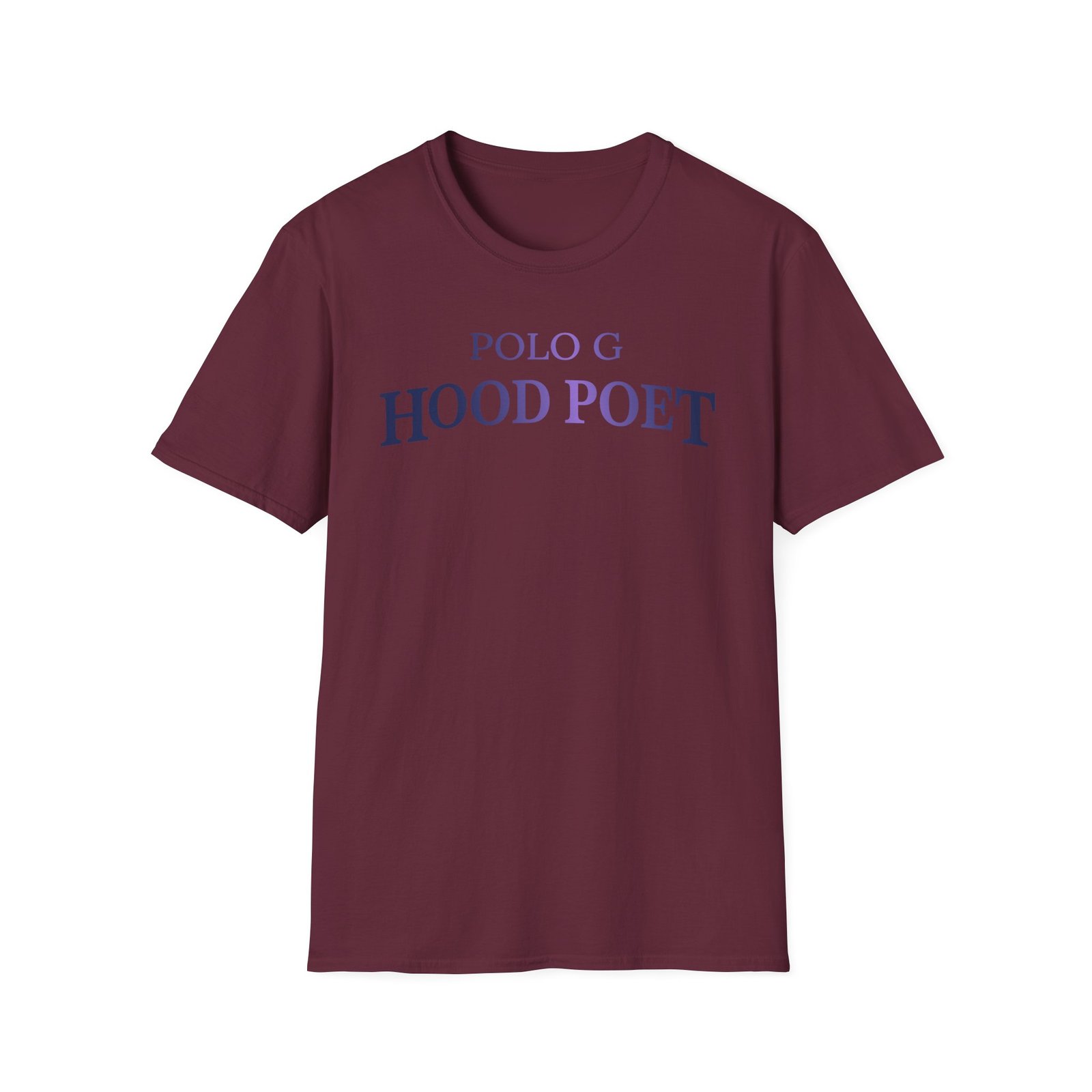 The Polo G Hood Poet unisex soft-style t-shirt puts a new spin on casual comfort. Made from very soft materials, this tee is 100% cotton for solid colors. Heather colors and sports grey include polyester. The shoulders have twill tape for improved durability. There are no side seams. The collar is made with ribbed knitting to prevent curling damage.